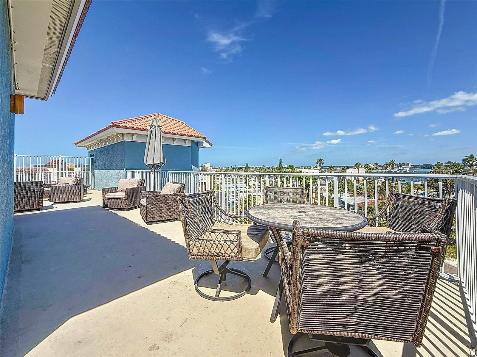 This rental is available monthly for April-July 2026 and September-December 2026. (State and county tax will be added for any rentals shorten than 6 months). Additional dates available upon request. No smoking, no pets. Welcome to your Penthouse Madeira Beach paradise! The showstopper? A massive, PRIVATE rooftop terrace (almost 1,000sf) with panoramic Gulf and Inlet water views. Whether you’re relaxing on the patio furniture, enjoying sunsets over the water, or watching dolphins and manatees play in the nearby channel, this home offers experiences few others can match. Two additional balconies have perfect views for sunrise coffee or sunset cocktails. Perched on the top floor end-unit, this 3 bedroom, 3 full-bath home spans almost 2,000 square feet of bright, breezy living. Offered fully turnkey, it features stylish furnishings, smart TVs in every room, desks for remote work, indoor laundry, and smart thermostats. Split floor plan including King and Queen bedrooms both with ensuite bathrooms and the 3rd full bathroom is handicap accessible. Ceramic tile flooring and laminate throughout entire unit. Other perks include a sparkling heated pool, secure building entrance, elevator access, and two docks where you can park your boat, launch a kayak or soak in the marine life. Easy access to airports, highways and shopping. Ample parking for you and your guests. A café downstairs, the beach across the street, and amazing walkability to restaurants, shopping, entertainment, boat/fishing charters, bike/scooter/golf cart/jetski rentals — it’s Florida living at it’s finest. You don’t want to miss out on this opportunity!!!