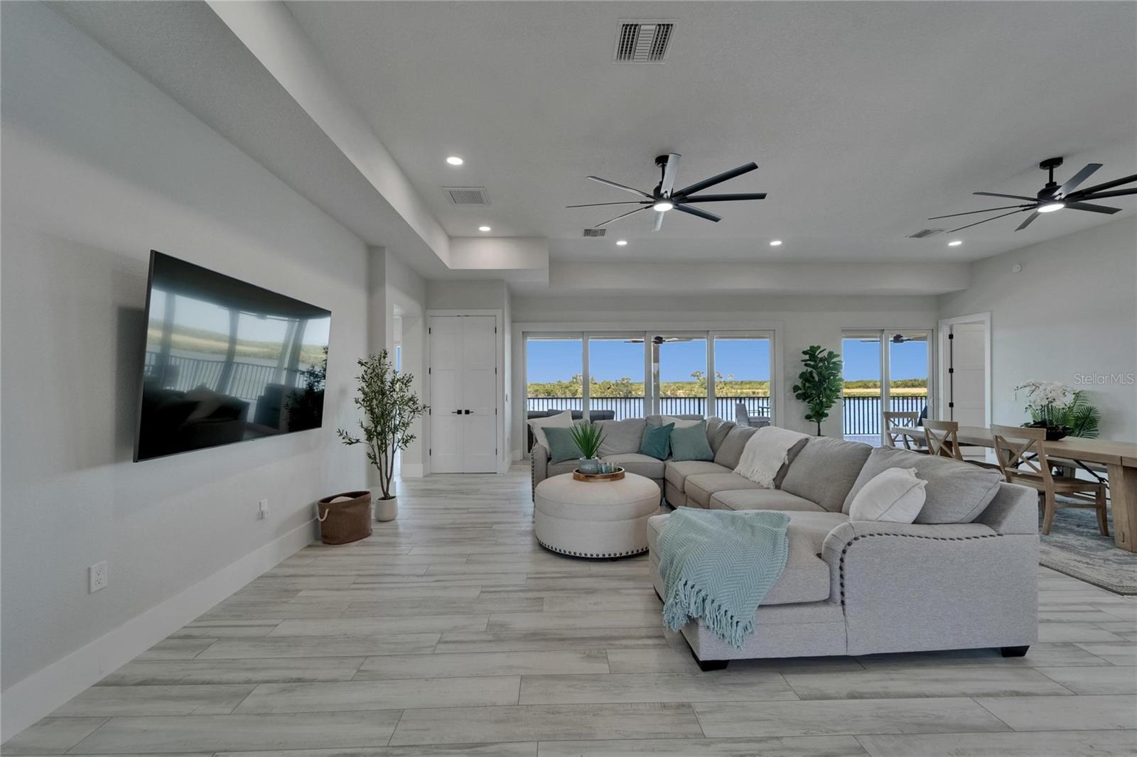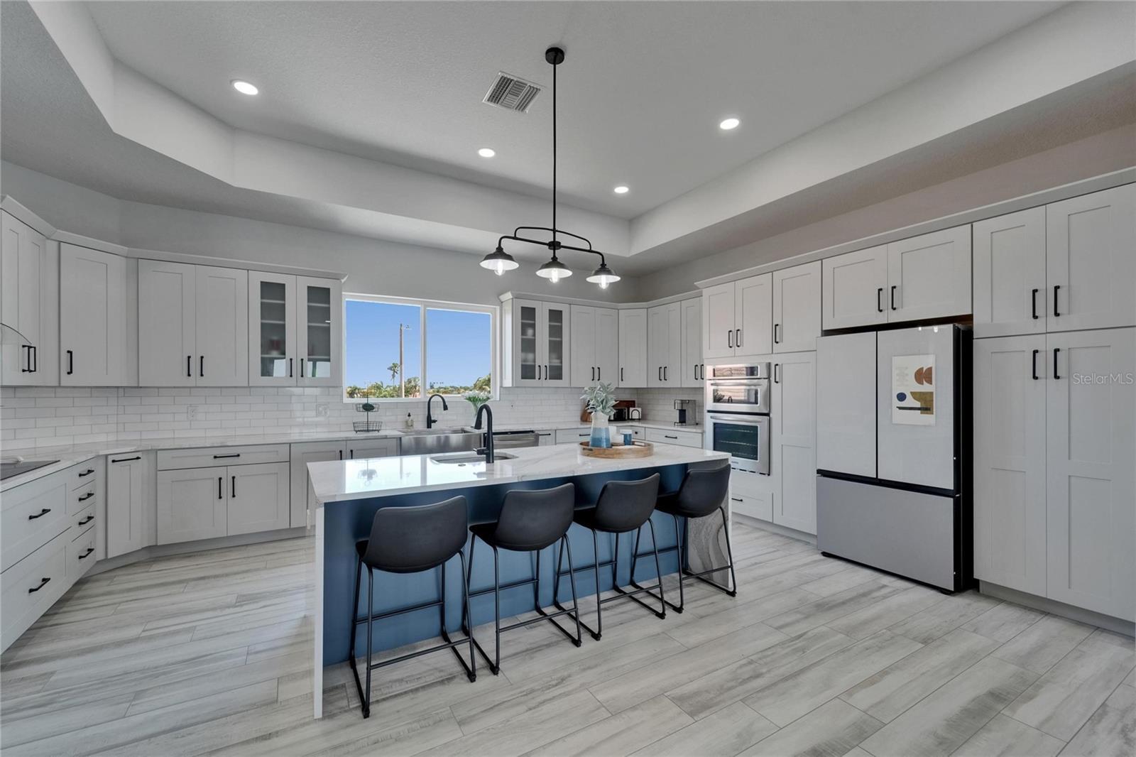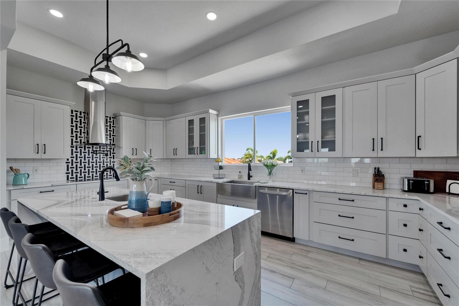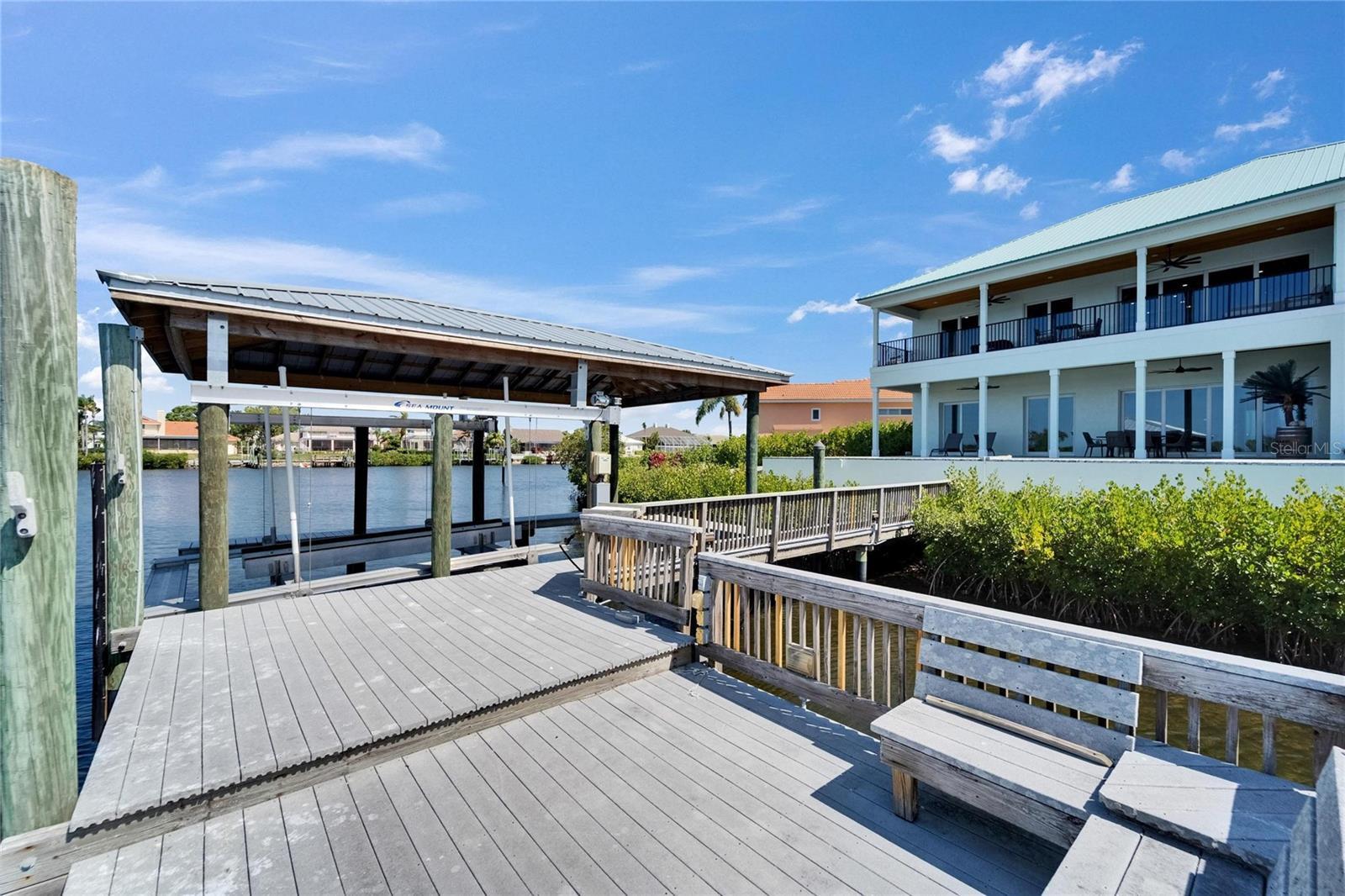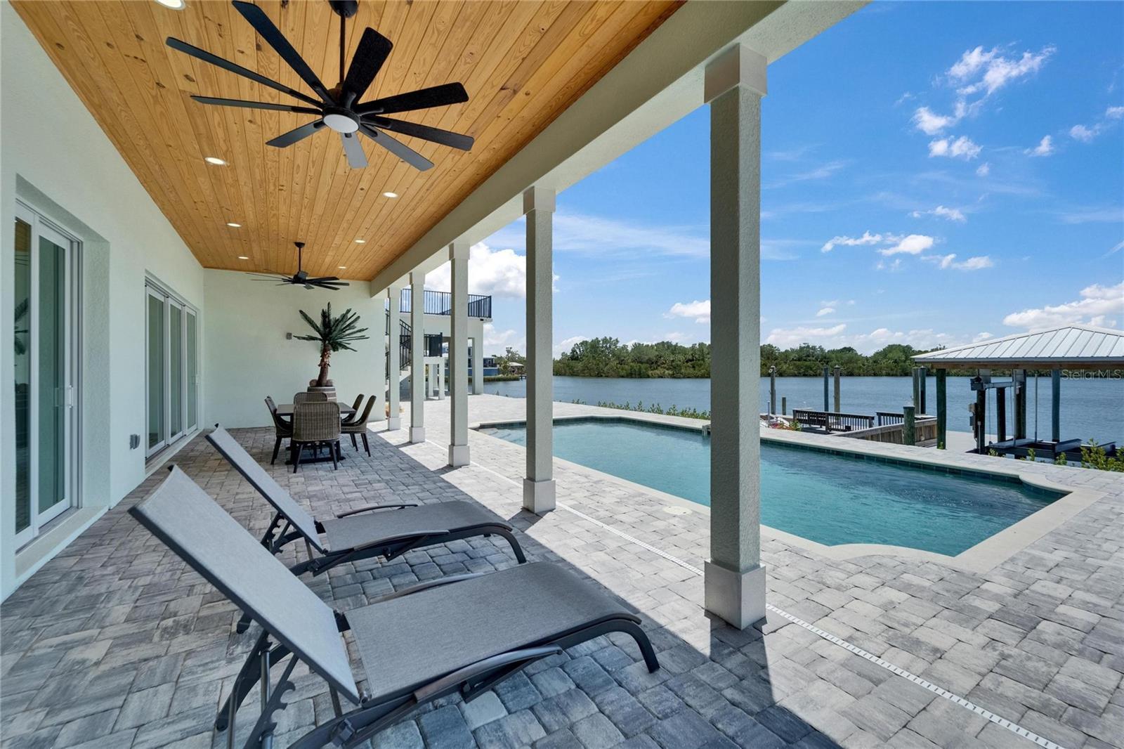 935 Chipaway Drive in Apollo Beach is a true one-of-a-kind waterfront gem. This 2023 custom-built home sits at the very end of a quiet cul-de-sac with 133 feet of shoreline and incredible direct views of Tampa Bay and the St. Pete skyline. It faces west, giving you the best sunset views around. The location is unbeatable and very rare, sitting at the widest part of any canal in Apollo Beach with open water right out your back door. Manatees, dolphins, and stingrays are regular visitors. The home offers 4,704 square feet of living space, plus an additional 934 square feet of heated and cooled garage space, all under one roof. As you step through the double front doors, you are greeted with wide-open water views of the canal and Tampa Bay beyond from almost every room. There is no carpet anywhere — just strong, durable luxury vinyl plank floors. The main living area is bright and open, with a spacious kitchen featuring upgraded appliances, pull-out drawers, lots of storage, and a large waterfall quartz island with seating for four. The layout includes three bedrooms on the main living floor, each with its own private bath, plus a full office that could easily become a fourth bedroom. The primary bedroom has water views, a walk-in closet with built-in storage, dual sinks, and a glass walk-in shower. Downstairs, there is another bedroom with a full bath, perfect for an in-law suite or extra living space. The first level is a blank canvas ready for your creativity — tall ceilings, a private entrance, and about 2,800 additional square feet of potential. Build out another living unit, add a game room, media room, gym, or more bedrooms — the options are endless. This space also offers breathtaking views of the deep, wide canal and the mangroves across the water. The heated and cooled garages are oversized with tall ceilings and epoxy floors, easily fitting up to six vehicles, boats, RVs, or work trucks. Outside, you’ll find two huge covered outdoor areas next to the fully renovated saltwater pool — the perfect spot for a future outdoor kitchen or Florida room. Two oversized balconies, one covered and one open, give you even more space to relax and enjoy the sunsets and water views. The brand-new dock, built in 2023, includes a 16,000-pound lift, a floating dock, and open dock space for a yacht or sailboat. The home is built strong with, a metal roof, hurricane-rated windows and doors, and sits at a high elevation with no storm damage from recent hurricanes. There’s no HOA or CDD, and short-term rentals are allowed, making this a perfect full-time home, second home, or investment opportunity.