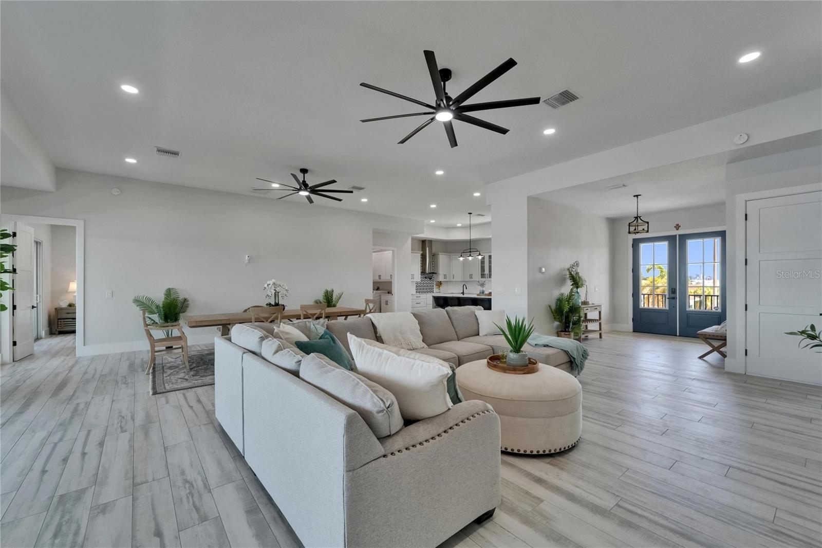 - Ceiling Fans(s), High Ceilings, Kitchen/Family Room Combo, Living Room/Dining Room Combo, Open Floorplan, PrimaryBedroom Upstairs, Solid Wood Cabinets, Split Bedroom, Stone Counters, Walk-In Closet(s)