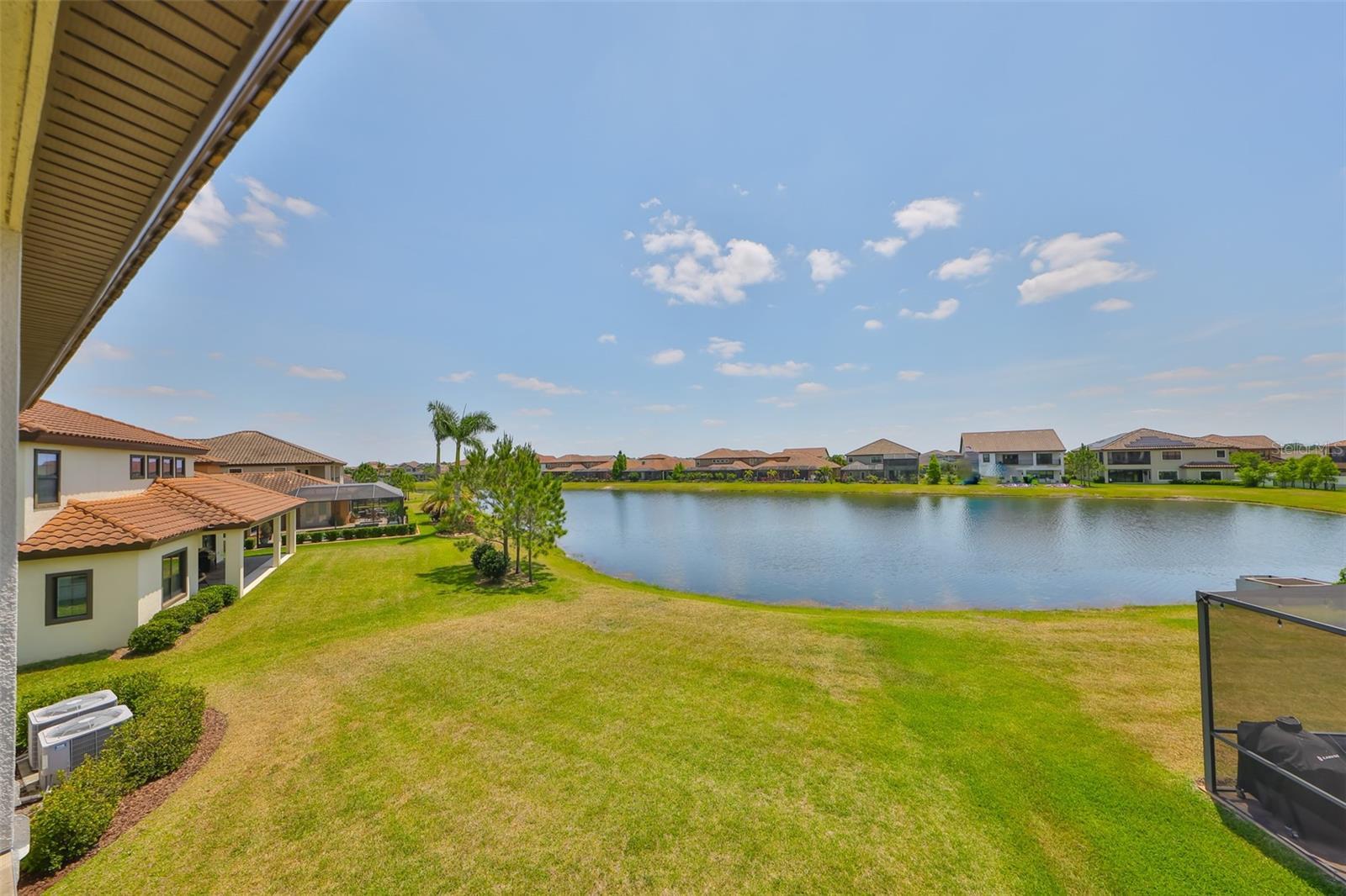 ****HUGE PRICE IMPROVEMENT***** Look no further!! Your executive dream home awaits and nestled on a premium lot in the exquisite gated community of Waterleaf. This 4200 sqft plus home features 5 bedrooms, 4.5 bathrooms, 3 car garage. This Madeira model presented by Homes by West Bay offers luxury and elegance with many ugrades to enhance any lifestyle. As you enter the home and step into the soaring foyer you will notice a private home office, formal dining room, and expansive gathering area where comprised of the great room, gourmet kitchen and casual dining. The kitchen is a chef's dream with ample storage, and a center island perfect for meal preparation and hosting. This amazing entertainment hub provides views of the pond and expansive backyard from many vantage points. Tucked in the back on the main floor is a private bedroom to use as a guest room, in-law suite or home gym; the possibilities are endless. The backyard has a beautiful view of the pond and offers a peaceful ambiance, perfect for relaxing and taking in all that nature has to offer; watching the sunrise and sunsets. The second floor features a large bonus room splitting the primary bedroom from the the additional bedrooms which are generously sized and provide plenty of space for family members or guests. Also found upstairs for convenience, is the oversized laundry room and extended balcony to enjoy the beautiful water views. Upon entering the owners' retreat, you will enjoy a luxurious ensuite, with dual split vanities, separate shower and tub as well as expansive walk in closets. Additionally, take in the great views from your private balcony overlooking the pond. This home has it all; luxury, energy efficiency, style and space. The homeowner association fee covers Spectrum UltraFi WiFi (500 mb) as well as extended basic cable, including Showtime. This residence is conveniently located only 30 minutes from Downtown Tampa, MacDill, Sarasota, award winning beaches, top rated schools, shopping, dining, medical facilities, and major highways. The Waterleaf community offers a resort-style pool, a clubhouse, bike and walking trails, dog park and a sports court, enhancing the overall living experience. Don't delay on scheduling your private tour today and say yes to the address!
