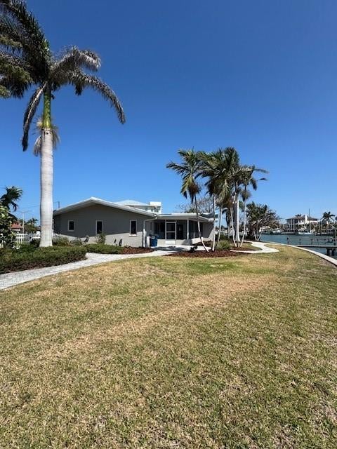 This beautiful Treasure Island home is situated on a stunning point property with 166 feet of wide open water views! Beyond its attractive covered entry, step inside this lovely residence and feel the rich welcoming spaces of a fine split bedroom floor plan and its design emphasis on waterfront living. The elegant living area transitions to an open dining space – both with views of the waterfront. The fine, updated contemporary kitchen offers gorgeous water views, exceptional counter surfaces, shaker style cabinetry, striking tile backsplash, stainless steel appliances, unique open built in wrap-around cabinetry to the living area, and a passthrough to the waterfront lanai. The separate family room opens to the waterfront lanai and has a built-in entertainment center. The Living room/dining, family room and kitchen all have sliding doors/windows that pocket into the walls, enabling a fantastic indoor-outdoor living environment when desired. Overlooking the waterfront, the owner’s suite contains a sizable walk in closet and full private bath. The second bedroom is sizable, has private views of the waterway and a spacious walk-in closet. The third bedroom has two large walk-in closets. Step out to the 360sqft screen enclosed lanai and take in serene, unforgettable open water views that stretch for a mile across Boca Ciega Bay and the Intracoastal Waterway. Outside the lanai, you’ll discover wide, expansive and richly manicured grounds with towering Royal Palms, lush subtropical vegetation, meandering brick paver pathways and a fabulous private Zen/meditation garden overlooking the water. Updated dock has a seating bench, fish cleaning station, step down platform for kayaks/paddleboards and a 10,000 lb boat lift for fast, easy access to the Gulf of Mexico. You’ll appreciate the hurricane impact windows/sliders and the peace of mind that they provide. Located in one of Tampa Bay’s best boating communities close to shopping, dining, entertainment and the world class beaches to Treasure Island. This is a rare “point property” opportunity with huge panoramic views that only 166ft of seawall can deliver.