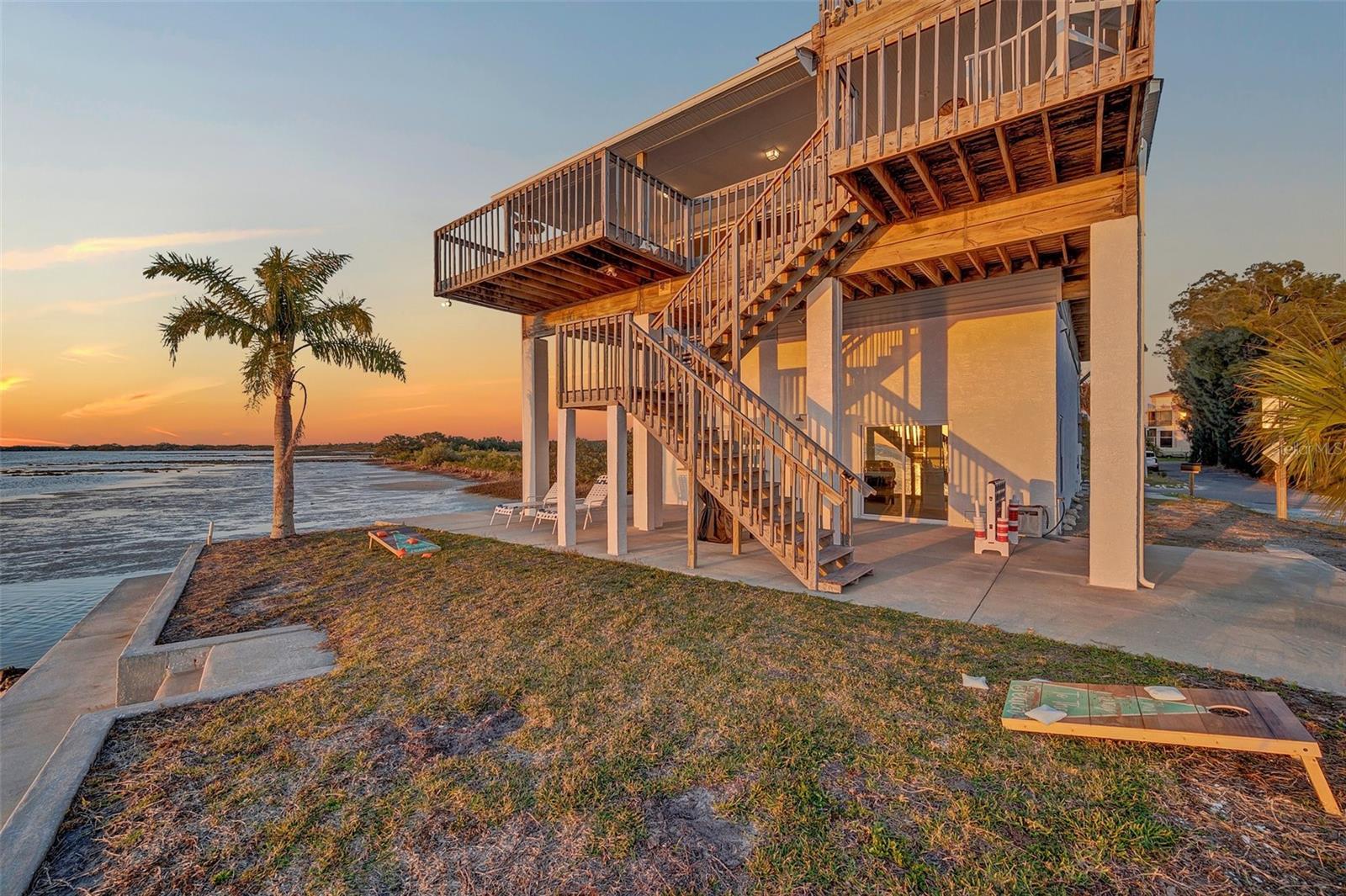 Some places bring you peace the moment you arrive... this one surrounds you with it. Welcome to 2417 Sunset Vista, a hidden waterfront retreat where every day feels like you're living on vacation. Lovingly known as the "Optimystical Vista" here you will find yourself tucked away on a quiet peninsula, immersed in 270-degree sweeping ocean views, with direct access to Florida's coastal lifestyle. Ocean breezes flow across the deck; the fresh salt air like medicine for the soul. Playful dolphins, grazing manatees and abundant wildlife put on shows daily. Once you're here, you'll never want to leave. This property is being offered fully furnished and turn key - the perfect short-term rental. Tastefully decorated, packed with thoughtful amenities, there’s truly nothing to do except step into this income-producing potential. Current nightly rent averages $475/night on VRBO with many repeat renters and 100% 5-Star Reviews. Every room is light and airy, each with it's own unique water view. The owner’s suite is a retreat of privacy, functionality and comfort. Perched at the top of the tri-level home, the penthouse bedroom/bathroom suite offers 360° panoramic views. Step out the sliding doors to your private balcony, perfect for sipping your morning coffee or winding down with a glass of evening wine. Mid-level offers two additional bedrooms and bathrooms, a fully stocked kitchen and comfortable living space. A solid wooden deck wraps around the house. The interior elevator is quiet and convenient, offering ease of access across all three stories. The ground level offers versatile entertainment space, ideal for unwinding after a long day’s work. The bar area features a custom pass-through with a lift window that opens and closes at the touch of a button. Additional space behind for parking cars, storing kayaks and fishing poles, and overhead attic space means you’ll never have trouble finding a place to store your toys! As the day transitions to night, and the sun sets on the horizon, the sky erupts into a vibrant display of colors; a breathtaking display of hues. With not a single other building in sight, surrounded by nothing but nature itself, as if you are on your own private island, it feels as a gift the world is giving to you alone. Historic Aripeka, first settled in 1859, is known for it’s incredible views, fabulous fishing and friendly neighbors. Those who live here have often been here for decades, with properties being handed down from generation to generation. Electronic storm shutters adorn every window and the roof was reinforced in 2017, offering extensive security against weather concerns. Even recent severe storms only had nominal impact on the property, not affecting the living areas whatsoever. A new HVAC system was installed in 2017 and is maintained regularly. A new water heater added in 2023 and new electrical panel in 2024. Opportunity abounds - whether you are seeking to add to your investment portfolio, looking for a peaceful place to retire or simply want to live where ocean meets sky - this property is for you!