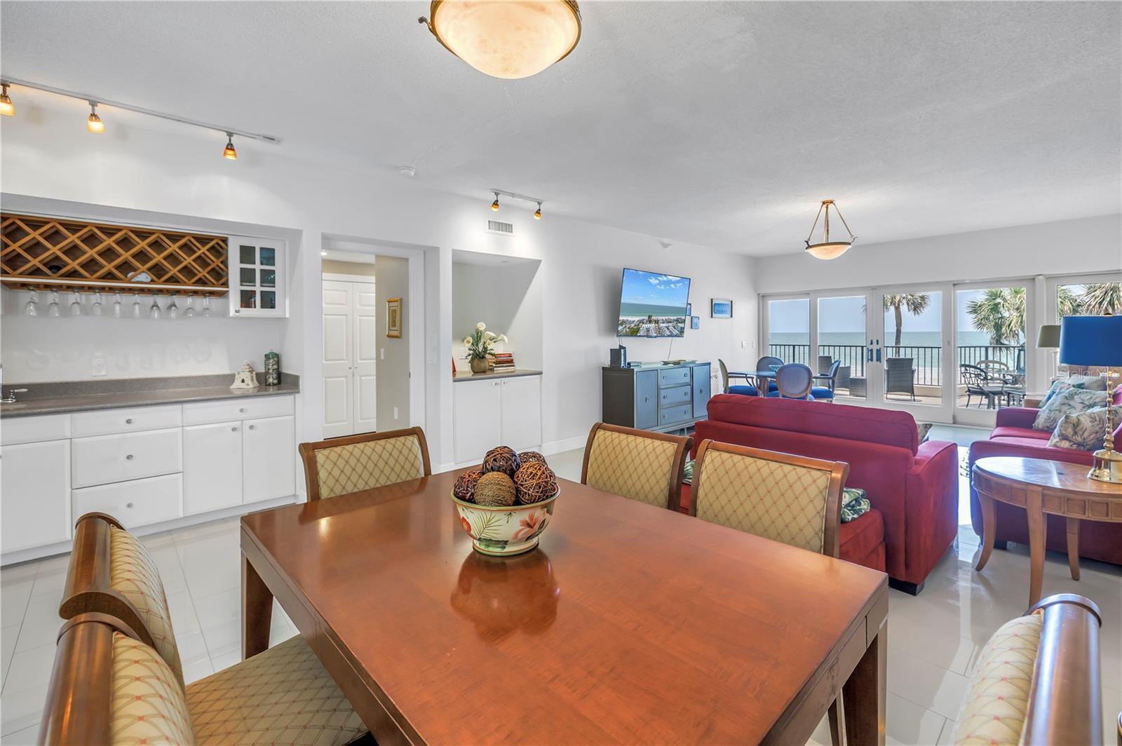 A rare opportunity to own in an intimate, 8-residence Gulf-front building in Indian Shores. This spacious 3-bedroom, 2-bath, fully furnished corner unit offers 1,900 square feet of interior living space, plus two private balconies—one with sweeping Gulf views and the other overlooking the city for a vibrant contrast of day and night. From your semi-private elevator access - Inside, the layout connects your kitchen, dining, and living areas, with gorgeous Gulf and pool view. The kitchen is generously sized with stainless steel appliances, a breakfast bar, and plenty of prep space. Ceramic tile runs throughout the home, adding a clean, modern feel. Step outside onto your expansive 438-square-foot Gulf-front balcony—an ideal spot for morning coffee, sunset dinners, or simply unwinding as the waves roll in. From here, you'll enjoy panoramic views of the water, the beachfront pool, and endless skies, all just feet from the sand. The primary suite offers balcony access, water views, a large walk-in closet, and an updated en suite bath featuring a soaking tub with a built-in TV, a walk-in shower, floating vanity with LED lighting, and a commercial-grade toilet with bidet. Two additional bedrooms are tucked away toward the back of the unit for privacy—one currently serving as a home office—both with access to the second balcony. Additional perks include a laundry/storage room, two under-building parking spaces, and a well-maintained beachfront pool and spa area with grilling and outdoor dining space just steps from the sand. And beyond the beach, the location offers the best of Indian Shores living: walkable to local favorites like Salt Rock Grill and Indian Shores Coffee, with nearby access to mini golf, kayak and paddleboard rentals, parks, and nature preserves. Just a short drive to grocery stores, the vibrant nightlife of Clearwater Beach, John's Pass Village, and downtown St. Pete—giving you a full range of dining, entertainment, and shopping options all within reach.