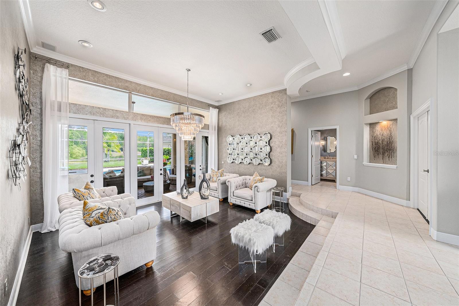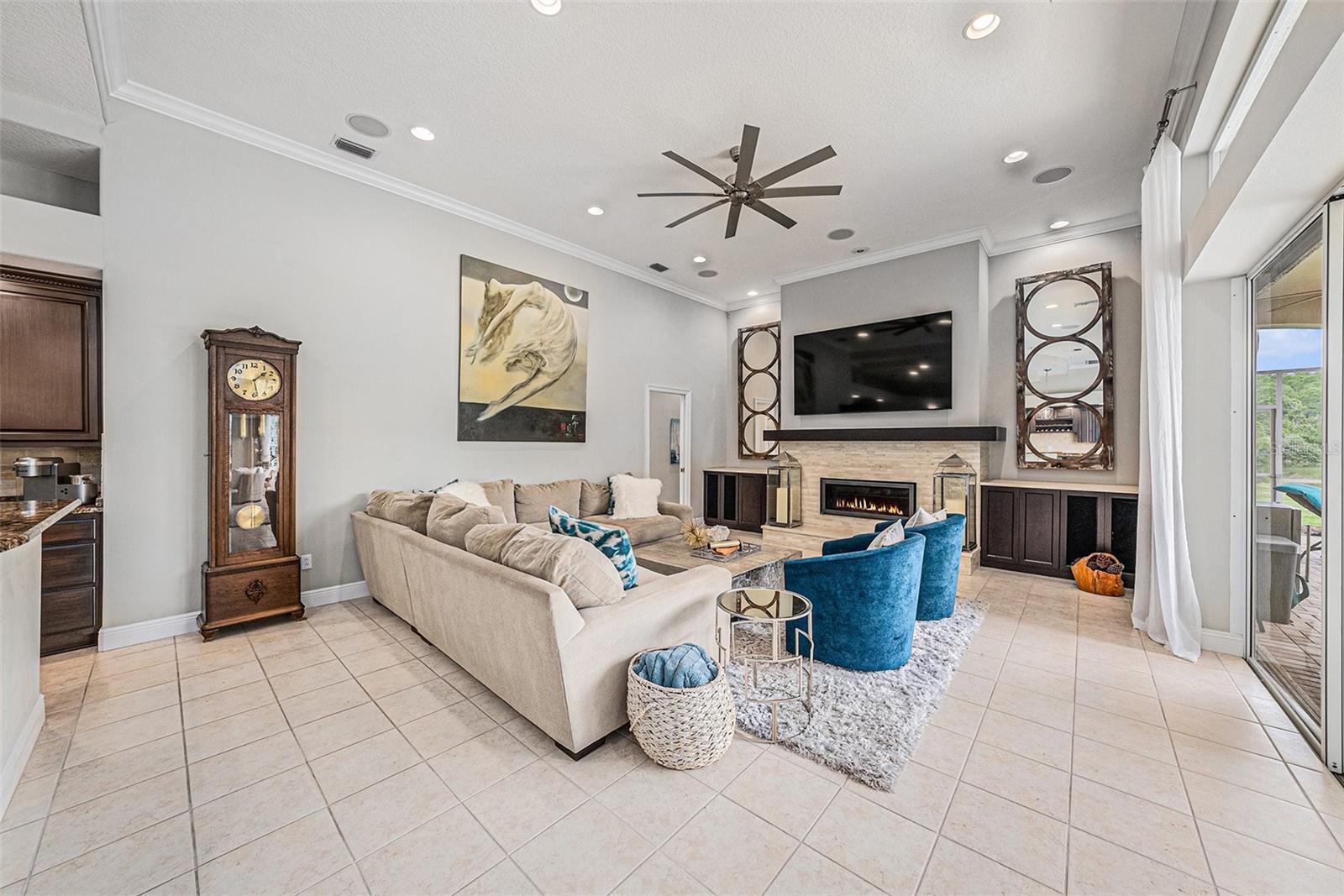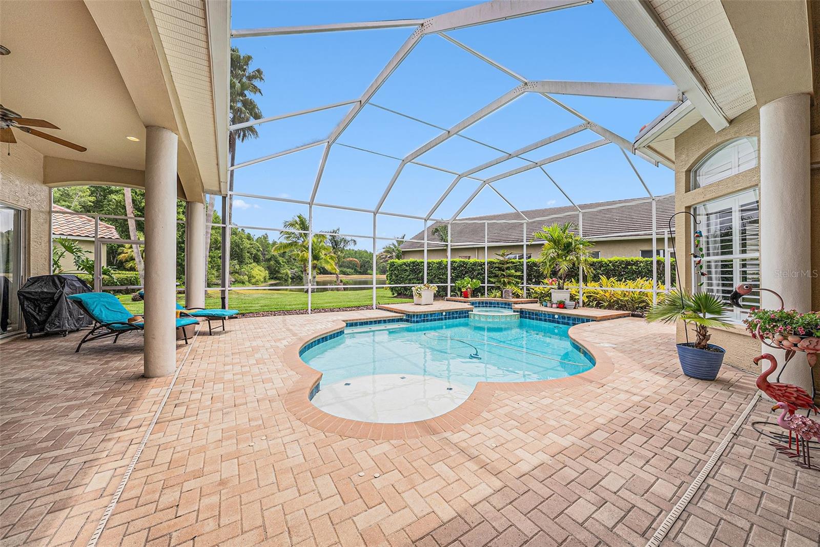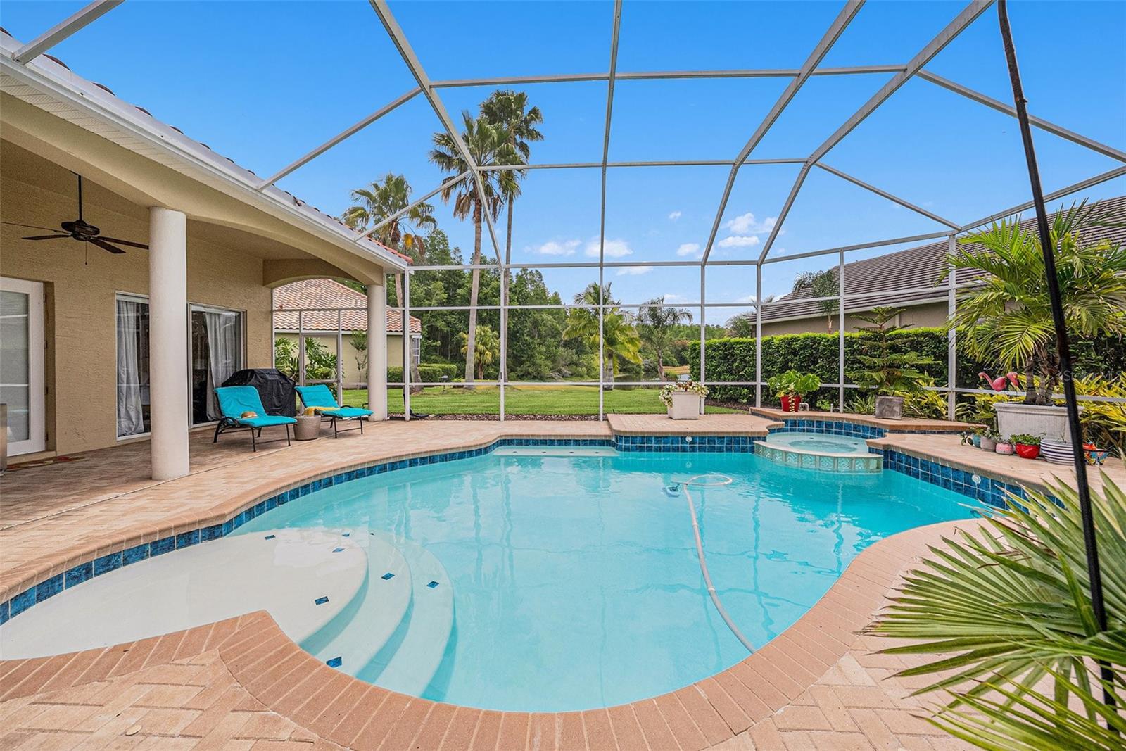 Prime Cheval East Location! This home is enhanced by a host of premium updates for peace of mind and modern convenience, including: • Brand new tile roof (2025) • New HVAC system (2023) • New washer & dryer GE (2025) • New stove/oven (2024) • New Dishwasher Bosh (2023) • New irrigation heads (2024) • Updated hardware, paint, and French doors (2022) • New French Door refrigerator Sub-Zero (2023) Welcome to this exquisitely appointed residence nestled within the prestigious, guard-gated community of Cheval Golf and Country Club, located in the highly sought-after A-rated Steinbrenner School District. This home offers the perfect blend of elegance, functionality, and serene outdoor living. Featuring 4 bedrooms, 3.5 baths, an office, and a 3-car oversized garage, this meticulously maintained property showcases timeless style and thoughtful upgrades throughout. Step through custom French glass doors into a light-filled interior with soaring ceilings, an open-concept layout, and rich architectural detailing, including wide baseboards, wood flooring in all bedrooms, and tile in the main living spaces—with no carpet in sight. The remodeled chef’s kitchen offers an impressive array of high-end finishes, including granite countertops, stainless steel appliances, and a large breakfast bar that flows effortlessly into the spacious family room. Enjoy the ambiance of a propane gas fireplace and built-in speakers, creating the perfect setting for relaxed living or elegant entertaining. Glass sliders extend the living space to a stunning brick-pavered lanai, where a resurfaced pool (2023) takes center stage alongside tranquil water views. The primary suite has been tastefully updated, featuring an elegant accent wall, two custom California Closets, and private access to the lanai. A thoughtfully updated powder room, a secondary ensuite bedroom with a fully remodeled bath, and a custom-designed office with built-ins offer versatile and refined living options. The fully fenced-in side yard serves as an ideal dog run or private garden space. This is a rare opportunity to own a truly move-in-ready home in one of Tampa Bay’s most desirable communities. Schedule your private showing today and experience the lifestyle that only Cheval can offer.