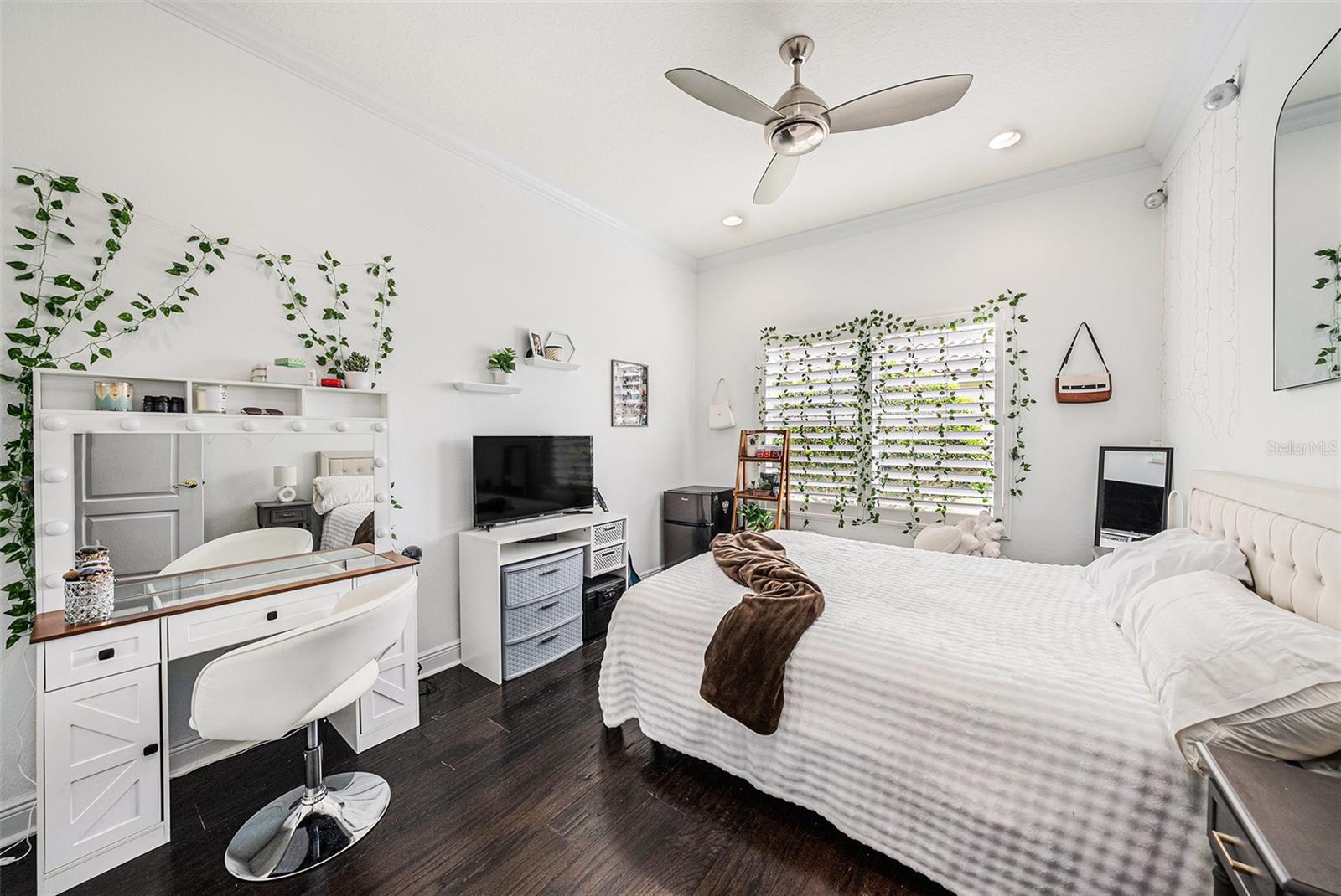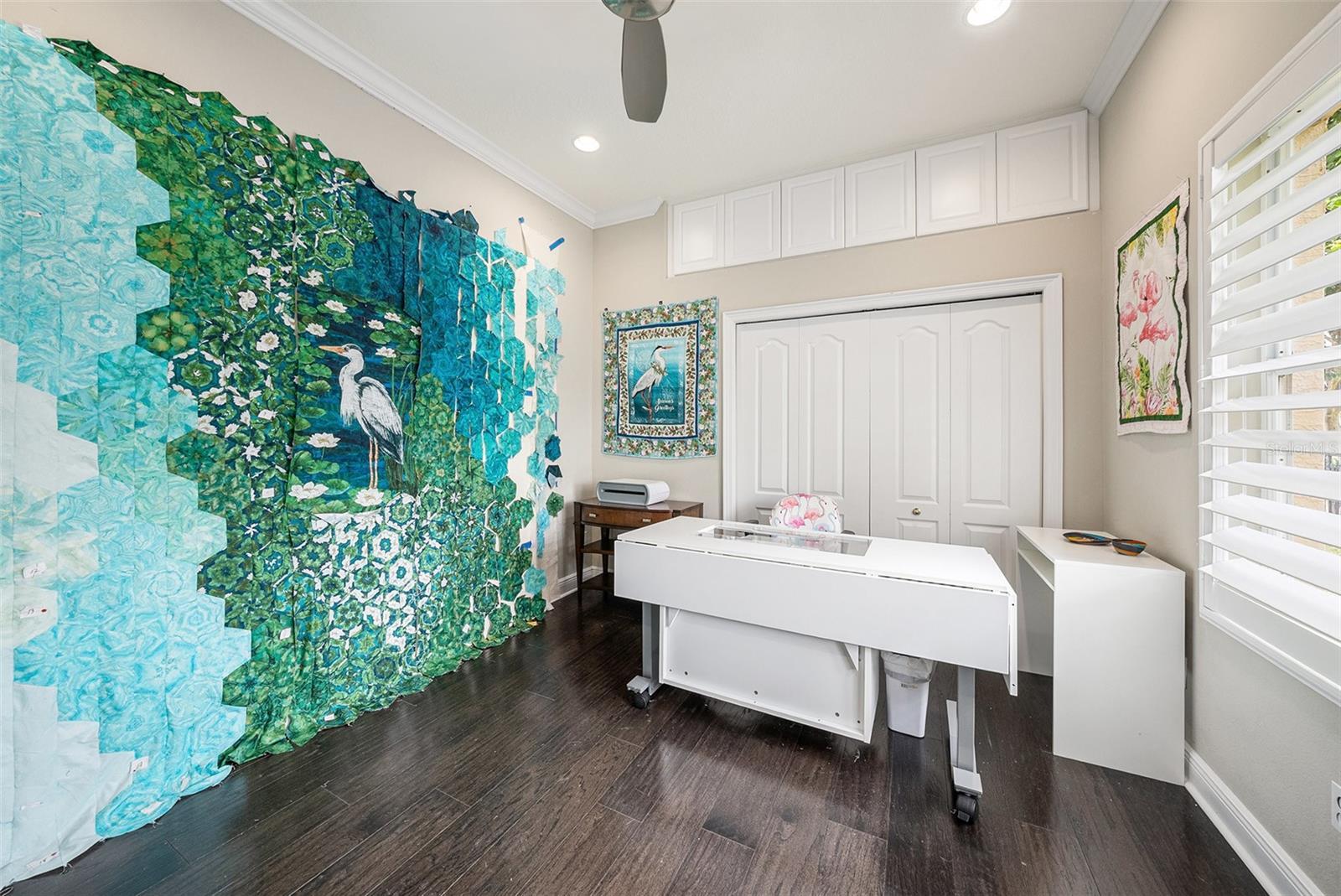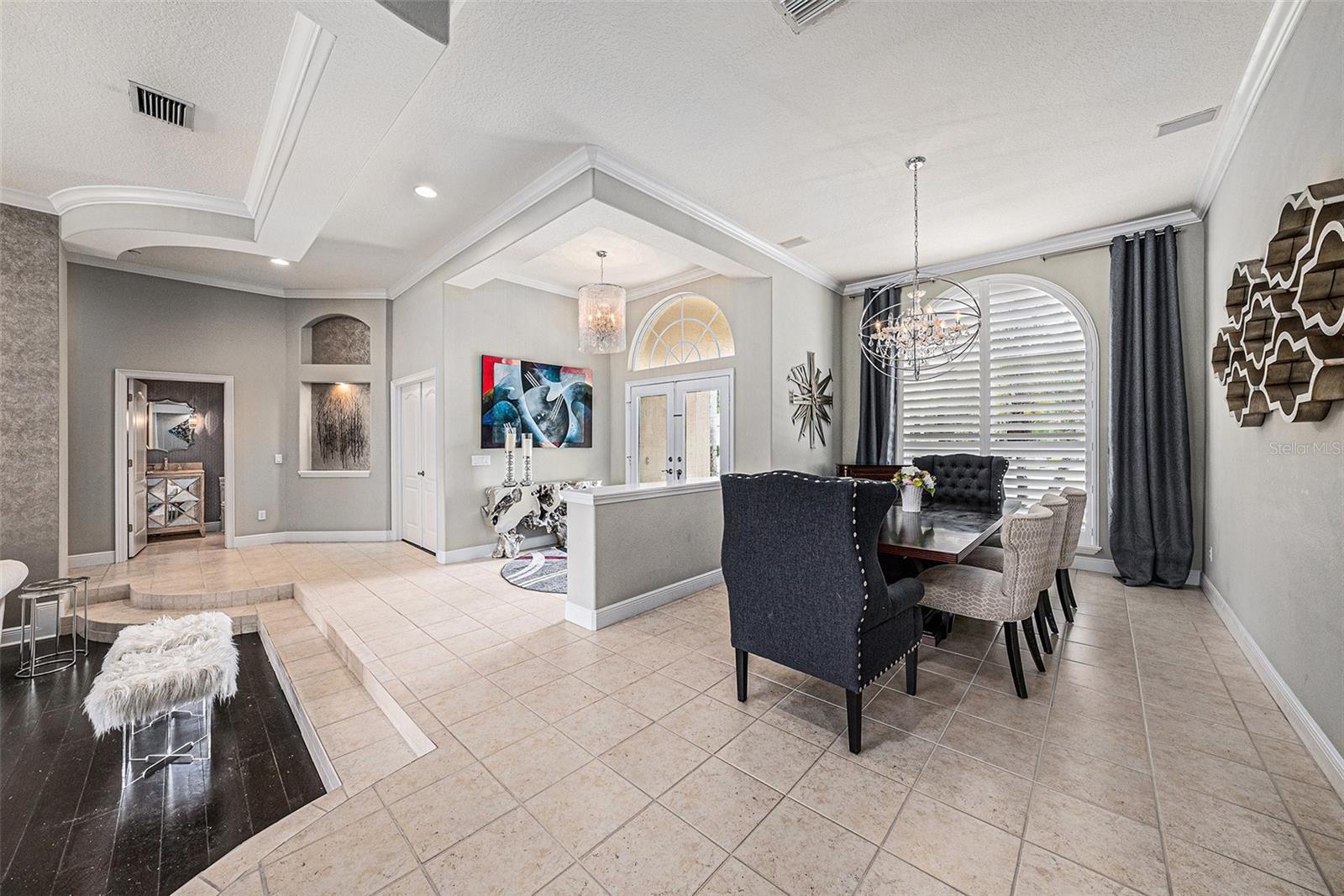 - Ceiling Fans(s), Crown Molding, Eat-in Kitchen, High Ceilings, Kitchen/Family Room Combo, Living Room/Dining Room Combo, Open Floorplan, Solid Wood Cabinets, Split Bedroom, Stone Counters, Walk-In Closet(s), Window Treatments