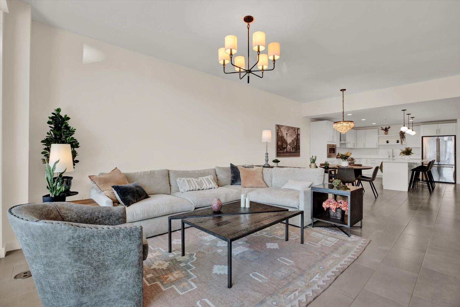 - Built-in Features, Ceiling Fans(s), Eat-in Kitchen, High Ceilings, Living Room/Dining Room Combo, Open Floorplan, Other, Solid Surface Counters, Thermostat, Walk-In Closet(s), Window Treatments
