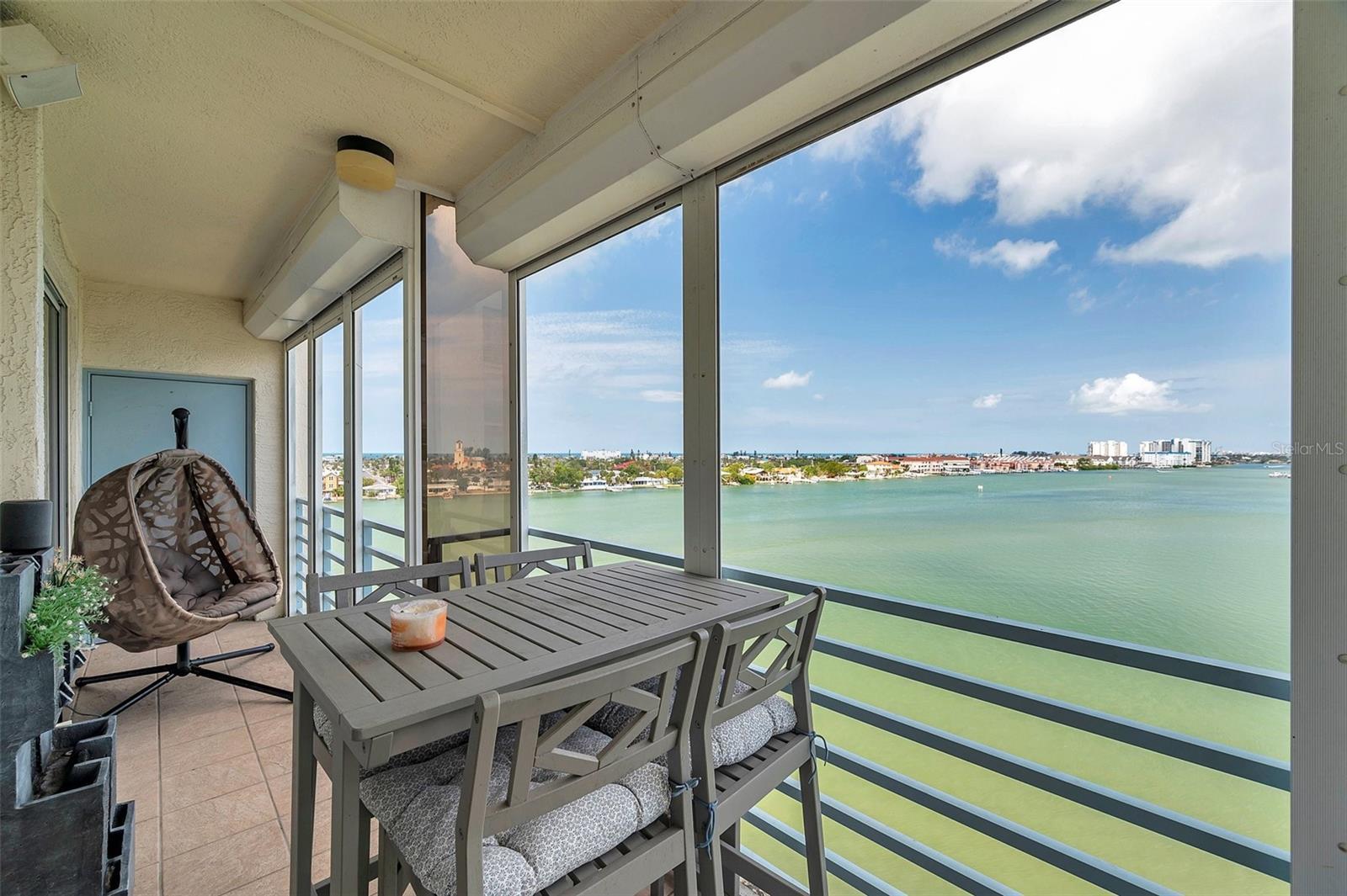 Welcome to Beach living at its best in this amazing 6th floor end unit Penthouse located in the exclusive gated community of HARBOURSIDE. This 2 bedroom, 2 bath unit enjoys beautiful sunrises from the front balcony, kitchen eat in area and the office. Watch the sunset over the Gulf from the Primary Bedroom, living room and back balcony. The back balcony, kitchen windows and the guest bedroom window have hurricane shutters. The primary bedroom has an en suite bathroom and walk-in closet. The floors are a beautiful hardwood maple with sandstone floor tiles in the kitchen. There are built-ins and crown molding throughout, NEW hot water tank and dishwasher. NEW Roof 2024. The office has access to the front balcony which also accesses the kitchen. The large back balcony provides Gulf views and can be accessed from both the living room and primary bedroom. The condo storage closet accessed from the back balcony and there is a large private storage unit on the same floor. The Kitchen has been opened up to provide maximum views and has a passthrough for ease of entertaining. There are stainless appliances, granite counter tops, and newer cabinets. The window treatments on all windows provide privacy and sun protection without obstructing the views. Under building assigned parking is provided. Harbourside condo is a guard gated, waterfront community offering 24 hour security and features a number of amenities including a 1.5 mile waterfront walking trail, kayak racks, multiple heated pools, tennis & pickle ball courts, his and her fitness centers, saunas, hot tub, 87 deeded boat slips for rent or sale, shuffleboard courts, 3 outdoor grilling stations, 2 electric car charging stations, and 3 car washing stations, recently renovated clubhouse with endless activities along with a library, billiards room, work shop and more. This complex is located just a short distance from the quaint town of Gulfport and the popular St Pete Beach with all the shops and restaurants along Gulf Blvd. To the east is downtown St Petersburg with its numerous waterside venues, restaurants, shops, museums, breweries and so much more!