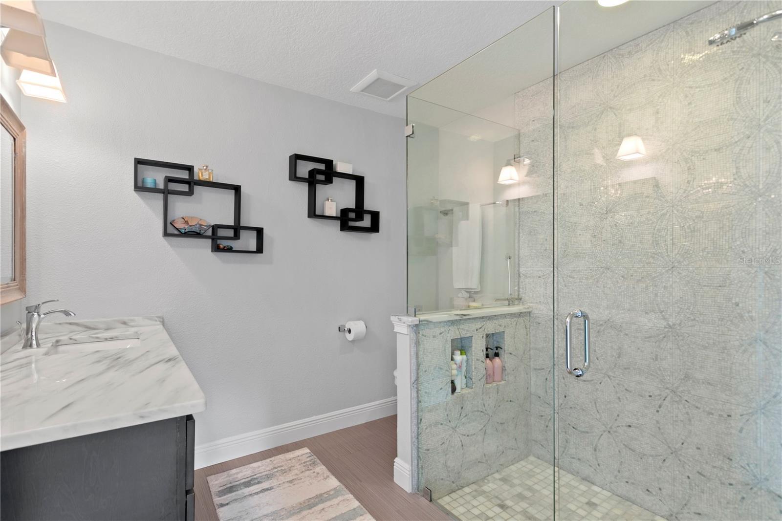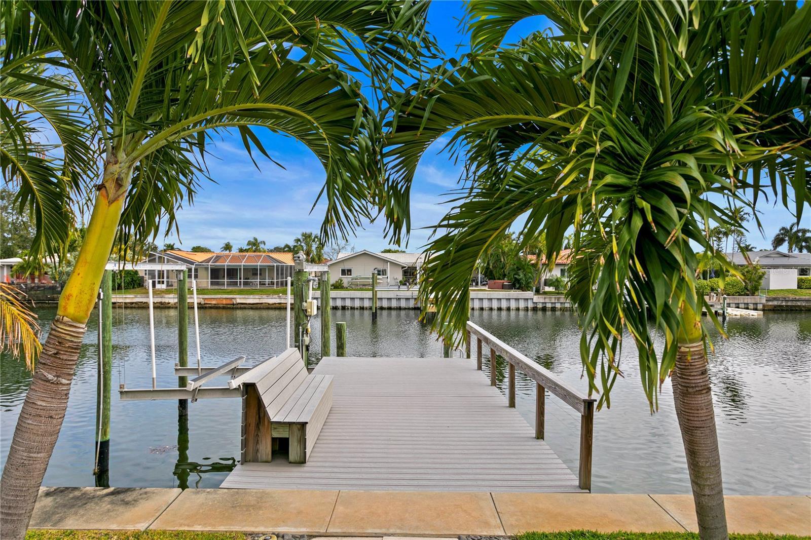 Don’t miss your opportunity to own this stunning home in the highly sought-after waterfront community of Venetian Isles! This beautiful 4-bedroom, 3-bath residence offers the perfect blend of luxury, comfort, and modern coastal living. Step inside to an expansive open-concept layout where the family room, kitchen, and dining area flow seamlessly into a screened lanai and beautifully landscaped backyard—perfect for effortless indoor-outdoor entertaining. The home welcomes you with a spacious foyer or a convenient mudroom entrance from the two-car garage. Throughout the living spaces, wood-look ceramic tile creates a warm, elegant ambiance. At the heart of the home, the chef’s dream kitchen features a large U-shaped eat-in island with marble countertops and backsplash, high-end Café series stainless steel appliances, and stylish custom cabinetry. The interior laundry room is as functional as it is beautiful, complete with Whirlpool Cabrio washer and dryer, built-in cabinetry, utility sink, and marble tile accents. Thoughtfully designed for privacy, the home offers a split bedroom layout. The first guest bedroom enjoys a beautifully appointed full bath, while two additional bedrooms in a separate wing share a spa-like bathroom with Danze fixtures and designer finishes. The private master suite is a true retreat, showcasing a luxurious marble bathroom and a generous walk-in closet. Enjoy true Florida living with hurricane-rated sliding glass doors that fully pocket back, connecting your main living spaces to the screened lanai and creating a seamless indoor-outdoor experience. Whether you're relaxing by the heated saltwater pool and spa, or enjoying tranquil canal views from the cozy firepit corner, this backyard oasis has it all. Boaters will appreciate the composite dock with electric, water, a 10,000 lb. boat lift, and updated seawall (2017). The lush landscaping provides ample privacy and is enhanced by elegant outdoor lighting for evening ambiance. Best of all, this home has experienced no water damage from any hurricanes—a testament to its strong construction and elevated location. Homes like this in Venetian Isles don’t come around often—schedule your private showing today!