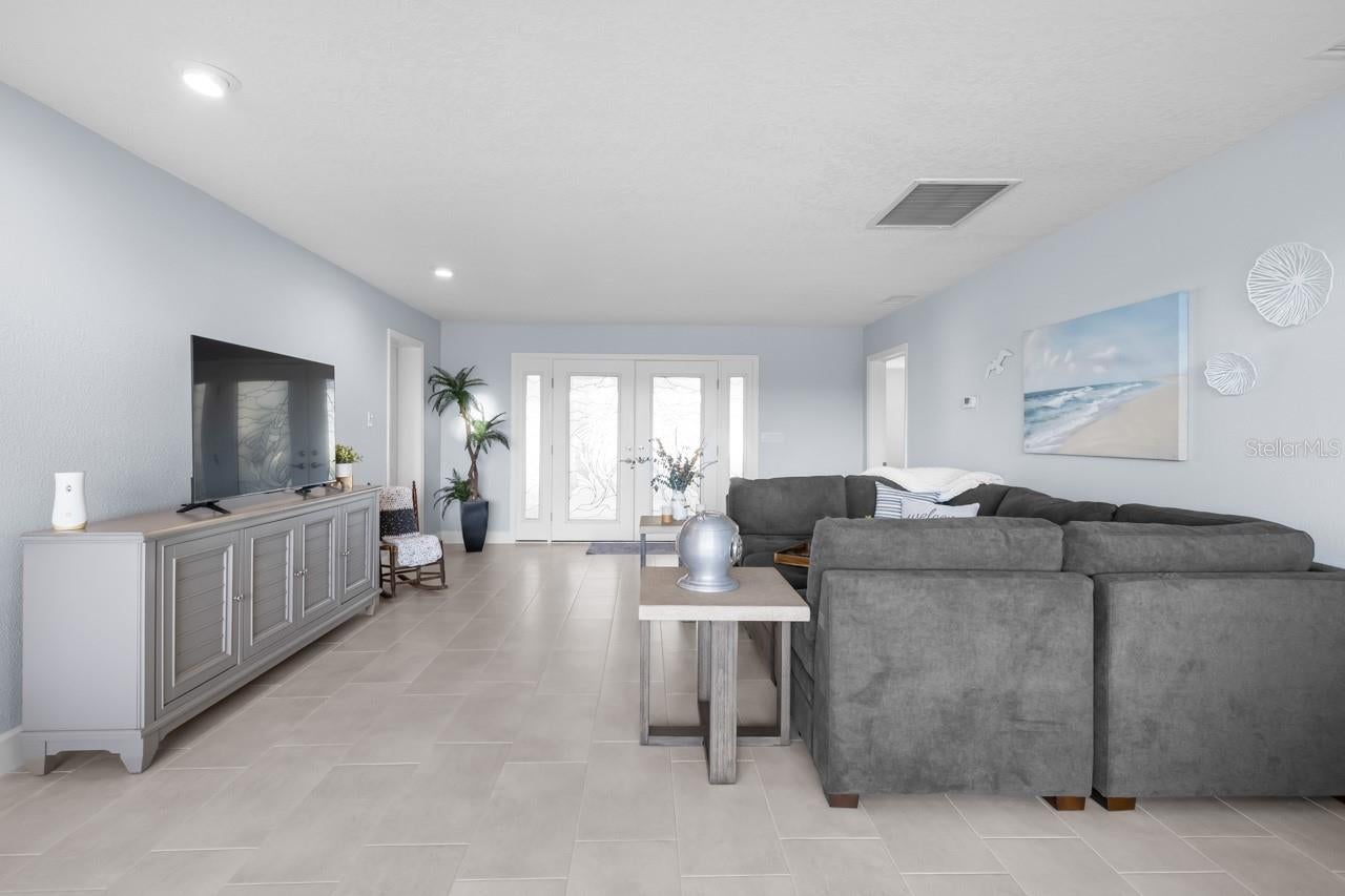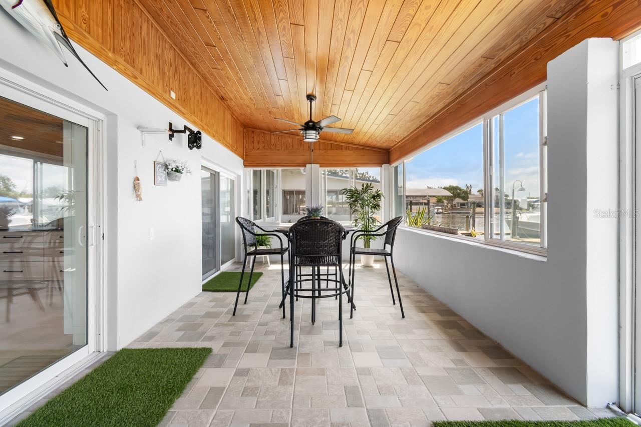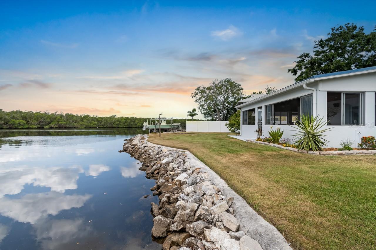 Under contract-accepting backup offers. Back on the market! This WATERFRONT paradise is the perfect oasis for a boating/fishing enthusiast, or simply anyone dreaming of a coastal cottage getaway! Brand new front doors and front porch tile! OPEN WOOD DOCK with 10,000-lb BOAT LIFT, FULLY FENCED at the end of a dead-end street with privacy gate, plenty of parking space, and NO HOA or CDD, so bring your boat, trailer, RV, ATVs, and other toys! NEW is the word used over and over when describing this beautiful 3-bedroom, 3-bathroom, 2-car garage home: NEW HVAC (2025), NEW PLANTATION SHUTTERS throughout, NEW hot water heater (2024), all major appliances are NEW (2024), and NEW PAINT inside and out! From WOOD CEILINGS to CROWN MOLDING, there are so many special touches to this relaxing refuge. The METAL ROOF includes hurricane strapping that was inspected this year (2025). The spacious COVERED & SCREENED FRONT PORCH is surrounded by fresh, colorful landscaping and has two fans for breezy comfort year-round. Step through the glass double-door entry to be met with TILE FLOORING throughout! There's a 7X12 storage room off the living room, and a GREAT ROOM with even greater windows to let in that gorgeous water and conservation view, and they're all equipped with blinds for shielding the light and warmth when desired. The immaculately UPDATED KITCHEN features a BREAKFAST BAR, ISLAND, STAINLESS STEEL APPLIANCES, and sliders to the back lanai. The Primary Suite includes black-out curtains, a 6X10 WALK-IN CLOSET with CUSTOM BUILD-INS, and an EN-SUITE BATHROOM with a DUAL SINK VANITY, a WALK-IN SHOWER with DUAL SHOWER HEADS, a separate JETTED TUB, and a water closet. The Primary Bedroom also provides access to the enclosed FLORIDA ROOM - install a hot tub, set up seating, or since it leads right on out to the dock and boat lift, continue using this space as a fishing room! The front bedroom has its own EN-SUITE BATHROOM featuring a single sink vanity and shower stall, and the third bedroom (currently used as a craft room) includes TWO CLOSETS! The interior laundry room includes cabinetry, counterspace, a storage closet as well as a coat closet by the garage, its own sink, LG washer/dryer, and connects to the third full bathroom with its single sink vanity and shower stall. The COVERED & SCREENED WRAP-AROUND LANAI was TILED in 2023 and has NEW CEILING FANS, and there's a perfect covered grilling spot off to the side. This home is truly something special. Feel like you've escaped the rest of the world and start making new memories here.