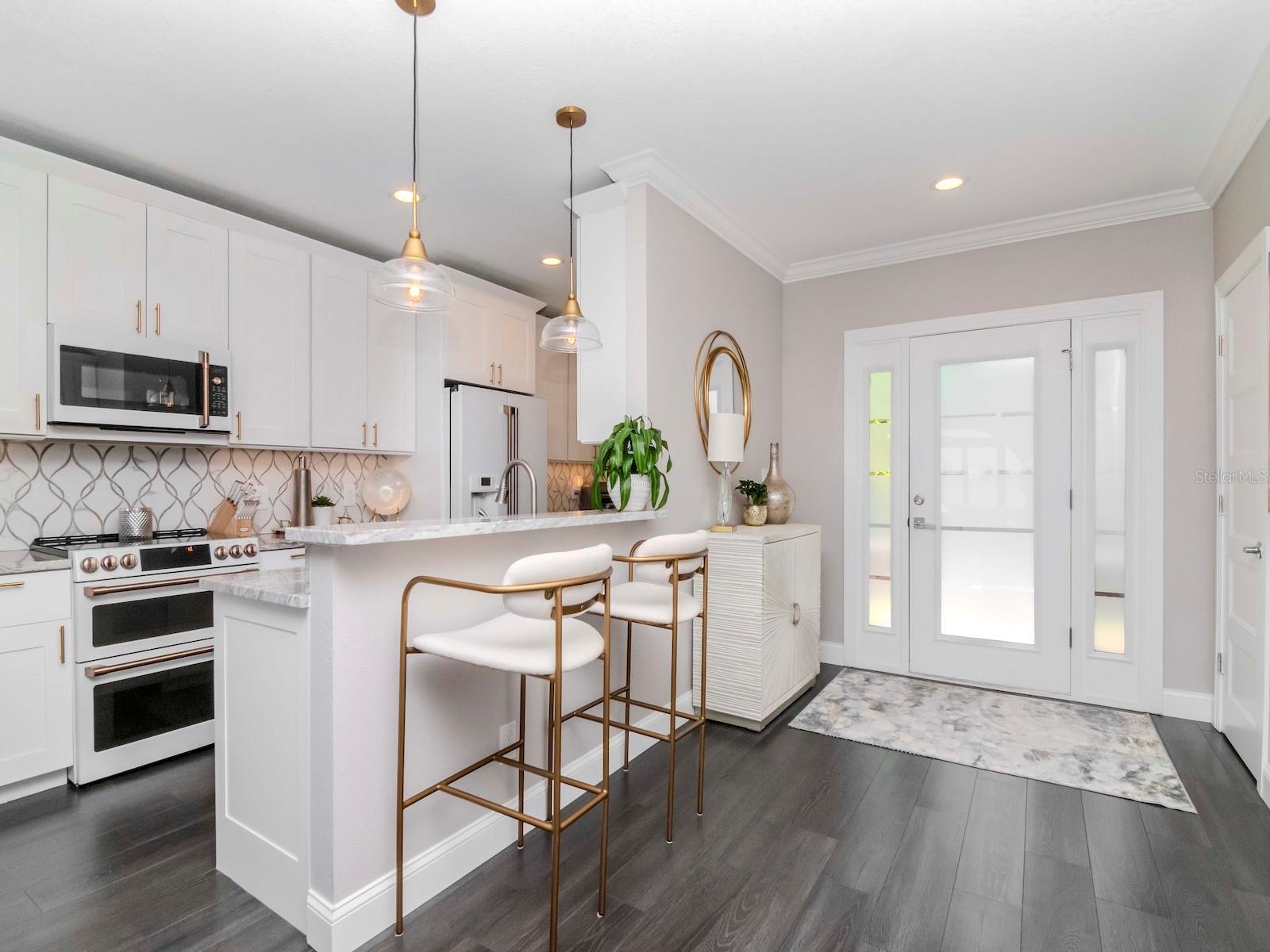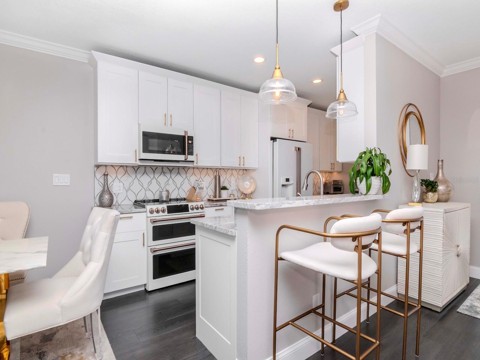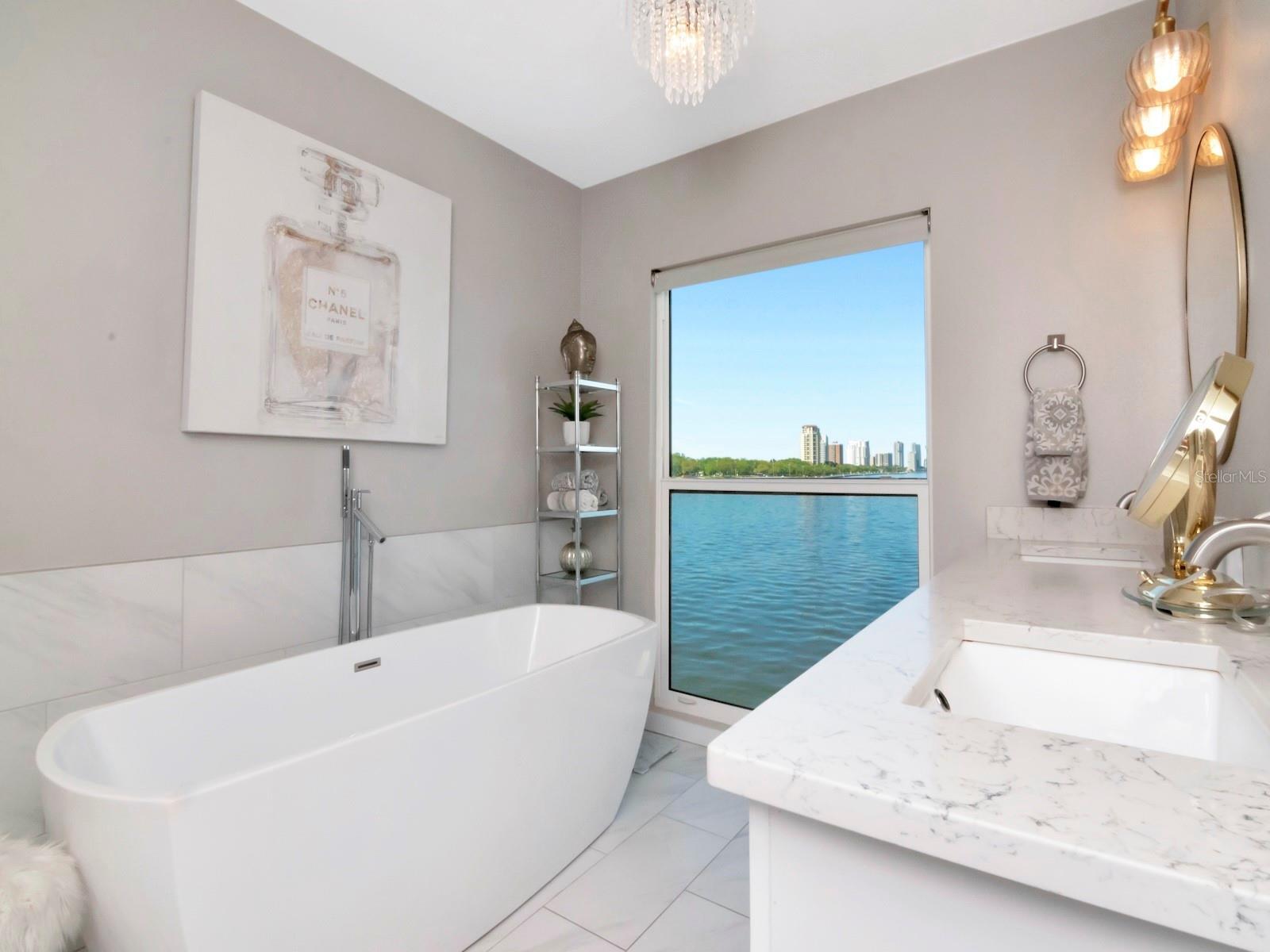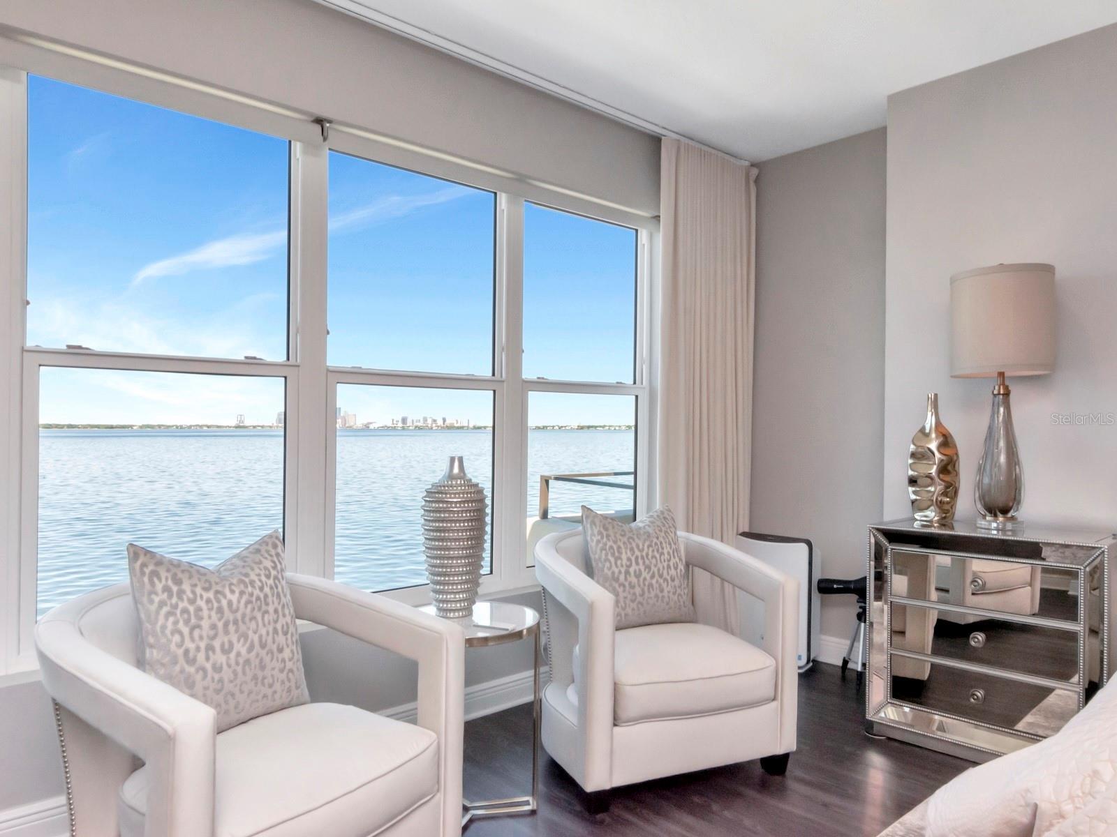 Welcome to luxury bayfront living at its finest! This stylish and modern 2-bedroom, 2.5-bath townhouse-style condominium offers breathtaking views of Hillsborough Bay and a lifestyle of comfort, elegance, and convenience. Located in the gated community of Hawthorne Point, this waterfront home offers privacy, convenience and luxury living at its finest. Step inside from the new front door and new travertine front porch to find a floor plan with clean architectural lines, freshly painted throughout, high-end finishes, and abundant natural light. The spacious living and dining areas are highlighted by a new great-room wall and custom fireplace feature, which flow seamlessly to a private patio, also with new travertine, perfect for enjoying morning coffee or evening soirees over the water. Automatic window shades offer effortless convenience, along with custom draperies, resulting in energy efficiency and a modern touch that enhances both comfort and style. The sleek gourmet kitchen features quartz countertops, new white matte Café appliances with gold handles, new kitchen backsplash, and a generous bar ideal for entertaining. Upstairs, both bedrooms offer en-suite bathrooms and generous closet spaces that feature custom shelving and storage systems, and the primary suite boasts a spa-like bath and a spectacular bay view. A convenient half-bath is located on the main level for guests, and a private two-car garage provides secure parking and extra storage. Situated in a Bayshore Boulevard private waterfront community, with just 11 units, this home is located minutes from downtown, local dining, and entertainment hotspots. This bayfront gem has it all. Don’t miss this rare opportunity to own a piece of paradise overlooking Hillsborough Bay!