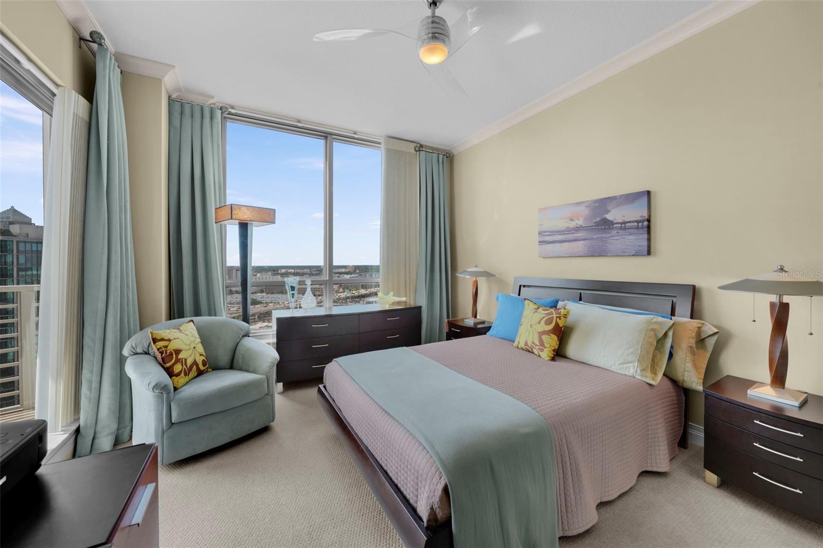 Experience unparalleled comfort and style in this stunning 22nd-floor luxury condo, where breathtaking panoramic views of the water, Water Street, cruise ships, and Harbour Island. This is a rare opportunity to own one of the select units offering city skyline views of Water Street, downtown Tampa. Unlike typical two-bedroom units, this unique Two-Bedroom Master floor plan is the largest of its kind in both towers, with expansive living spaces. The condo includes two secured parking spaces in the garage with additional room for a motorcycle or extra storage, as well as a large storage unit for added convenience. Both master suites feature ensuite bathrooms, massive walk-in closets, and direct access to the spacious 278 sq. ft. wrap-around terrace. A separate powder room is available for guests. The interior is exquisitely designed with tile flooring in the kitchen and bathrooms, rich hardwood floors in the main living area, elegant crown molding, tray ceilings, and a modern kitchen with granite countertops and premium finishes. This home is truly move-in ready! Enjoy the privacy of a floor with few units while becoming part of one of Tampa Bay’s most luxurious high-rise communities. Don’t miss your chance to turn the key to your dream home in a highly desirable neighborhood with unrivaled city skyline views.