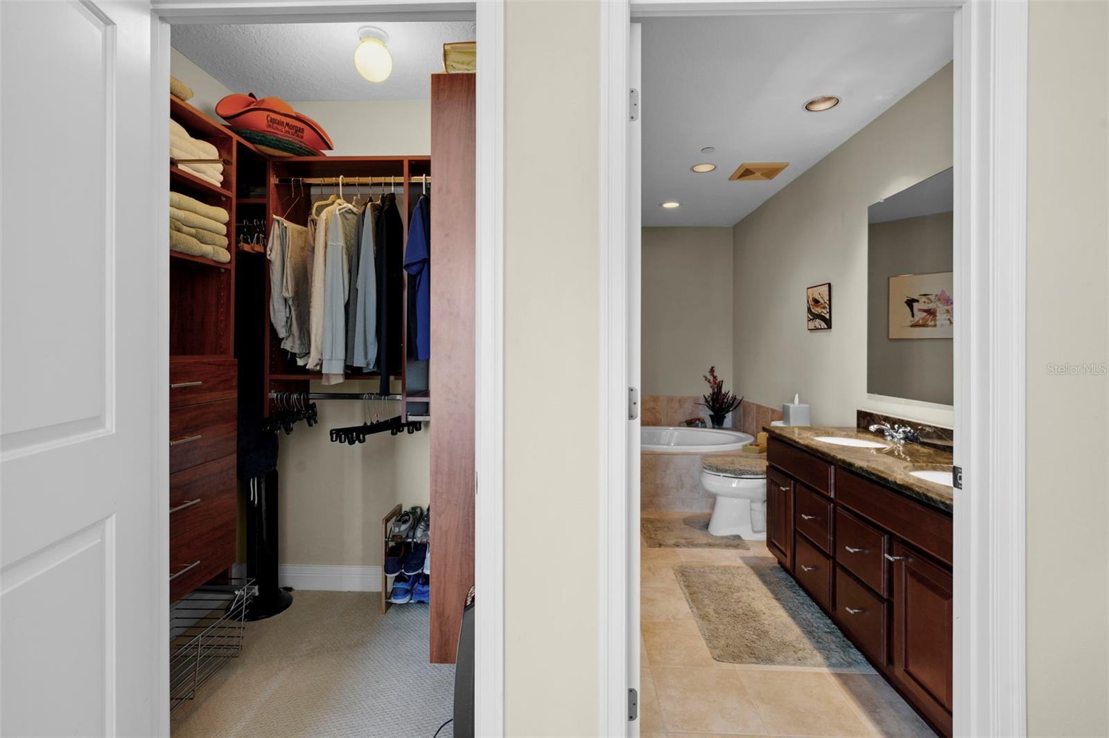 - Built-in Features, Ceiling Fans(s), Crown Molding, Eat-in Kitchen, Elevator, High Ceilings, Kitchen/Family Room Combo, Living Room/Dining Room Combo, Open Floorplan, Primary Bedroom Main Floor, Solid Surface Counters, Solid Wood Cabinets, Split Bedroom, Stone Counters, Thermostat, Walk-In Closet(s), Window Treatments