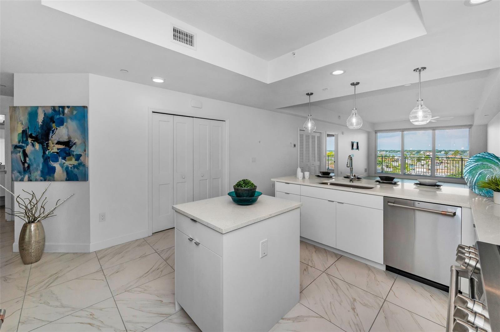 One or more photo(s) has been virtually staged. 50FT BOAT SLIP INCLUDED IN PRICE! Refreshed and updated – now offering rare water views at a new price! Step into modern coastal living at its finest. Built in 2023, this luxury 3BR /2BATH residence combines sleek design with unbeatable waterfront access with an exceptionally rare 50-foot deeded boat slip located directly behind the building. Arrive by car or by water, this is Clearwater living without compromise. Inside, you’ll find an open-concept layout with high ceilings, full-impact windows, 30FT covered balcony, a chef’s kitchen with premium cabinetry, quartz counters, and a spacious island perfect for entertaining. The primary suite offers a private retreat with a spa-inspired bathroom and walk-in closet, while the two guest bedrooms provide comfort and flexibility for visitors or a home office. Enjoy your morning coffee from the balcony, take your boat out for a sunset cruise, or explore Clearwater Beach by golf cart—just minutes away. With newer construction, elevated coastal style, under-building parking, and direct access to everything Island Estates has to offer, this exclusive resort style community – Dolphin Harbour – also boast a glistening pool and hot tub. This home offers refined living, unparalleled boating access, and the low-maintenance luxury today’s buyers are looking for. And bring your pets; 2ea dogs x 50 lbs each allowed!