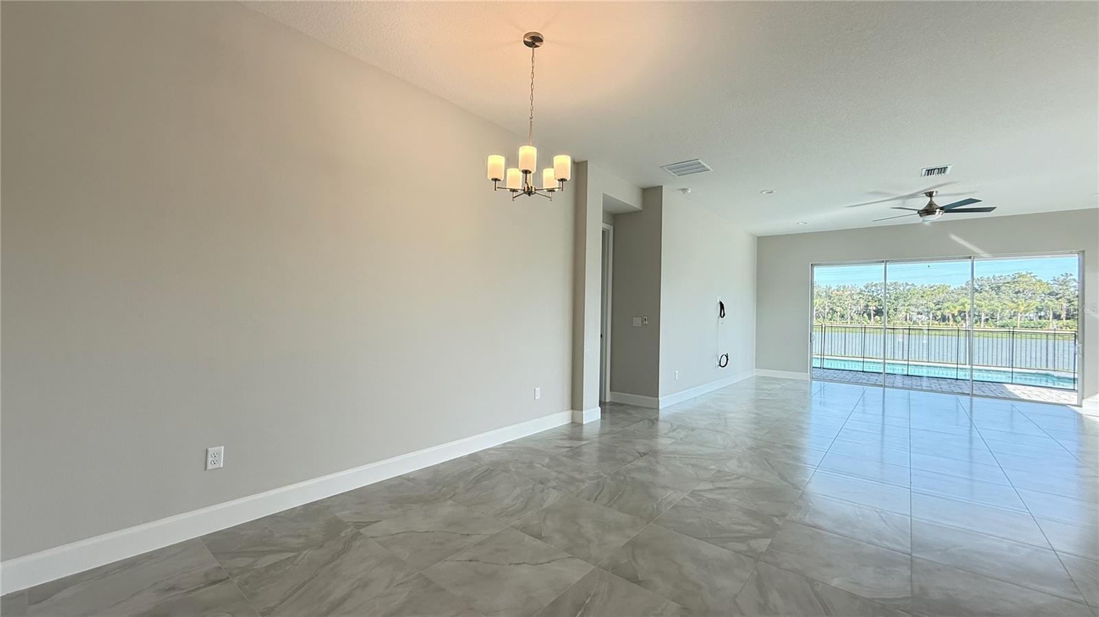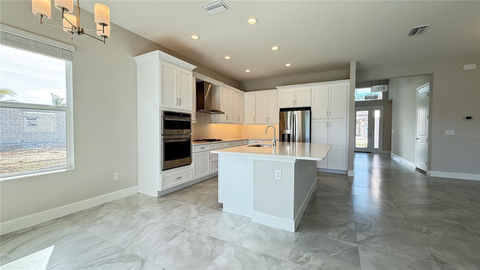 Fixed 4.99% rate lock promo.***A recent builder incentive of $15K has been applied to the list price.**Live expansively in the Claudia model at Valencia Ridge. Valencia Ridge is a 55+ age-restricted community designed exclusively for active adult living. This POOL HOME is an expertly designed 3-bedroom, 3 bath + den estate home offering over 2,450 A/C square feet of luxurious living space with a 2’ garage extension and a wide array of premium upgrades throughout. From the moment you enter through the full-light clear glass front door with sidelite, you’re greeted by a sun-drenched, open-concept layout featuring soaring ceilings and designer finishes curated for style, comfort, and sophistication. At the heart of the home is a gourmet kitchen outfitted with quartz countertops, full quartz backsplash. Valencia Ridge is a natural gas community, offering energy-efficient appliances and high-performance living. Included appliances are a GE Profile stainless steel appliance suite, including a built-in gas cooktop, French door refrigerator, chimney hood, convection wall oven/microwave combo, and third-rack dishwasher. The kitchen has full overlay cabinetry and polished chrome hardware, soft-close doors and drawers, and a full cabinet pantry conversion. A massive island with matching quartz provides the ideal setting for hosting or casual dining. Adjacent to the kitchen, the casual and formal dining areas are beautifully lit with upgraded Progress light fixtures, and the great room is pre-wired for hidden TV installation and features recessed lighting and designer ceiling fans. The owner’s suite is a true retreat with dual walk-in closets and plush carpeting. Primary bathroom includes a spa-inspired bathroom showcasing floor-to-ceiling tile, a glass shower enclosure, soaking tub, quartz vanity tops, and upgraded cabinetry. Secondary bedrooms and bathrooms feature equally refined selections, including white quartz counters, upgraded wall tiles to the ceiling, banjo-style vanity extensions, and Moen chrome fixtures. Additional upgrades include 2” faux wood blinds, under-cabinet lighting, and a Sherwin Williams Drift of Mist interior paint palette throughout. Step outside and embrace the Florida lifestyle with a designer 13’x26’ rectangular pool featuring a Jandy LED color-changing light system, saltwater filtration, upgraded Oyster Gemstone waterline tile, and granite paver pool deck, enclosed by a full property bronze aluminum fence with double gates. A concrete footer for a future screen enclosure and a stub-out for a future summer kitchen complete the outdoor experience, making it ready for personalization and entertaining. The world-class clubhouse and community amenities are currently under construction, with completion expected soon — offering residents an exciting new social hub right around the corner where you’ll enjoy multiple resort-style pools, pickleball and tennis courts, a state-of-the-art gym, sports lounge, full-service restaurant and bar, and an expansive event hall. Life at Valencia Ridge means vibrant social events, resort-style relaxation, and opportunities to connect with like-minded neighbors. The lifestyle is thoughtfully designed for active adults seeking wellness, recreation, and fun at every stage of the day — from sunrise pickleball to evening socials. Designed for those who demand elevated finishes and a vibrant, maintenance-free lifestyle, The Claudia delivers the very best of a 55+ resort living and CDD community.