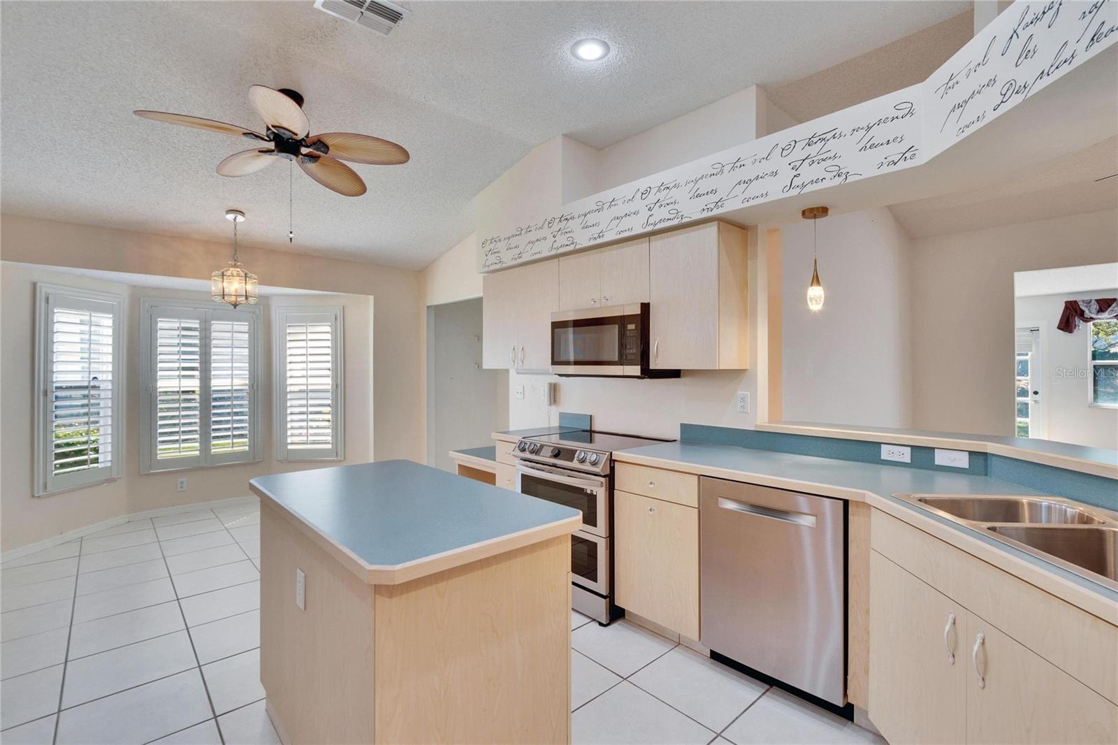 Welcome home to one if the top rated retirement communities in the country, where everyone and their golf carts are welcome….. Don't miss out on your chance to live in the GATED community of Kings Point. This 2 Bedroom, 2 Bathroom floor plan is highly sought after and features high ceilings, an inviting eat-in area in the kitchen and flex space which can be used as a dining room, office or third bedroom. The kitchen is spacious, with light wood tone cabinetry, a center island with extra storage and food prep space, and a bar height counter top space open to the living area for casual seating. The in kitchen casual dining area is tucked into the bay window and makes for a great space for morning coffee. The split-floor plan ensures privacy and boasts a spacious primary bedroom, with two walk-in closets, and an en-suite bathroom featuring dual sinks, a garden tub, and a walk-in shower. The second bedroom is spacious with convenient access to the second full bathroom. The garage has a second refrigerator, a utility sink and space for 2 cars or one car and a golf cart. Kings Point's is a maintenance-free, resort style community with virtually everything included such as gated security with 24-hour guard, premium cable, internet, exterior property maintenance, grounds maintenance, pest control, sewer, trash, and water. That's not all, there are two beautiful clubhouses, an 850-seat theater, 6 heated pools, 2 hot tubs, an elegant spa, tennis courts, pickle ball, state-of-the-art fitness centers, billiards, bingo and much more. There are scores clubs with all sorts of activities that will keep you busy year-round and this community also has its own free transportation system. Landlord pays basic cable, internet, water/sewer, amenities fees for 2 tenants, pest control, lawn maintenance, while the tenant pays for electric, telephone, and additional TV channels. No smoking, no pets. Apply at: https://apply.link/UEgvqUA