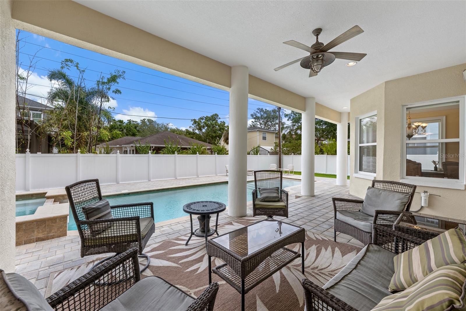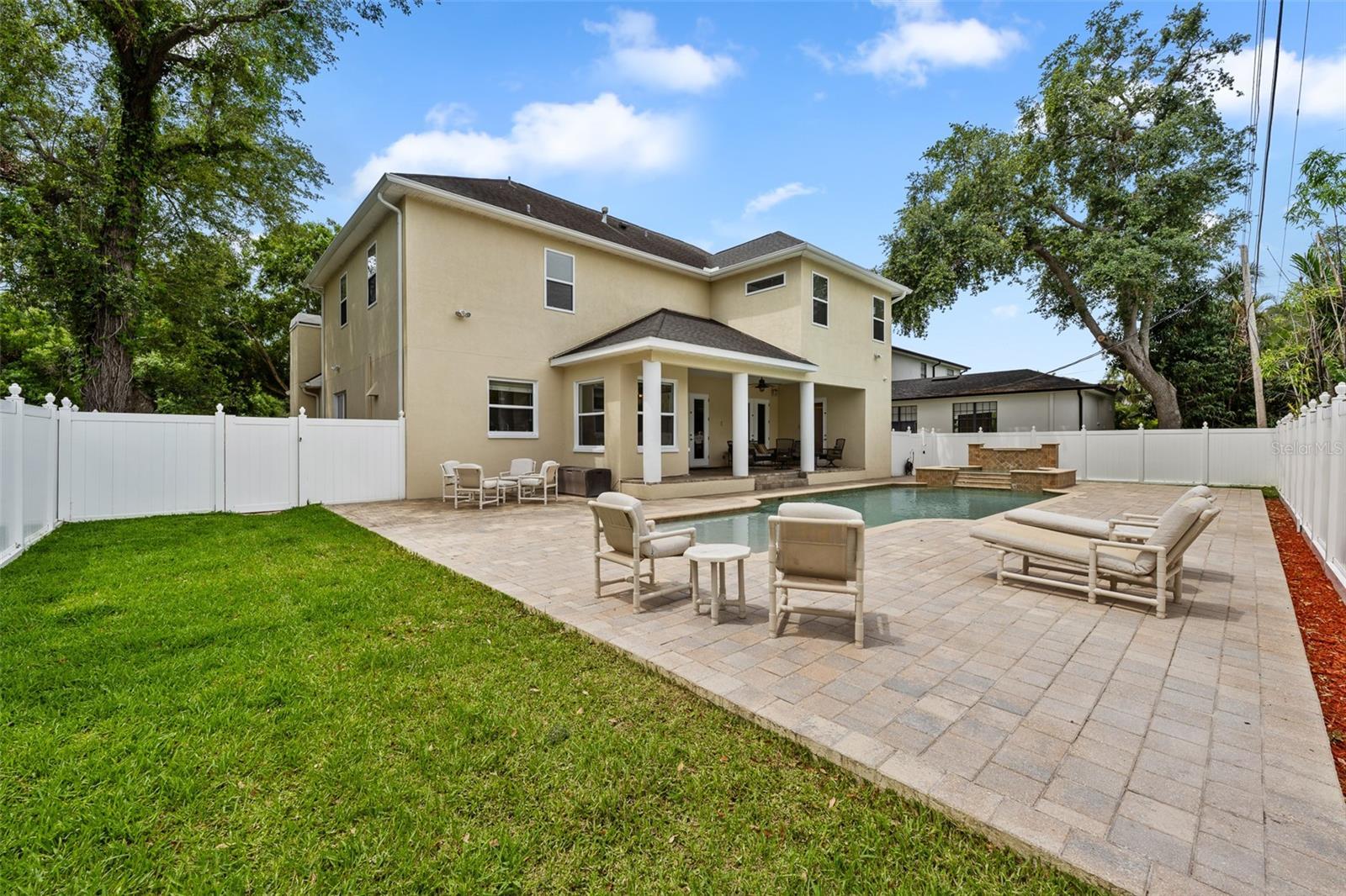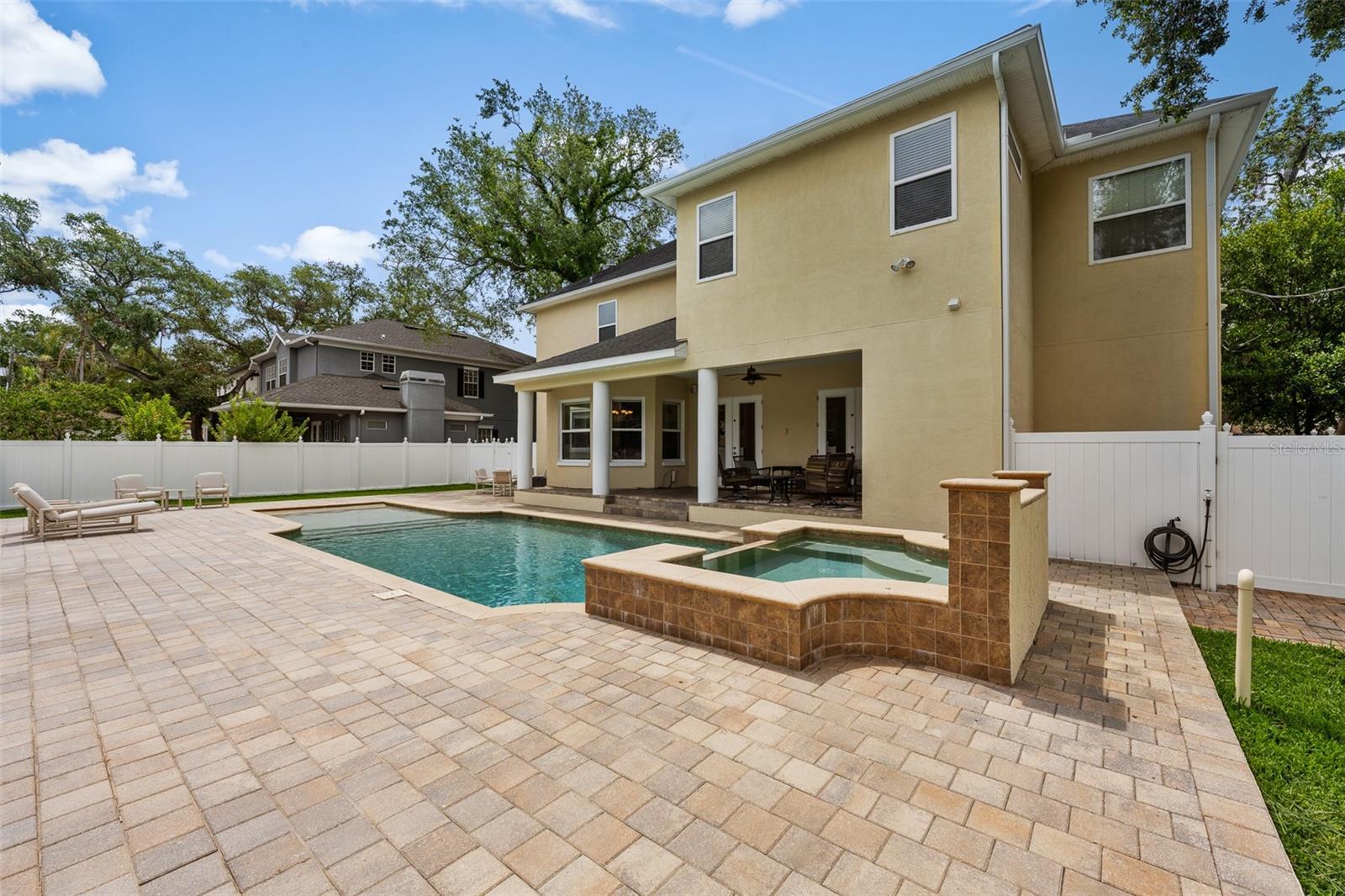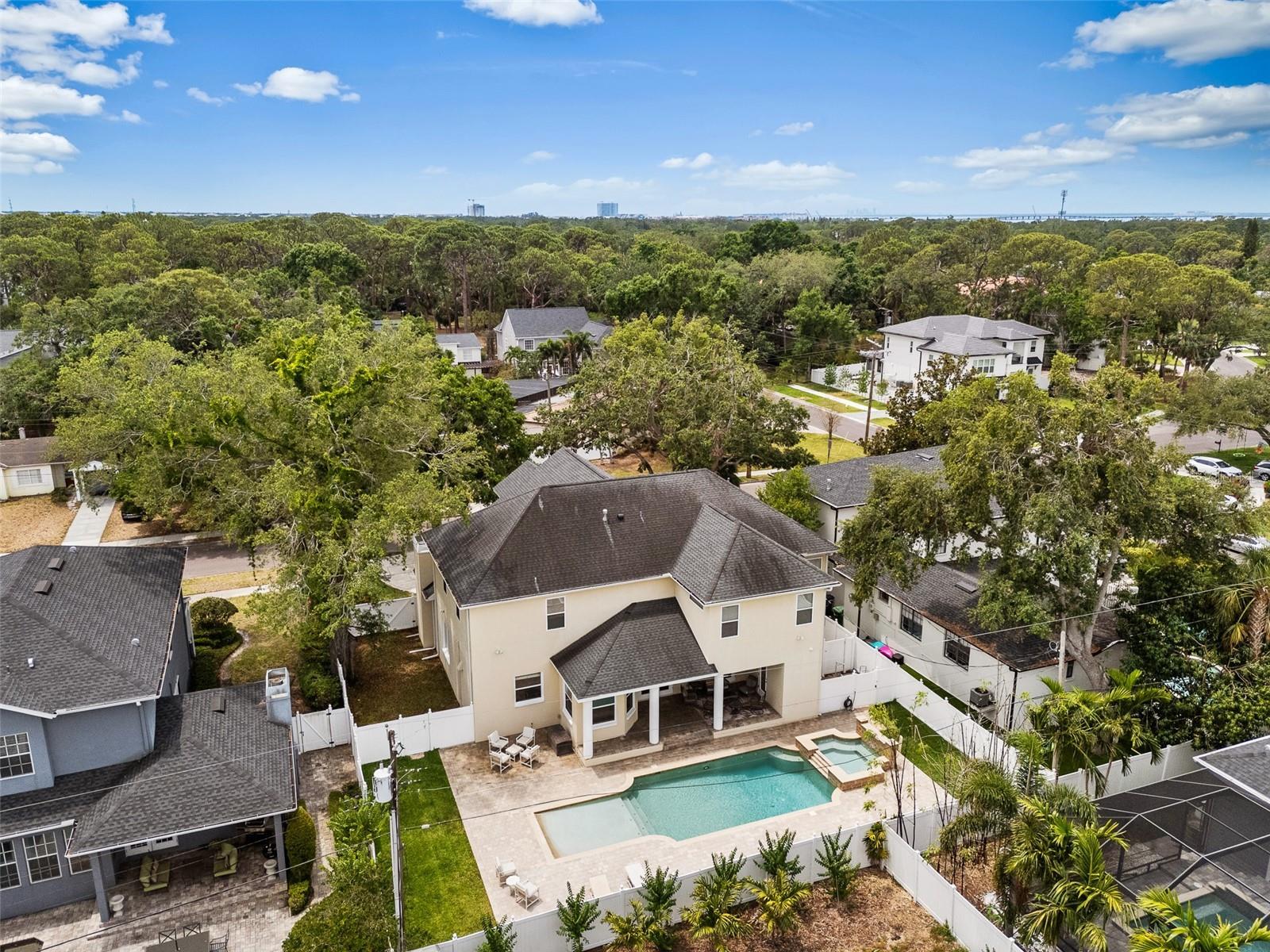 This elegant 5-bedroom, 4.5-bath residence in South Tampa's exclusive Sunset Park offers significant updates that include a 2018 roof and 2025 HVAC air ducts, fresh paint, new countertops, new fixtures, new sconces, and much more ensuring modern comfort and peace of mind. Upon entry, a two-story, pillar-framed entrance reveals a grand foyer featuring 22-foot ceilings, a 30-light motorized chandelier, and arched window. The gourmet kitchen, fully customized in 2016, is equipped with a 4-foot Wolf gas range, Thermador refrigerator, granite island, and a window-lined breakfast nook with abundant natural light and pool views. A wet bar, complete with a wine refrigerator and R/O system, complements the sophisticated living room, which features French doors opening to the lanai. The formal dining room is appointed with crown molding and built-in speakers, while the family room offers a gas fireplace, cathedral ceilings, and a sizable arched window. Outdoor amenities include a covered lanai with recessed lighting and a ceiling fan, leading to the saltwater pool with a zero-entry tanning ledge and a raised hot tub. The expansive primary suite features a double-door entry, slanted tray ceilings, transom windows, and a large walk-in closet with adjustable built-ins. Its en-suite bathroom includes a jetted soaking tub, a spacious glass walk-in shower, and dual granite vanities with ample storage. Two guest bedrooms share a Jack and Jill bath, and a fourth guest bedroom includes a built-in closet and large window. The media room, accessible via a double-door entrance, features a granite wet bar, providing an ideal space for entertainment. An upstairs laundry room with a utility sink enhances convenience. Further notable features include hardwood floors, crown molding, white vinyl fencing with double gates, a three-zoned HVAC system, and two gas water heaters. Located on a quiet, upscale street within the desirable Plant High School district, this home offers convenient access to parks, shopping, dining, community amenities, and major transportation routes. We invite you to schedule a private showing to experience this exceptional property.