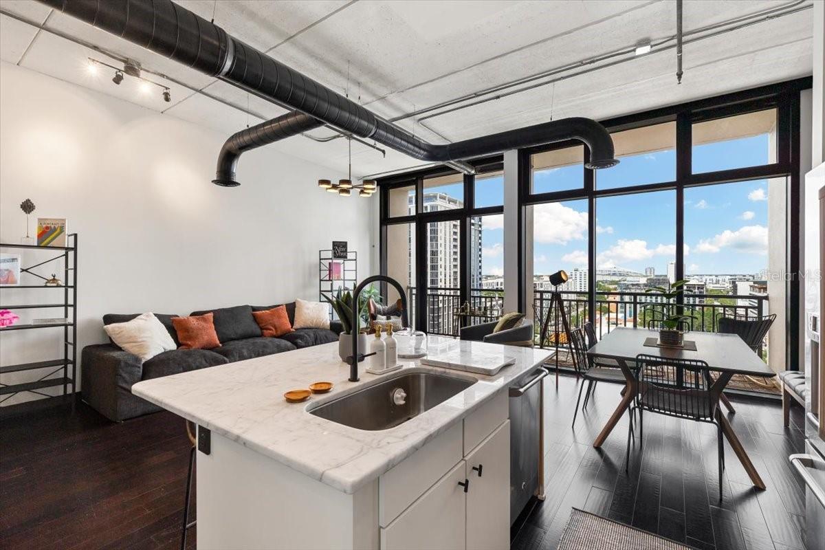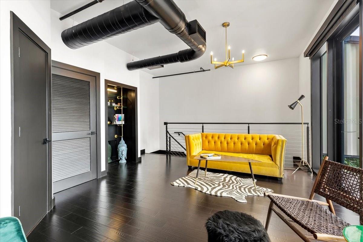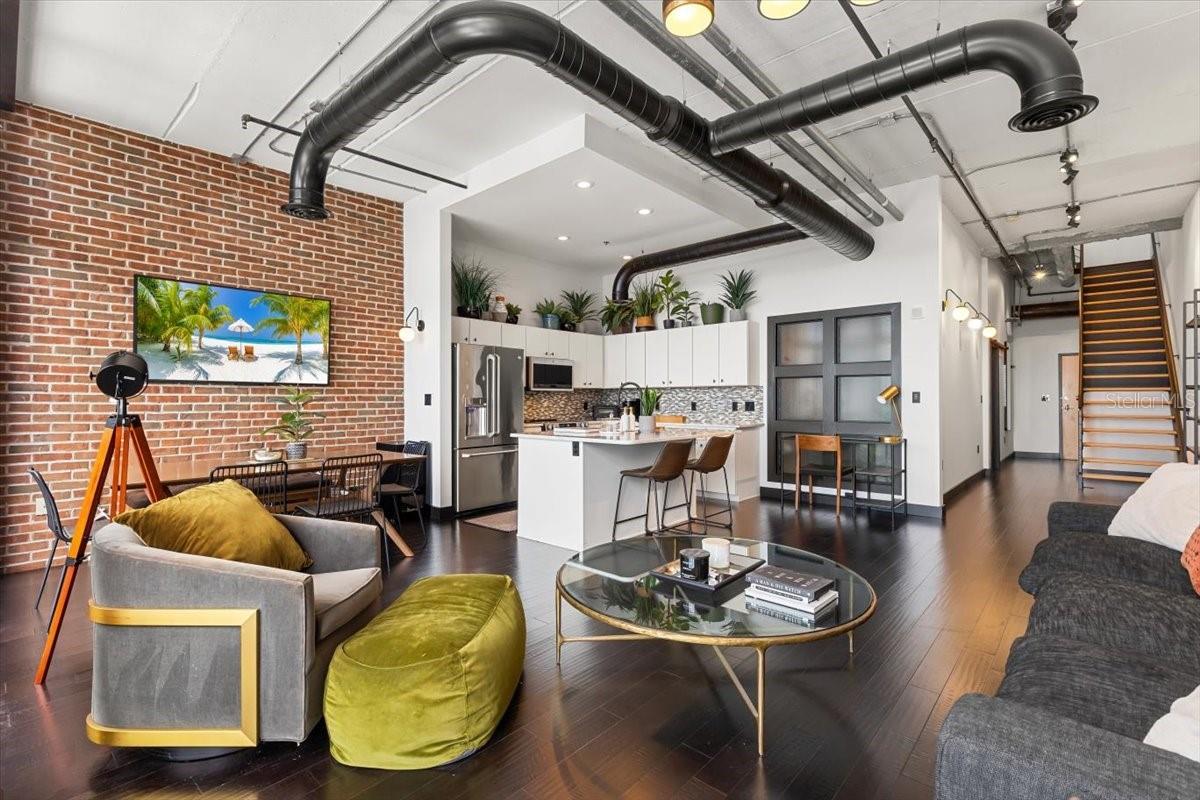 AMAZING TWO STORY PENTHOUSE LOFT. HUGE 22X14 TERRACE. INCREDIBLE CITY VIEW AND FABULOUS SUNSETS! THE LOFTS ARE 5 STORIES SET ABOVE A 4 STORY PARKING GARAGE. YOUR UNIT COMES WITH 2 COVERED PARKING SPACES IN THE GARAGE. THE SLIDING DOORS LEADING TO BEDROOM 1 HAVE BEEN REPLACED WITH A SOLID WALL FOR MORE PRIVACY. THERE IS A STACK W&D ADJACENT TO THE MASTER BATH. THE UPSTAIRS BEDROOM OFFERS DRESSER AND CHEST IN THE ORIGINAL CLOSET SPACE AND IS OPEN TO THE ROOM. THIS ROOM CAN BE USED AS A SECOND LIVING SPACE, OFFICE OR GUEST ROOM AS THERE IS A FULL BATH ON THAT LEVEL. THE GROUND LEVEL OF THE MCNULTY OFFERS A FITNESS CENTER, MEETING ROOM, TV AREA AND TABLES FOR PARTIES OR INFORMAL GATHERINGS. ENJOY DOWNTOWN LIVING AT ITS BEST. WALKABLE TO ALL THE DOWNTOWN ACTIVITIES AND ADJACENT TO RESTAURANTS, BARS, GALLERIES, AND MUSEUMS! RARE OPPORTUNITY TO OWN IN MCNULTY! DON'T MISS THIS ONE!