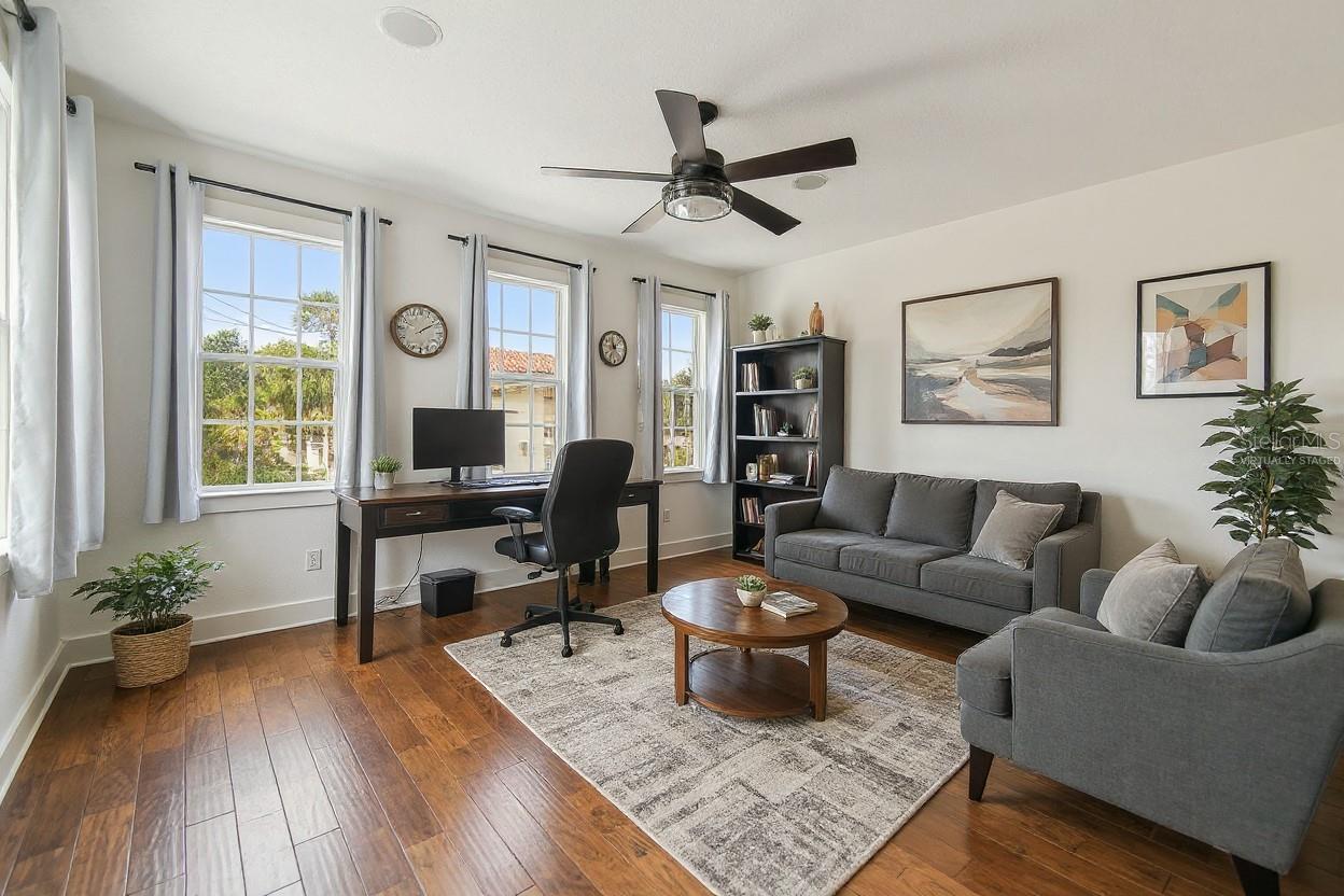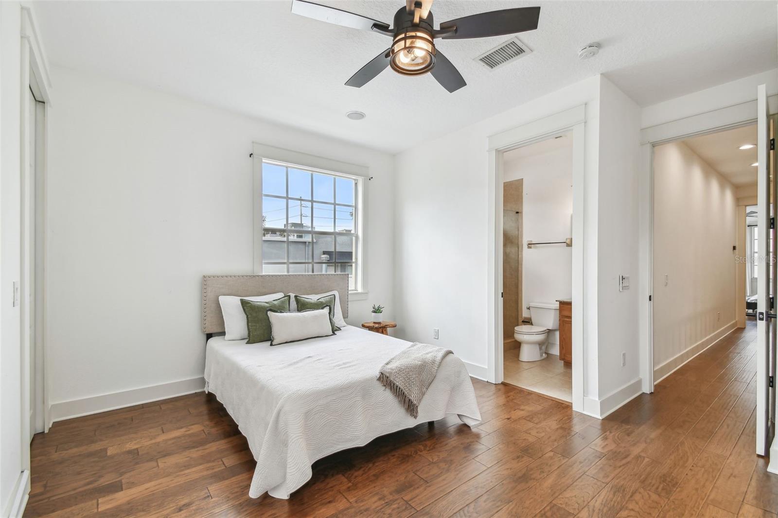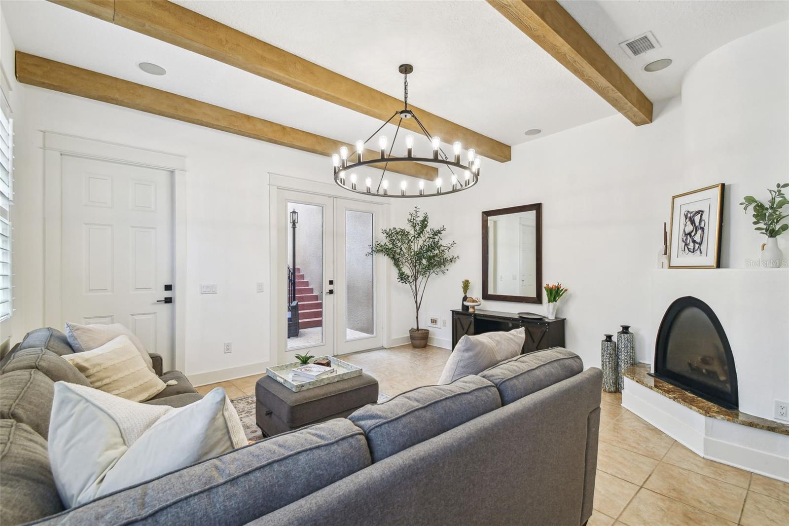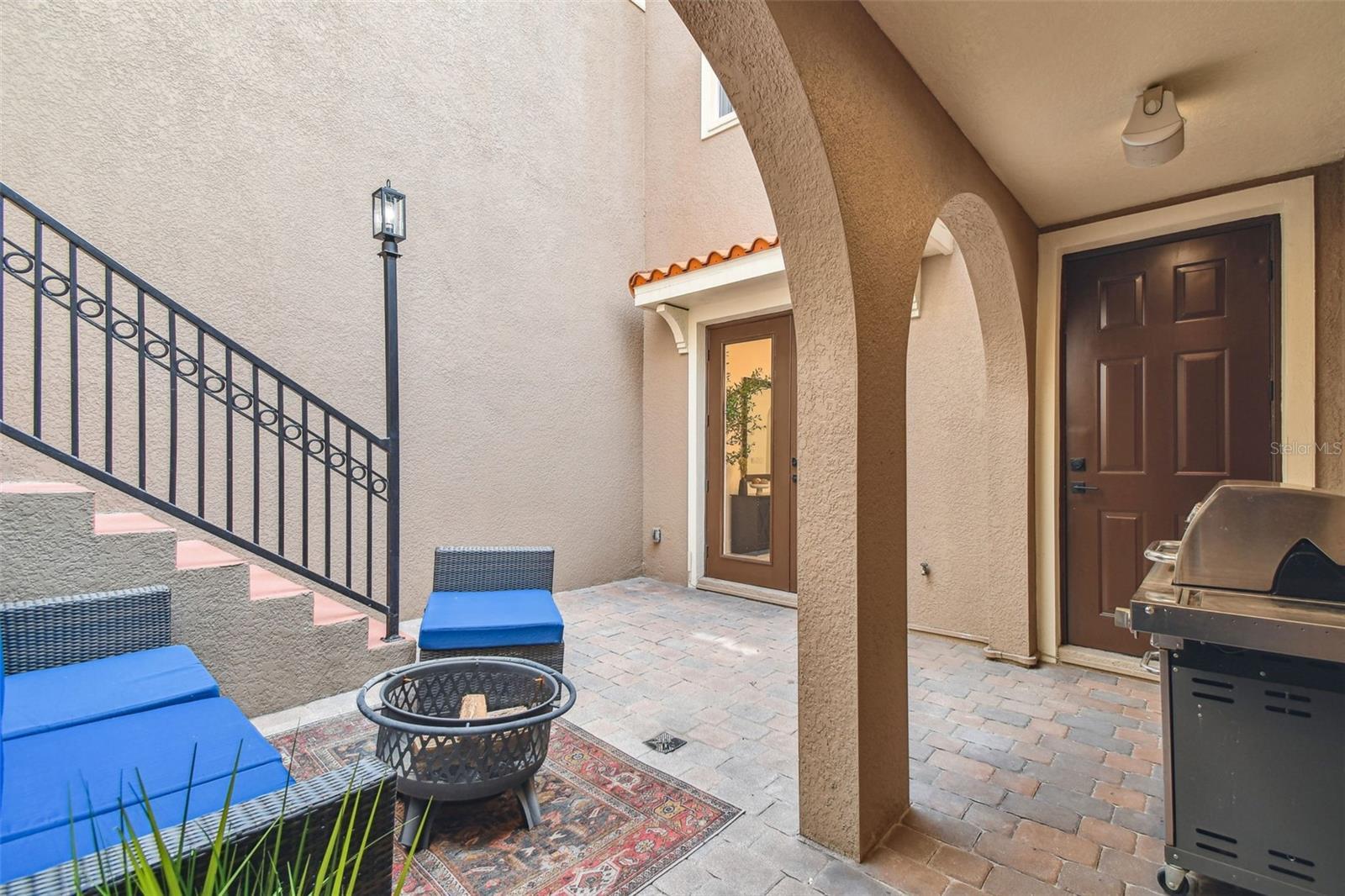 One or more photo(s) has been virtually staged. Experience the BEST of SOUTH TAMPA in this rare Mediterranean-inspired townhome—just steps from the coffee shops, cocktail bars, and boutiques of Hyde Park Village and lively SoHo, all within the coveted Plant High district. Offering a perfect balance of elegance, comfort, and functionality, this home pairs timeless architecture with thoughtful updates. SOLID BLOCK construction on both levels sets the stage for rich details: gleaming engineered hardwood floors, eclectic tile accents, sleek iron-style lighting, plantation shutters, and graceful archways. The chef’s kitchen features granite countertops, stainless steel appliances, a NATURAL GAS COOKTOP, and a breakfast bar that opens seamlessly to the living area. Dramatic exposed ceiling beams and an arched gas fireplace bring old-world warmth, while French doors lead to a Mediterranean-style PRIVATE COURTYARD—perfect for easy indoor/outdoor entertaining. A screened atrium spanning both floors enhances the home’s open, airy feel. Upstairs, the primary suite overlooks the courtyard and offers a spa-like bath with a jetted soaking tub, dual sinks, and a walk-in shower with dual showerheads, plus a spacious walk-in closet. The second bedroom includes built-ins and its own en suite bath. A detached third bedroom/studio with private entrance and full bath adds flexibility for guests, a home gym, multigenerational living, a roommate setup, or a dedicated office. Extras include an oversized one-car garage, 2023 HVAC systems, NO HOA, and FLOOD ZONE X (no flood insurance required). With quick access to I-275, the Selmon Expressway, and Tampa International Airport, you’re minutes from Downtown, Bayshore Boulevard, Water Street, The University of Tampa, and the Gulf beaches. This home isn’t just a place to live—it’s a South Tampa lifestyle...Welcome HOME!!