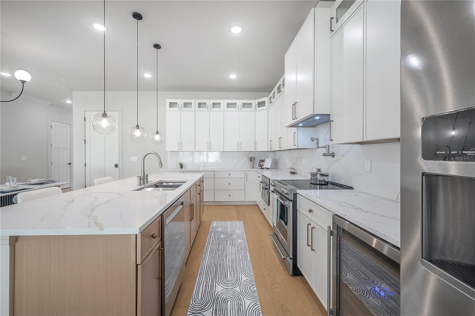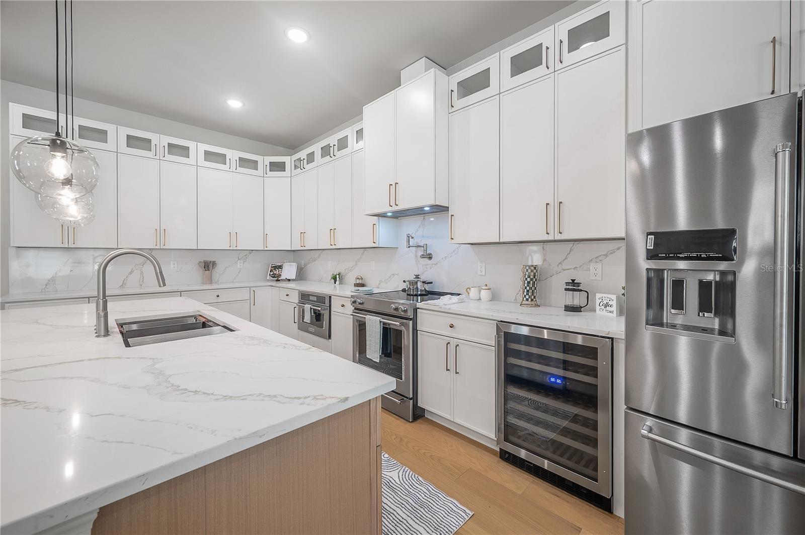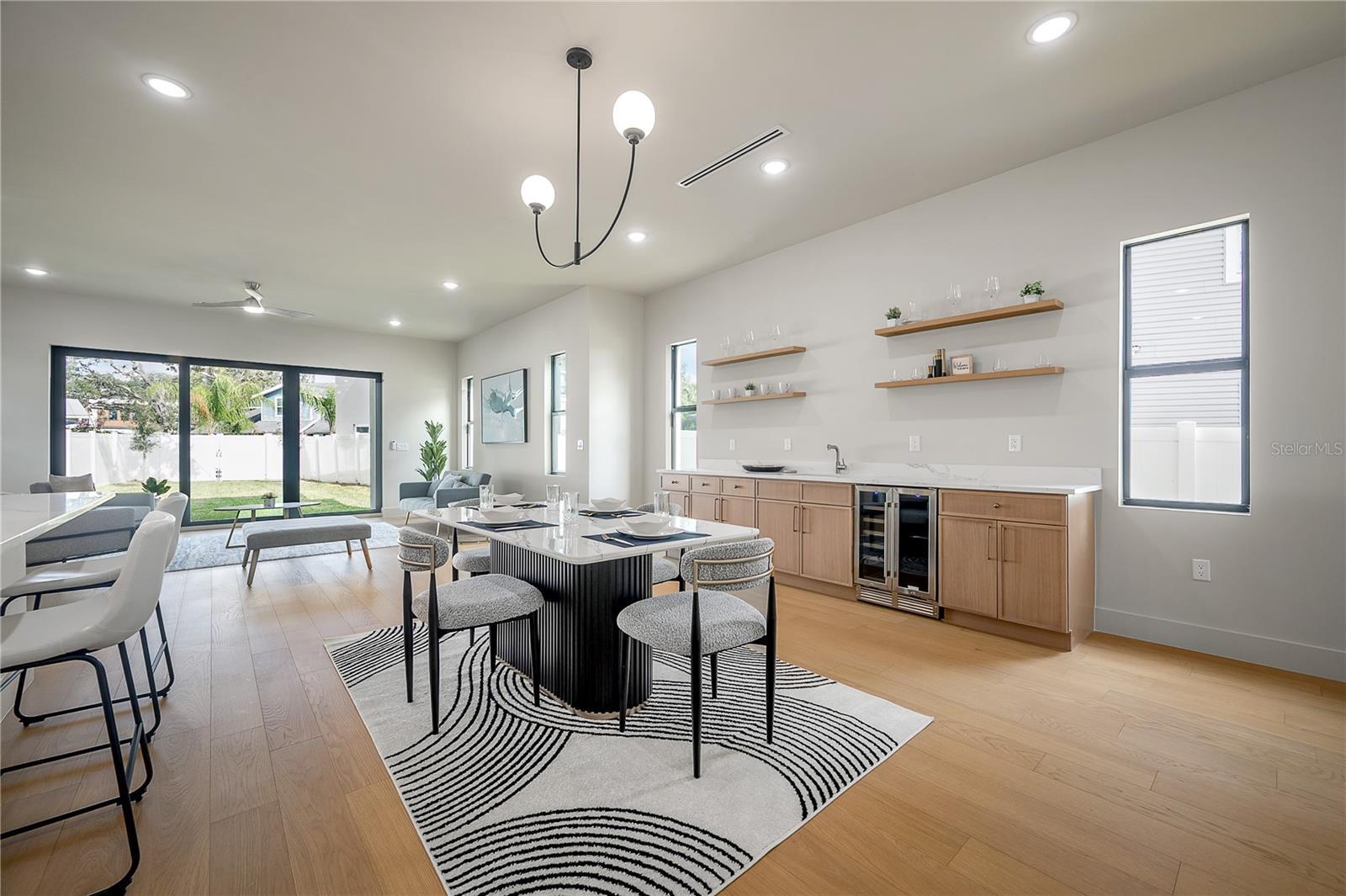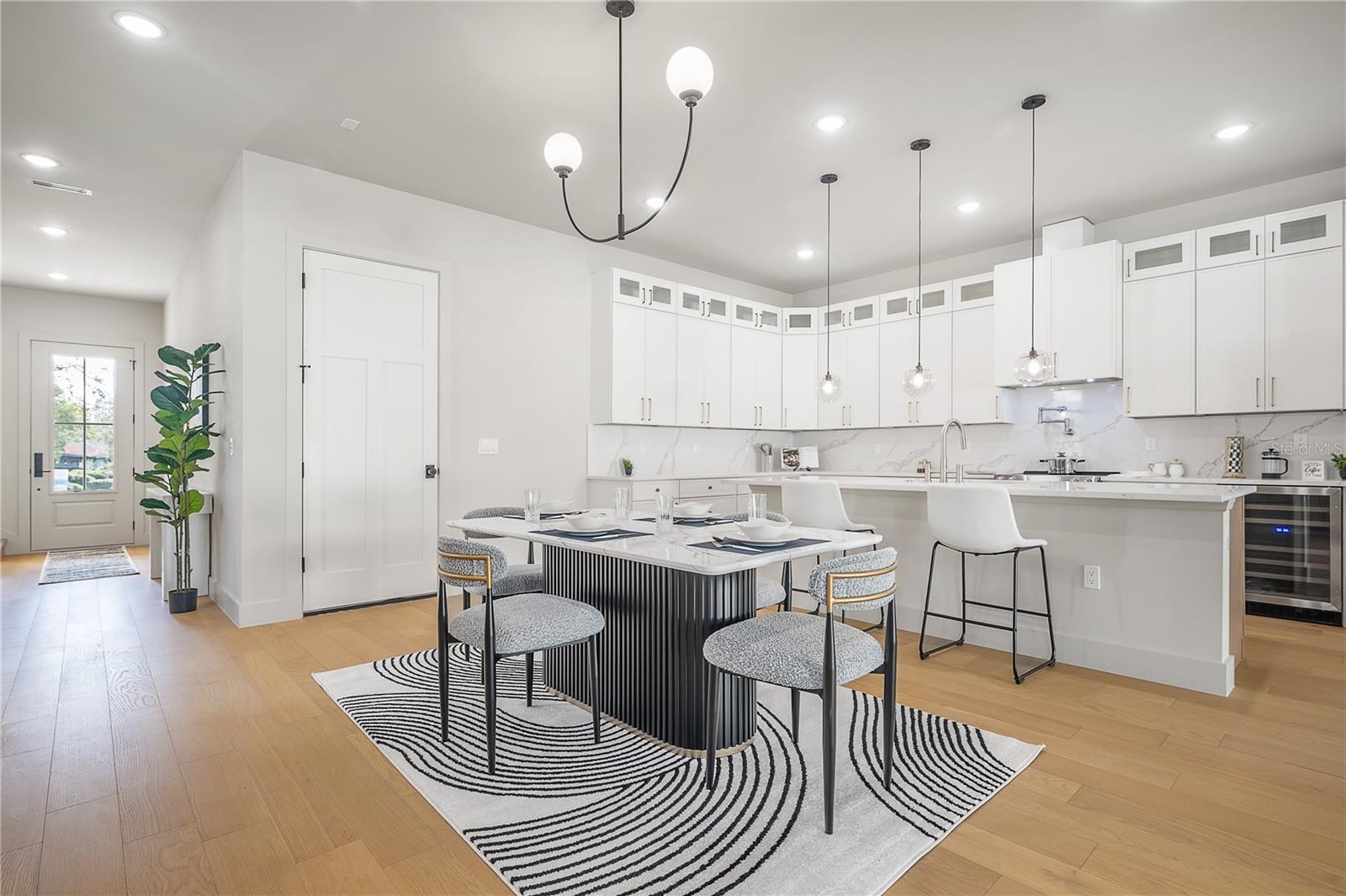 Step into your dream lifestyle with this stunning brand-new construction in the established neighborhood of Ridgewood Park. Just minutes from Downtown Tampa and walkable to Armature Works, this 5-bedroom, 4.5-bath modern masterpiece blends timeless Floridian charm with sleek, contemporary design. From the moment you arrive, the home’s curb appeal captivates with its chic exterior color palette, vibrant landscaping, and stylish balconies. Inside, soft natural light pours across engineered oak hardwood floors, enhancing a curated mix of Benjamin Moore designer hues that set an elegant, welcoming tone throughout. The open-concept main level is designed for both entertaining and daily living, featuring a spacious living area with a striking fireplace and a refined dining space complete with a built-in wet bar. At the heart of it all is a gourmet kitchen that will inspire your inner chef—showcasing custom cabinetry, premium hardware, a built-in beverage fridge, Calacatta Gold quartz countertops, and a massive island perfect for casual dining or weekend hosting. Upstairs, the second floor offers two bedrooms and a full guest bathroom, a full private guest suite, and the showstopping primary suite. This luxe retreat boasts a massive custom walk-in closet and a spa-like en suite with a dual-sink vanity and an enclosed wet room featuring a soaking tub—an everyday escape. Ascend to the third floor, and you’ll find a space made for unforgettable moments. A huge recreation room opens to an expansive rooftop deck with breathtaking views of downtown Tampa, ideal for hosting under the stars or enjoying quiet mornings in the sun. A large bedroom and full bathroom on this level create flexible living options, perfect for guests or multigenerational households. With a thoughtful layout that includes a top-floor laundry room, ample storage throughout, a covered patio, and a two-car garage—all tucked behind a white vinyl privacy fence—this home delivers on every detail. Live moments from Tampa’s best dining, shopping, and entertainment, with quick access to I-275 and top local schools. This is more than a home—it’s your opportunity to live exceptionally. Schedule your showing today!
