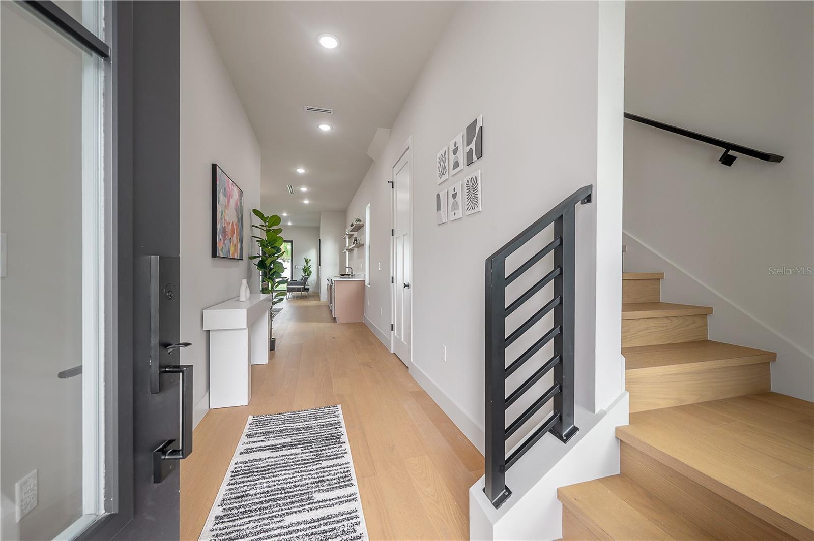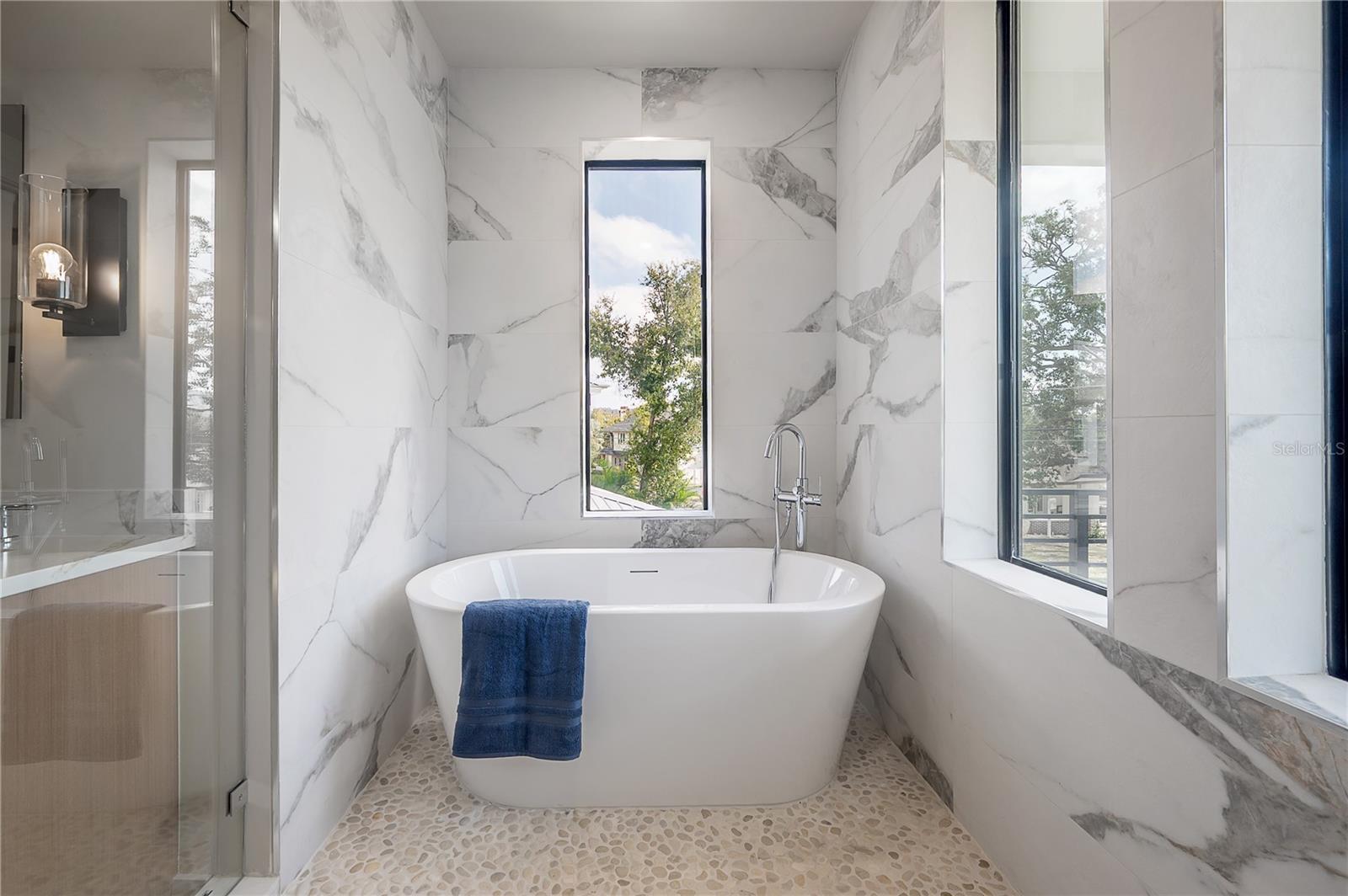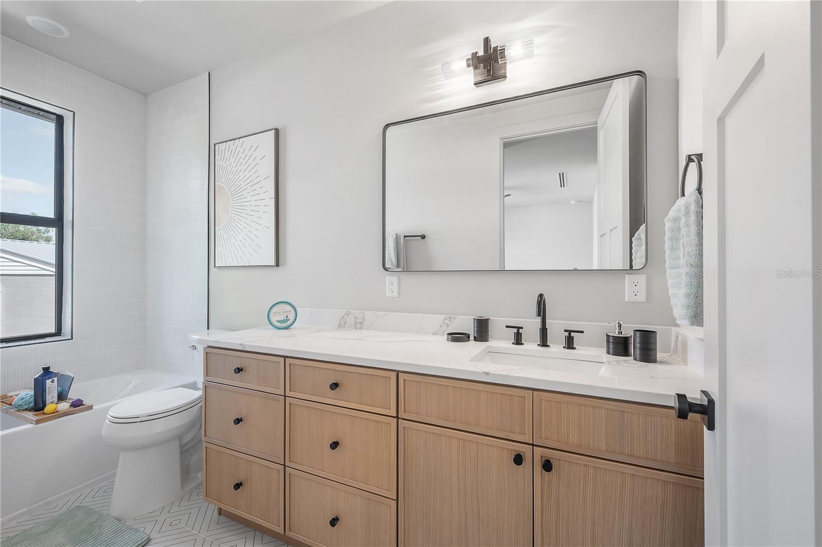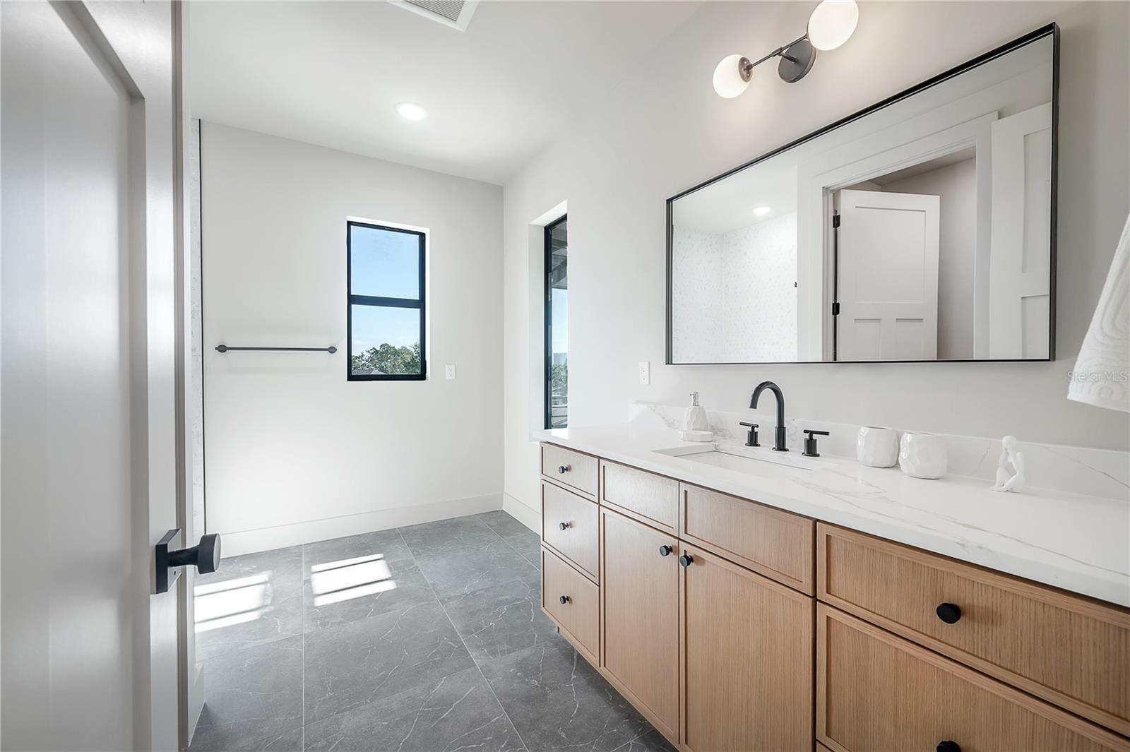 Step into your dream lifestyle with this stunning brand-new construction in the established neighborhood of Ridgewood Park. Just minutes from Downtown Tampa and walkable to Armature Works, this 5-bedroom, 4.5-bath modern masterpiece blends timeless Floridian charm with sleek, contemporary design. From the moment you arrive, the home’s curb appeal captivates with its chic exterior color palette, vibrant landscaping, and stylish balconies. Inside, soft natural light pours across engineered oak hardwood floors, enhancing a curated mix of Benjamin Moore designer hues that set an elegant, welcoming tone throughout. The open-concept main level is designed for both entertaining and daily living, featuring a spacious living area with a striking fireplace and a refined dining space complete with a built-in wet bar. At the heart of it all is a gourmet kitchen that will inspire your inner chef—showcasing custom cabinetry, premium hardware, a built-in beverage fridge, Calacatta Gold quartz countertops, and a massive island perfect for casual dining or weekend hosting. Upstairs, the second floor offers two bedrooms and a full guest bathroom, a full private guest suite, and the showstopping primary suite. This luxe retreat boasts a massive custom walk-in closet and a spa-like en suite with a dual-sink vanity and an enclosed wet room featuring a soaking tub—an everyday escape. Ascend to the third floor, and you’ll find a space made for unforgettable moments. A huge recreation room opens to an expansive rooftop deck with breathtaking views of downtown Tampa, ideal for hosting under the stars or enjoying quiet mornings in the sun. A large bedroom and full bathroom on this level create flexible living options, perfect for guests or multigenerational households. With a thoughtful layout that includes a top-floor laundry room, ample storage throughout, a covered patio, and a two-car garage—all tucked behind a white vinyl privacy fence—this home delivers on every detail. Live moments from Tampa’s best dining, shopping, and entertainment, with quick access to I-275 and top local schools. This is more than a home—it’s your opportunity to live exceptionally. Schedule your showing today!