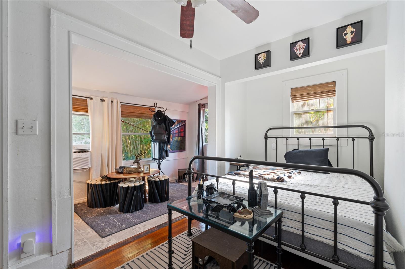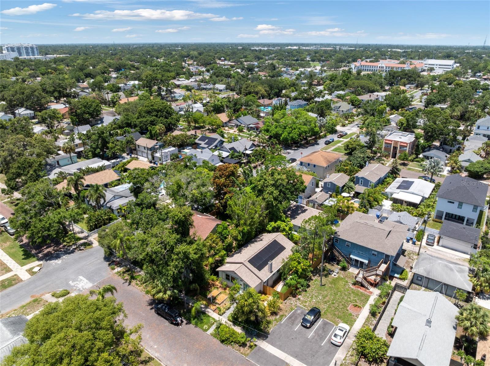 Under contract-accepting backup offers. Welcome to your lush garden oasis in the heart of Historic Kenwood — 2451 2nd Ave N, St. Petersburg. Just two blocks from vibrant Central Avenue, this 1920s bungalow blends timeless character with smart updates. Inside the main home, you’ll find 2 bedrooms, 1.5 baths, original hardwood floors, exposed beam ceilings, Spanish-knife textured walls, a cozy fireplace, and solid wood cabinetry. The spacious primary suite offers a walk-in closet, private half bath, and large picture window with garden views. Recent upgrades bring peace of mind — NEW roof (2024), impact windows (2022), paid-off solar panels (2022), and a transferable foundation warranty (2025).Step outside to your private, tree-canopied backyard, ideal for morning coffee or evening gatherings. Behind the main home sits a detached 2-bedroom, 2-bath apartment with a separate electric meter, alley access, and its own NEW roof (2024) — a perfect income-producing opportunity or guest space. The apartment features updated bathrooms (2023), a mix of original and laminate wood flooring, and two new window units with heat (2024). Bonus spaces include 480 sq ft of flex space plus a garage/workshop — ideal for storage, hobbies, or creative projects.Live in the front and rent the back, or maximize your income with two rentals. Enjoy a walkable, vibrant lifestyle close to downtown St. Pete’s dining, arts, and beaches!