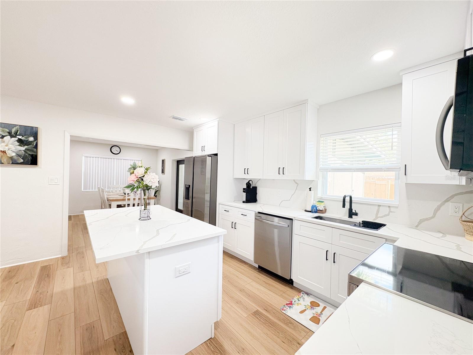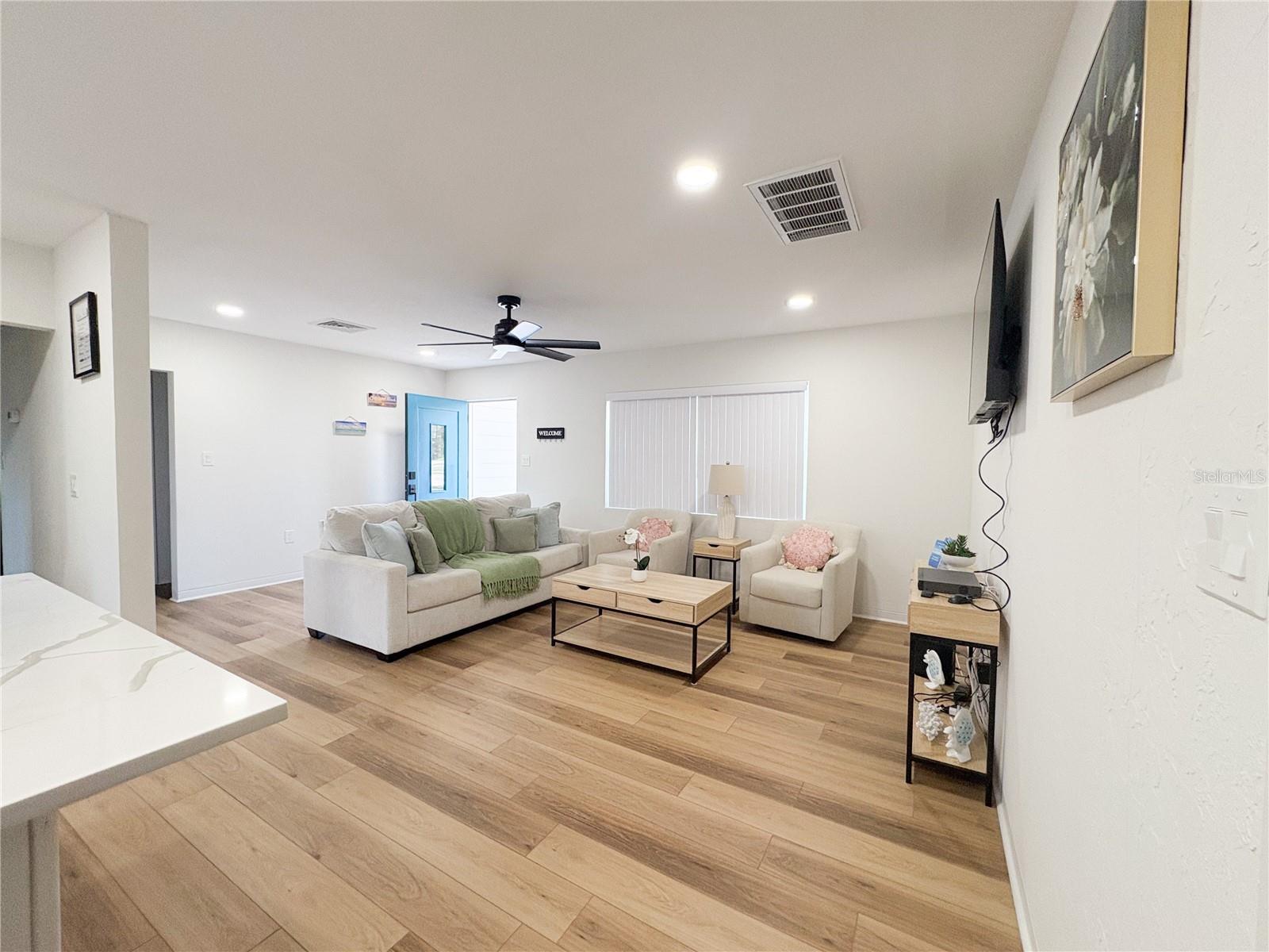 - Ceiling Fans(s), Eat-in Kitchen, Open Floorplan, Solid Surface Counters, Solid Wood Cabinets, Stone Counters, Thermostat, Window Treatments