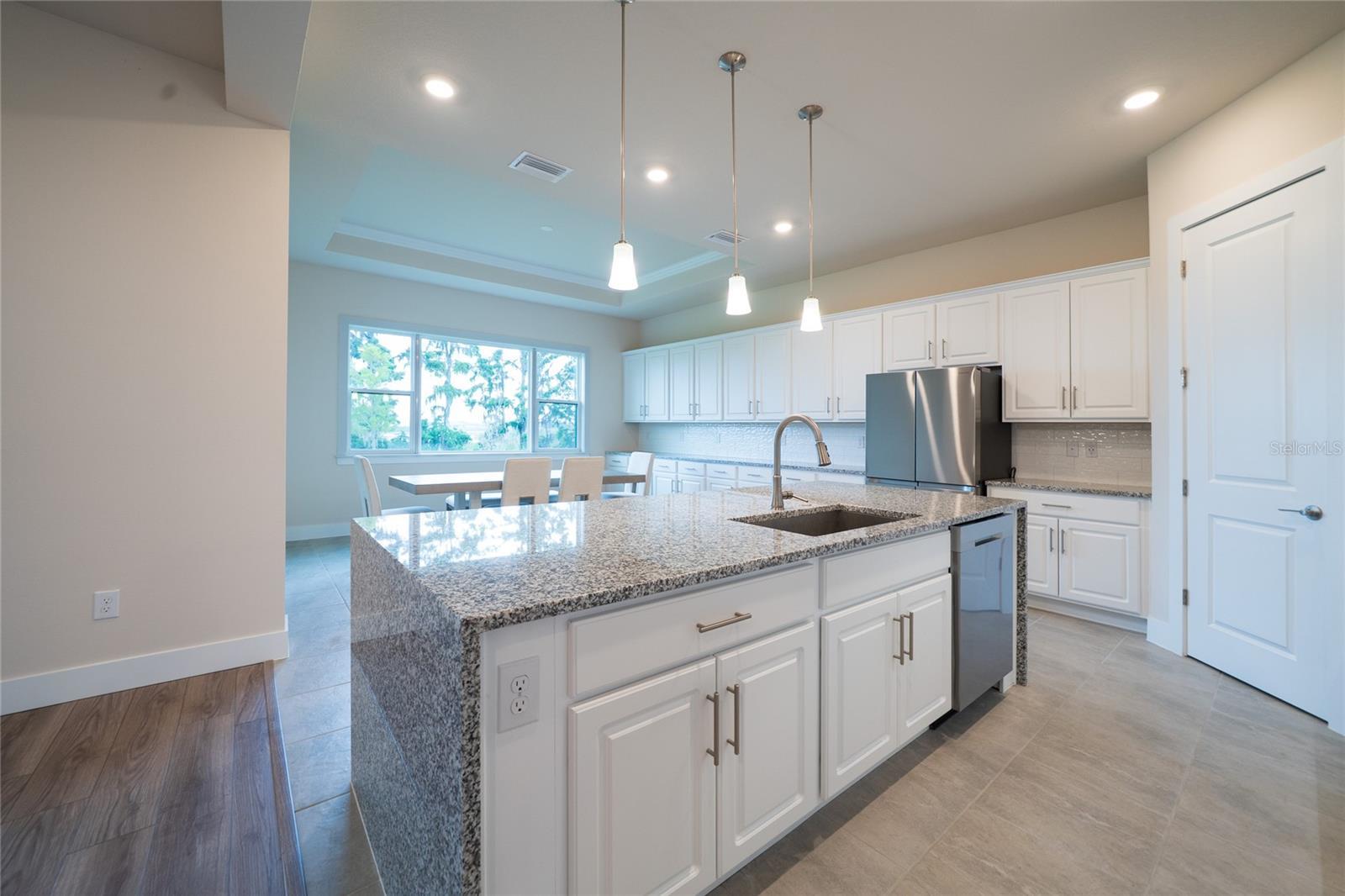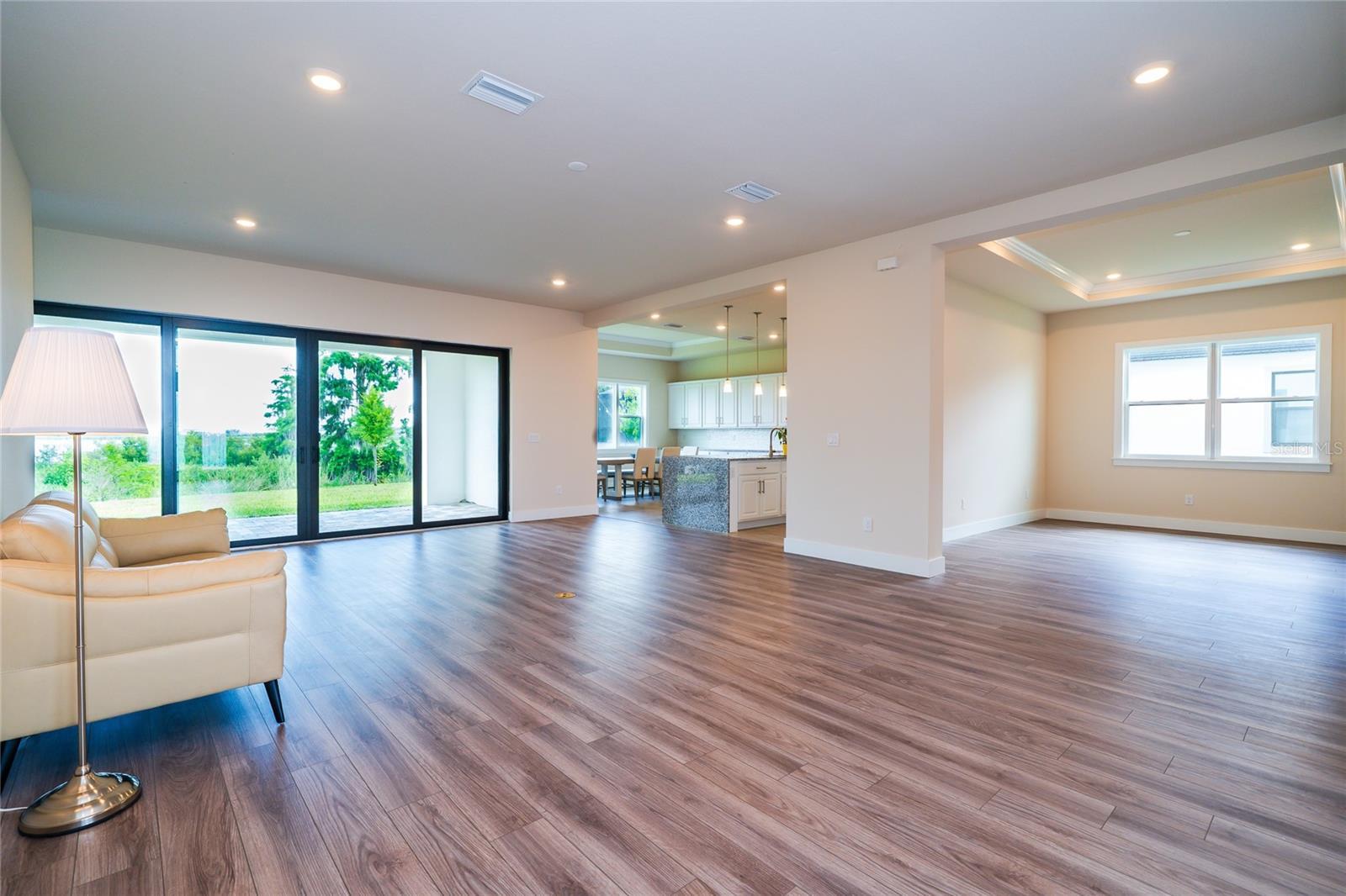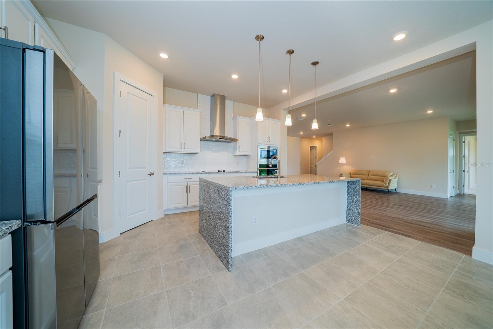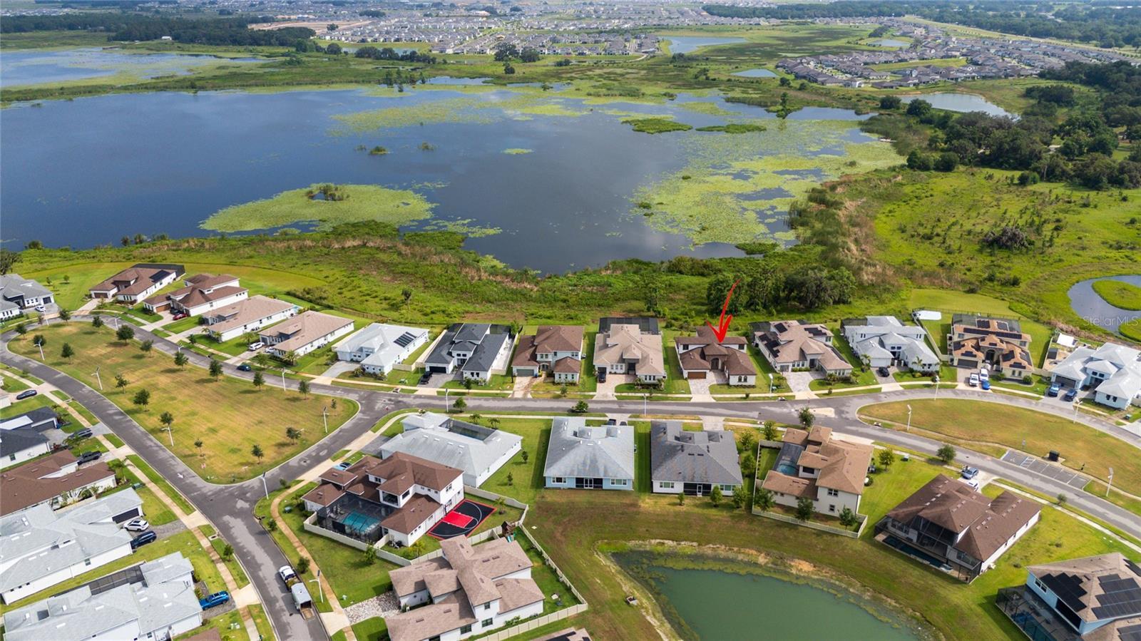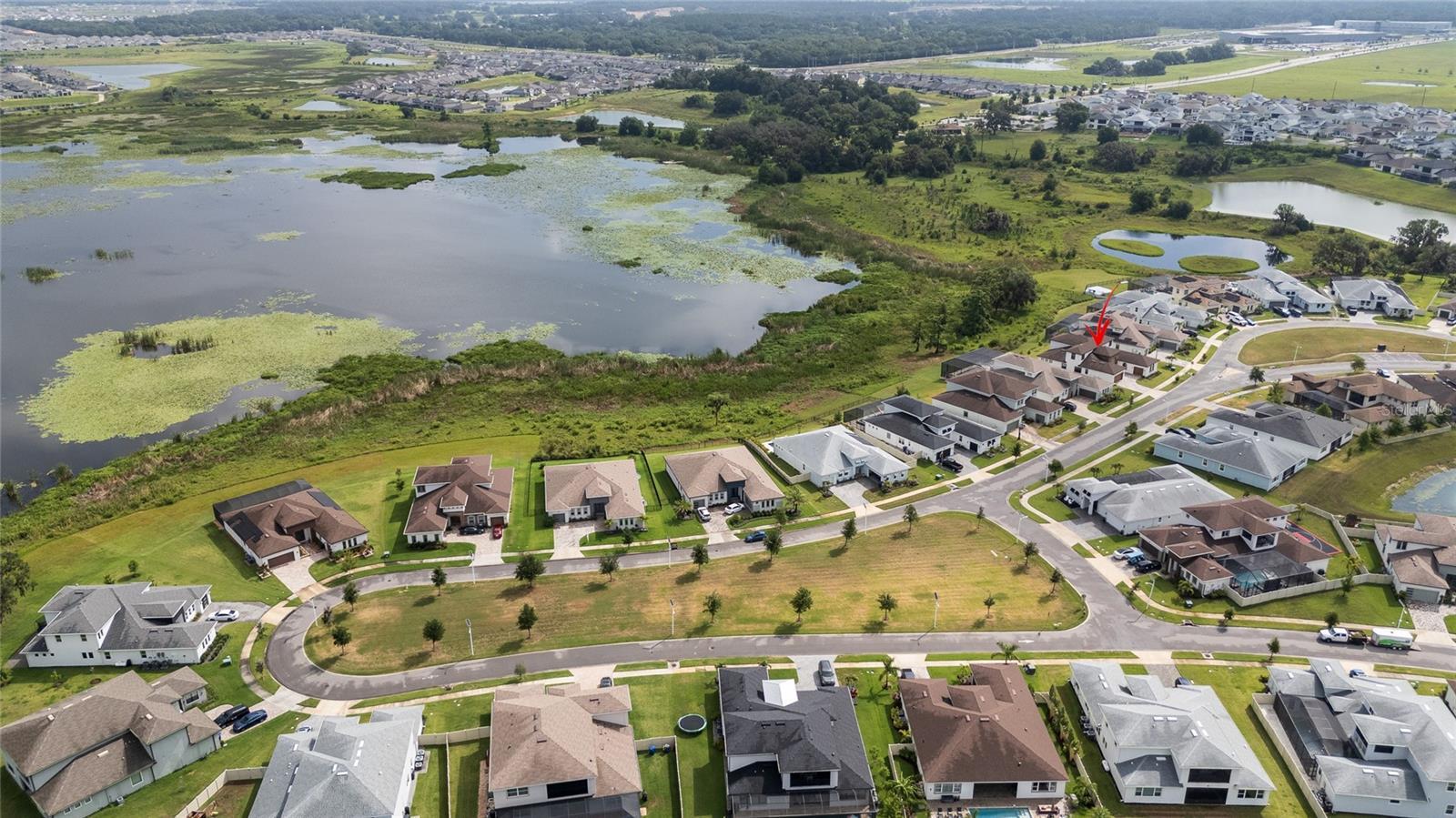 Stunning five-bedroom, four-bathroom split three car garage Sabal III model Biscayne home situated in the gated King Lake Estate in the Epperson community, backing up to conservation with gorgeous mature trees and a serene water view. The minute you open the front door, you’re greeted by a breathtaking scenic view of nature through the four-panel sliding glass door. The open-concept layout draws you into the heart of the home, where the living room flows effortlessly into a formal dining room and the show-stopping gourmet kitchen with a spacious breakfast area. The kitchen is a chef’s dream—equipped with a center island, sleek stainless-steel appliances, a wall oven, smooth cooktop, modern stainless hood, and a wall of built-in cabinetry. Once again, you’re treated to stunning views of the peaceful water and lush conservation area just beyond your windows. Off the living area, the primary suite invites you in with tranquil views, a tray ceiling, and a luxurious en-suite bathroom featuring dual vanities and two walk-in closets. The thoughtful split floor plan continues with an “in-law” suite on the main floor, complete with its own en-suite bathroom, walk-in closet, and a flex room that can serve as a home office or additional living room—with direct access to a private one-car garage. A third main floor bedroom, also with an en-suite bath and walk-in closet, offers even more flexible living options for multi-generational households or visiting guests. Two extra storage rooms on the main floor add valuable practicality to the home. Step out onto the covered, paved patio and take in the serene beauty of your backyard, where water and lush conservation views ensure no rear neighbors—just pure Florida tranquility. Upstairs, a spacious loft—ideal as a game room, exercise area, or media room—is flanked by two additional bedrooms and a full bath. From the loft, step out onto a large private balcony and savor the breeze, the view, and the lifestyle only Florida can offer. Beyond the home, you are part of the exclusive Epperson community, home to A+ rated schools and top-tier magnet programs, including the innovative Kirkland Ranch Academy. As a resident, enjoy high-speed internet, upgraded cable, and access to the incredible Crystal Lagoon: over 7 acres of crystal-clear water with a swim-up bar, kayaking, paddleboarding, beach access, cabanas, volleyball courts, live music events, and community golf cart parades. Conveniently located near shopping, dining, and just 35 minutes from Tampa International Airport, this home is more than a place to live—it’s a lifestyle. Schedule your private showing today