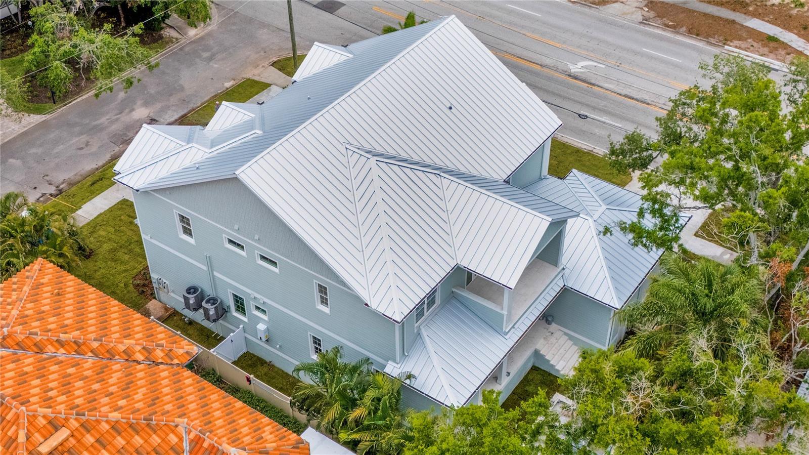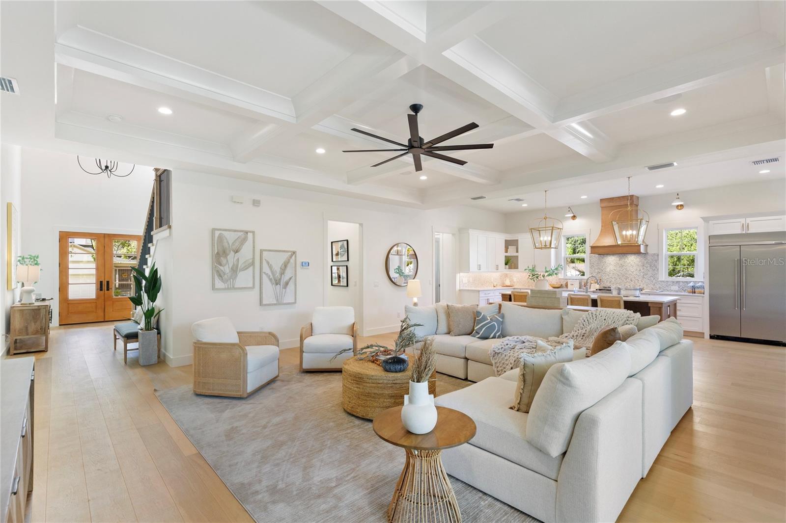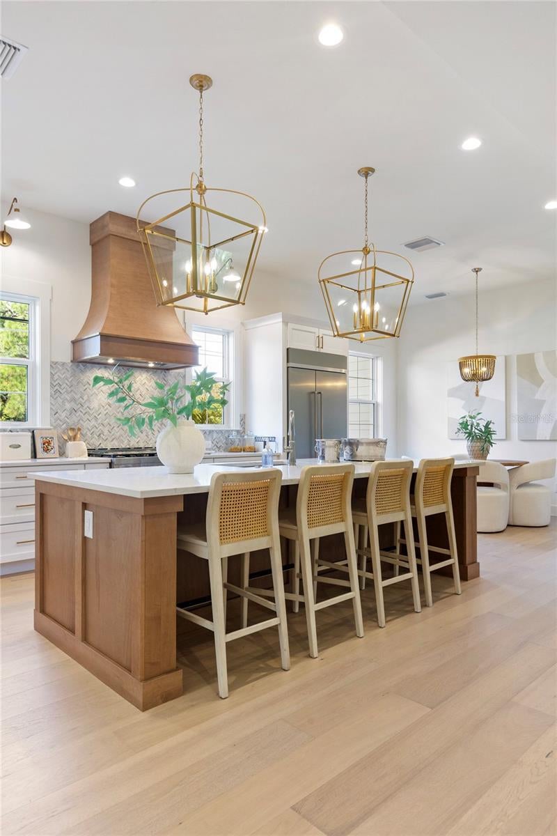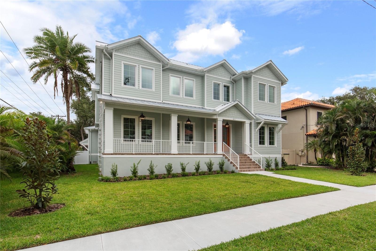 NOW COMPLETE AND MOVE-IN READY! This one-of-a-kind two-story block construction residence by Southerlyn Homes delivers nearly 5,000 sq. ft. of refined living space with 5 bedrooms and 6 baths, set on an oversized 75x120 corner lot in the heart of prestigious Virginia Park. Built well beyond code with an elevated foundation, standing seam metal roof, Hardie siding, impact-rated windows/doors, and a sealed building envelope with mechanical ventilation, the home is designed for timeless curb appeal and lasting durability. Southerlyn Homes never builds the same house twice, and this custom plan showcases bespoke architectural details and thoughtful spaces throughout—making it unlike any other new construction home on the market. Representing one of the best new construction values in South Tampa, this residence combines architectural distinction, advanced construction, and thoughtful design in a way rarely found at this price point. Mature landscaping, a new privacy fence along Manhattan, and an extended rear fence create a secluded setting while expanding the usable backyard. Inside, 10-ft ceilings, 8-ft solid-core doors, wide-plank white oak flooring, and abundant natural light set an elegant tone. The chef’s kitchen features an oversized island, quartz counters, premium KitchenAid appliances including a 42” built-in refrigerator and 36” gas range, a walk-in pantry, and a butler’s pantry with wet bar and wine fridge. The open living area flows seamlessly outdoors to a covered lanai with summer kitchen, overlooking a fully automated saltwater pool and spa with heat/cool, sun shelf, LED lighting, and a newly completed shell-stone pool deck, complemented by a dedicated pool bath. The first-floor primary suite includes a spa-inspired bath with soaking tub, dual rain-head walk-through shower, dual vanities with makeup counter, and dual custom closets with built-ins and stacked washer/dryer hookup. Upstairs are four additional bedrooms—including two guest suites with private baths and a Jack-and-Jill—plus a large media/bonus room with full wet bar and beverage/wine cooler, and an oversized laundry room with extensive cabinetry. Additional upgrades include dual HVAC systems with UV purification, 400-amp electrical service, tankless gas water heaters, LED ambient/under-cabinet lighting, a 2-car garage with soaring ceiling and Wi-Fi opener, and a fully integrated smart-home system with security panels, surround-sound pre-wire, multiple speaker zones, Cat6 wiring, fiber internet, and hardwired Eero Wi-Fi. All closets are finished with custom built-ins, and the exterior includes zoned irrigation and underground electric for a clean streetscape. Walkable to shops and dining with effortless access to downtown, TGH, Westshore, International Plaza, and TPA, and zoned for Mabry, Coleman, and Plant schools, this Southerlyn Homes signature design delivers unmatched craftsmanship and a rare opportunity to own luxury re-imagined, never repeated—at a price point that makes it one of South Tampa’s best values today.