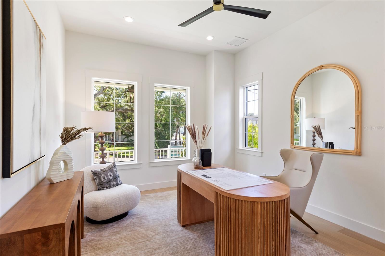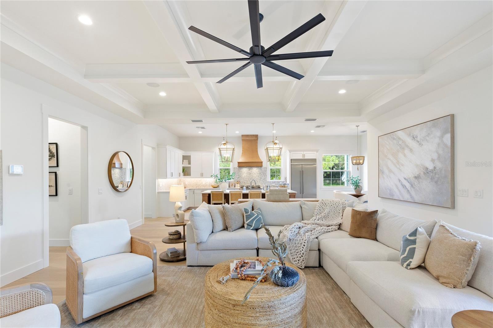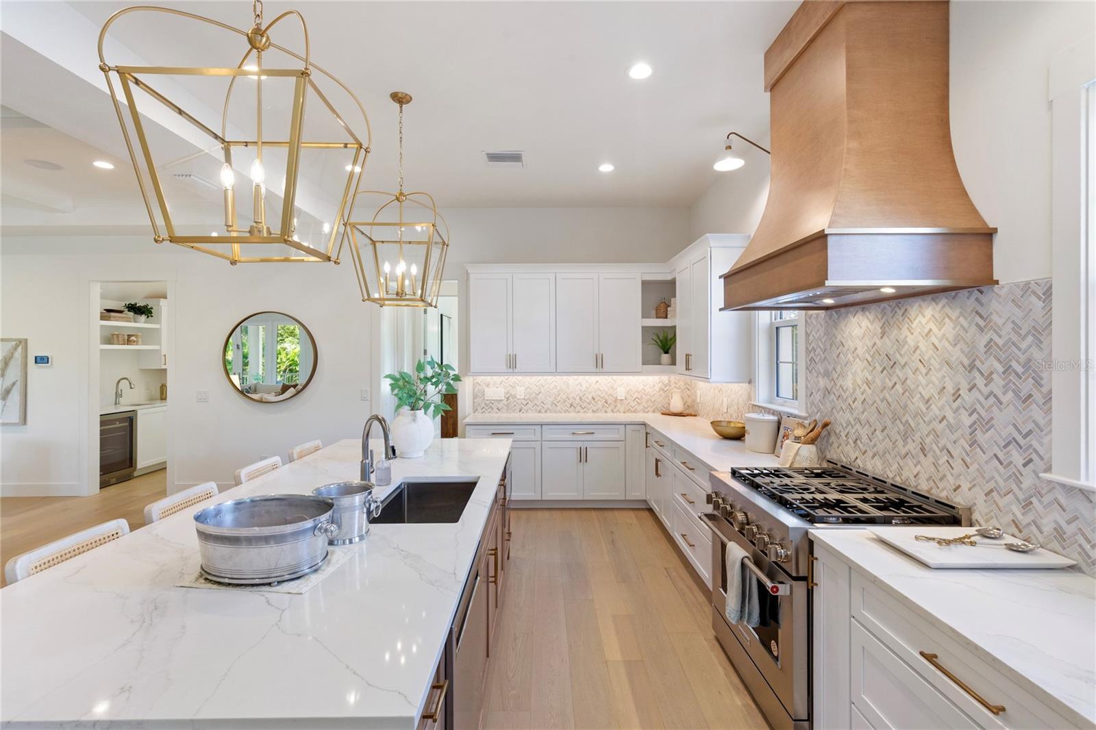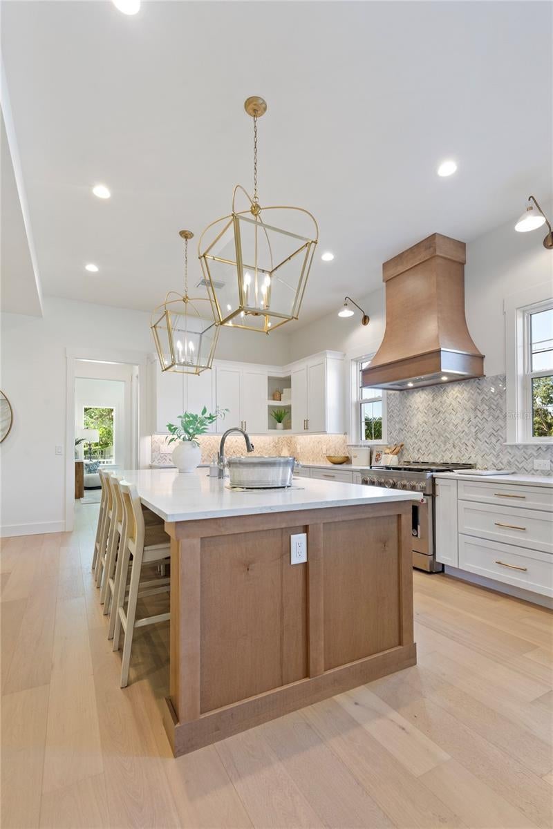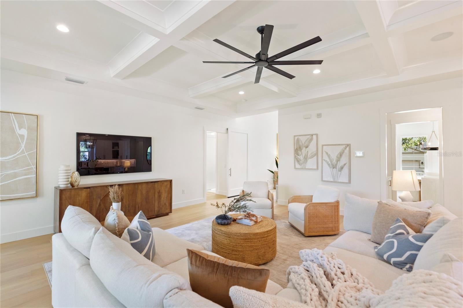 NOW COMPLETE AND MOVE-IN READY! This one-of-a-kind two-story block construction residence by Southerlyn Homes delivers nearly 5,000 sq. ft. of refined living space with 5 bedrooms and 6 baths, set on an oversized 75x120 corner lot in the heart of prestigious Virginia Park. Built well beyond code with an elevated foundation, standing seam metal roof, Hardie siding, impact-rated windows/doors, and a sealed building envelope with mechanical ventilation, the home is designed for timeless curb appeal and lasting durability. Southerlyn Homes never builds the same house twice, and this custom plan showcases bespoke architectural details and thoughtful spaces throughout—making it unlike any other new construction home on the market. Representing one of the best new construction values in South Tampa, this residence combines architectural distinction, advanced construction, and thoughtful design in a way rarely found at this price point. Mature landscaping, a new privacy fence along Manhattan, and an extended rear fence create a secluded setting while expanding the usable backyard. Inside, 10-ft ceilings, 8-ft solid-core doors, wide-plank white oak flooring, and abundant natural light set an elegant tone. The chef’s kitchen features an oversized island, quartz counters, premium KitchenAid appliances including a 42” built-in refrigerator and 36” gas range, a walk-in pantry, and a butler’s pantry with wet bar and wine fridge. The open living area flows seamlessly outdoors to a covered lanai with summer kitchen, overlooking a fully automated saltwater pool and spa with heat/cool, sun shelf, LED lighting, and a newly completed shell-stone pool deck, complemented by a dedicated pool bath. The first-floor primary suite includes a spa-inspired bath with soaking tub, dual rain-head walk-through shower, dual vanities with makeup counter, and dual custom closets with built-ins and stacked washer/dryer hookup. Upstairs are four additional bedrooms—including two guest suites with private baths and a Jack-and-Jill—plus a large media/bonus room with full wet bar and beverage/wine cooler, and an oversized laundry room with extensive cabinetry. Additional upgrades include dual HVAC systems with UV purification, 400-amp electrical service, tankless gas water heaters, LED ambient/under-cabinet lighting, a 2-car garage with soaring ceiling and Wi-Fi opener, and a fully integrated smart-home system with security panels, surround-sound pre-wire, multiple speaker zones, Cat6 wiring, fiber internet, and hardwired Eero Wi-Fi. All closets are finished with custom built-ins, and the exterior includes zoned irrigation and underground electric for a clean streetscape. Walkable to shops and dining with effortless access to downtown, TGH, Westshore, International Plaza, and TPA, and zoned for Mabry, Coleman, and Plant schools, this Southerlyn Homes signature design delivers unmatched craftsmanship and a rare opportunity to own luxury re-imagined, never repeated—at a price point that makes it one of South Tampa’s best values today.