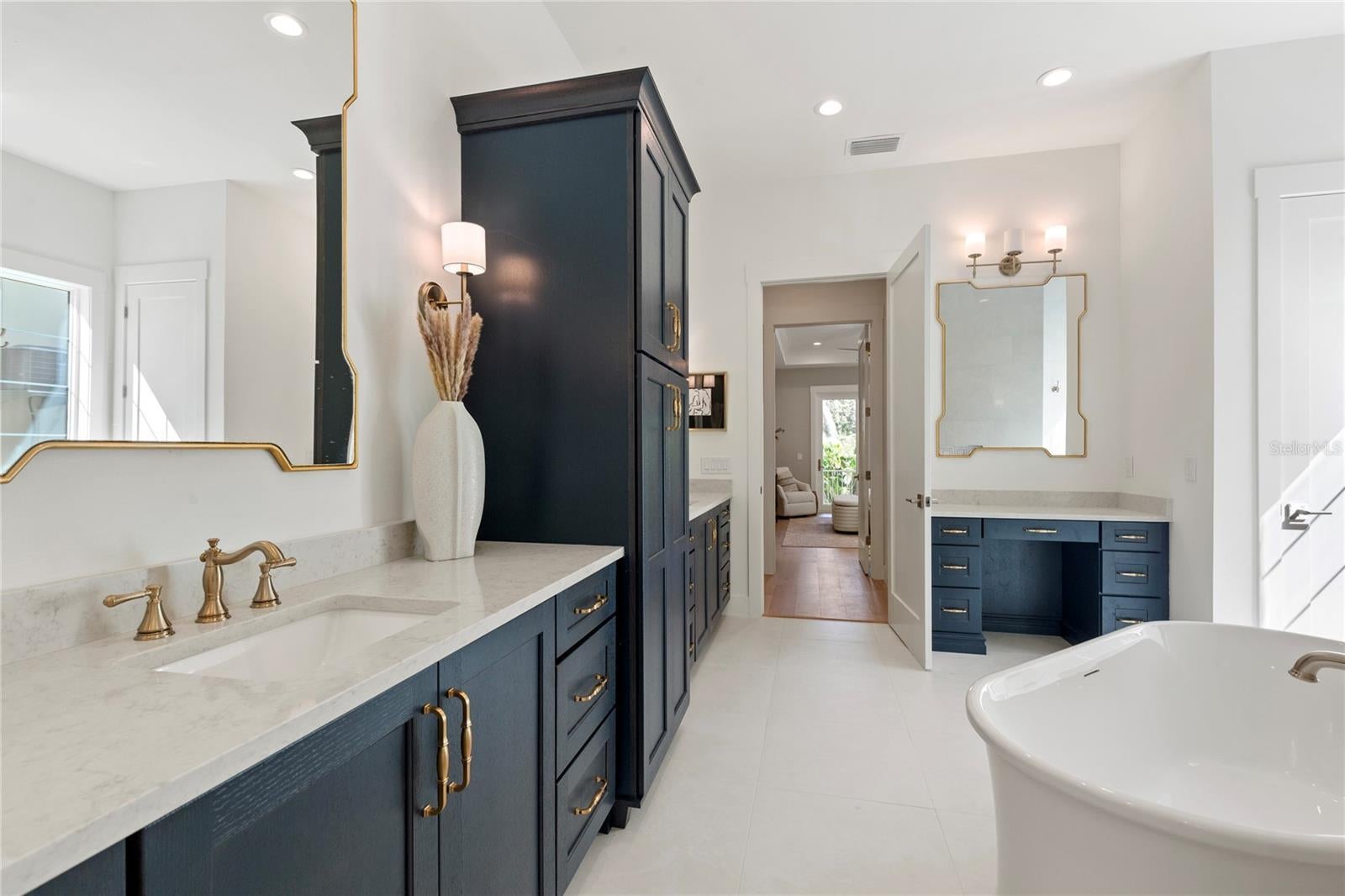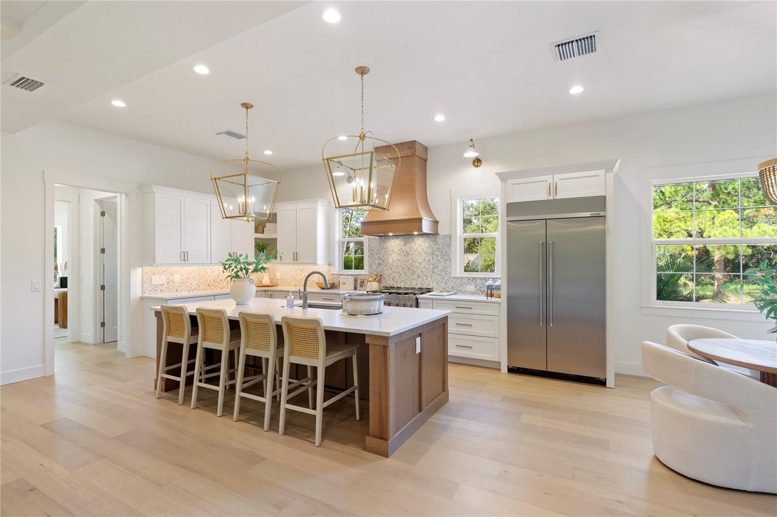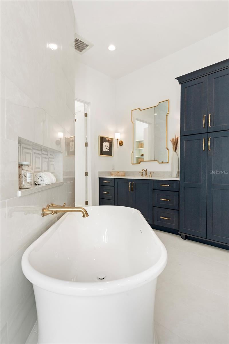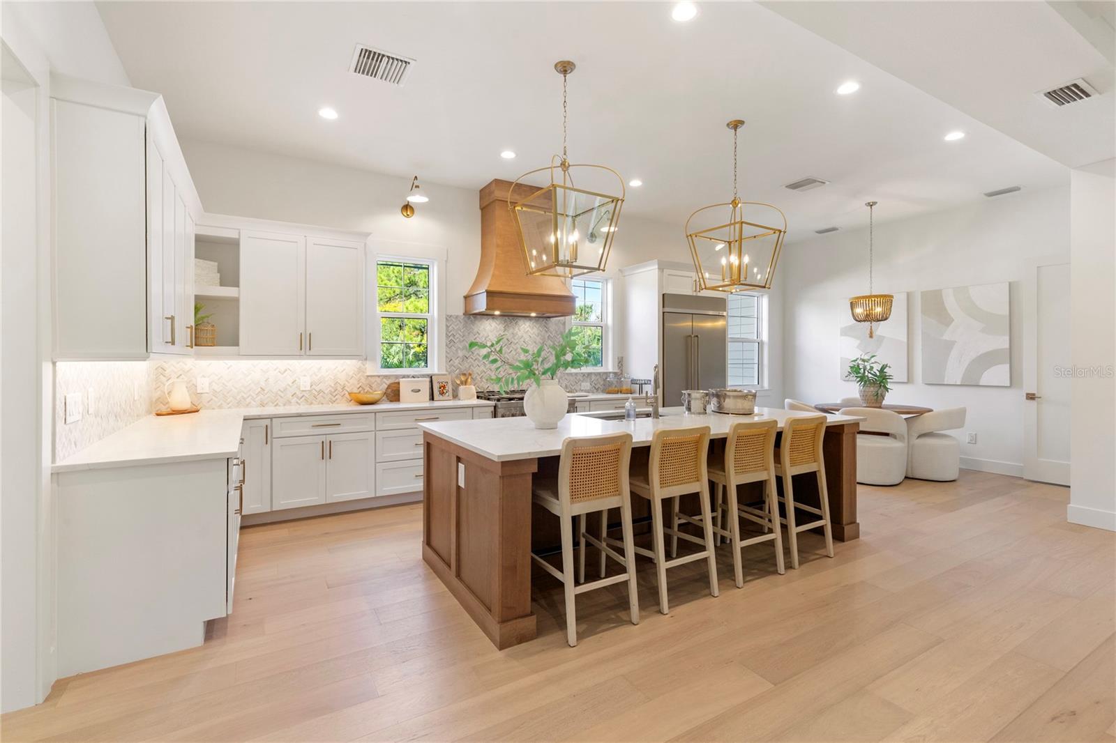 NOW COMPLETE AND MOVE-IN READY! This one-of-a-kind two-story block construction residence by Southerlyn Homes delivers nearly 5,000 sq. ft. of refined living space with 5 bedrooms and 6 baths, set on an oversized 75x120 corner lot in the heart of prestigious Virginia Park. Built well beyond code with an elevated foundation, standing seam metal roof, Hardie siding, impact-rated windows/doors, and a sealed building envelope with mechanical ventilation, the home is designed for timeless curb appeal and lasting durability. Southerlyn Homes never builds the same house twice, and this custom plan showcases bespoke architectural details and thoughtful spaces throughout—making it unlike any other new construction home on the market. Representing one of the best new construction values in South Tampa, this residence combines architectural distinction, advanced construction, and thoughtful design in a way rarely found at this price point. Mature landscaping, a new privacy fence along Manhattan, and an extended rear fence create a secluded setting while expanding the usable backyard. Inside, 10-ft ceilings, 8-ft solid-core doors, wide-plank white oak flooring, and abundant natural light set an elegant tone. The chef’s kitchen features an oversized island, quartz counters, premium KitchenAid appliances including a 42” built-in refrigerator and 36” gas range, a walk-in pantry, and a butler’s pantry with wet bar and wine fridge. The open living area flows seamlessly outdoors to a covered lanai with summer kitchen, overlooking a fully automated saltwater pool and spa with heat/cool, sun shelf, LED lighting, and a newly completed shell-stone pool deck, complemented by a dedicated pool bath. The first-floor primary suite includes a spa-inspired bath with soaking tub, dual rain-head walk-through shower, dual vanities with makeup counter, and dual custom closets with built-ins and stacked washer/dryer hookup. Upstairs are four additional bedrooms—including two guest suites with private baths and a Jack-and-Jill—plus a large media/bonus room with full wet bar and beverage/wine cooler, and an oversized laundry room with extensive cabinetry. Additional upgrades include dual HVAC systems with UV purification, 400-amp electrical service, tankless gas water heaters, LED ambient/under-cabinet lighting, a 2-car garage with soaring ceiling and Wi-Fi opener, and a fully integrated smart-home system with security panels, surround-sound pre-wire, multiple speaker zones, Cat6 wiring, fiber internet, and hardwired Eero Wi-Fi. All closets are finished with custom built-ins, and the exterior includes zoned irrigation and underground electric for a clean streetscape. Walkable to shops and dining with effortless access to downtown, TGH, Westshore, International Plaza, and TPA, and zoned for Mabry, Coleman, and Plant schools, this Southerlyn Homes signature design delivers unmatched craftsmanship and a rare opportunity to own luxury re-imagined, never repeated—at a price point that makes it one of South Tampa’s best values today.