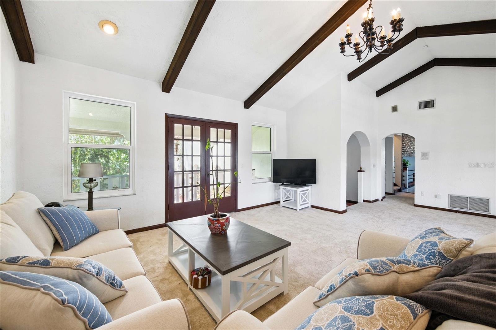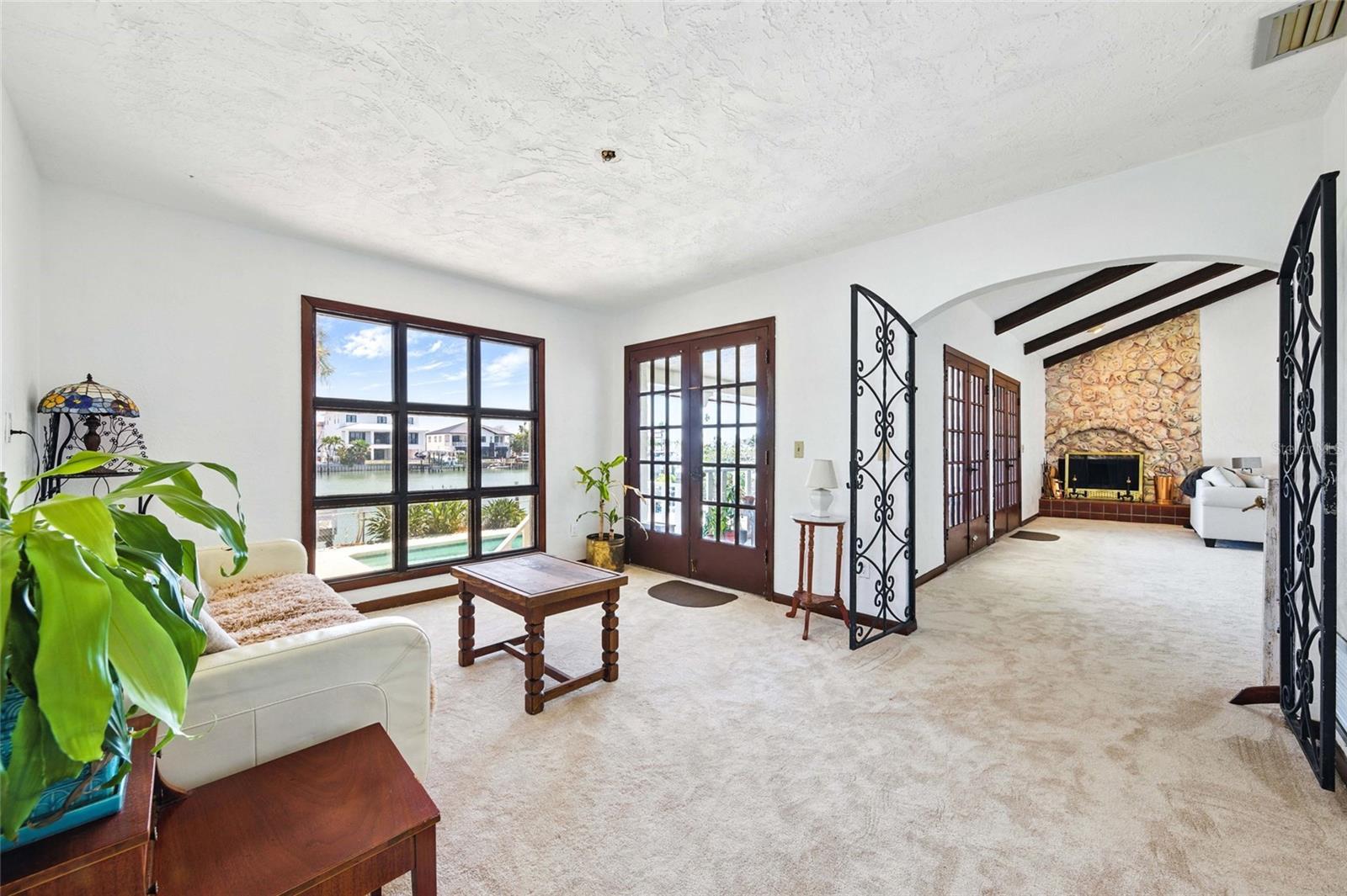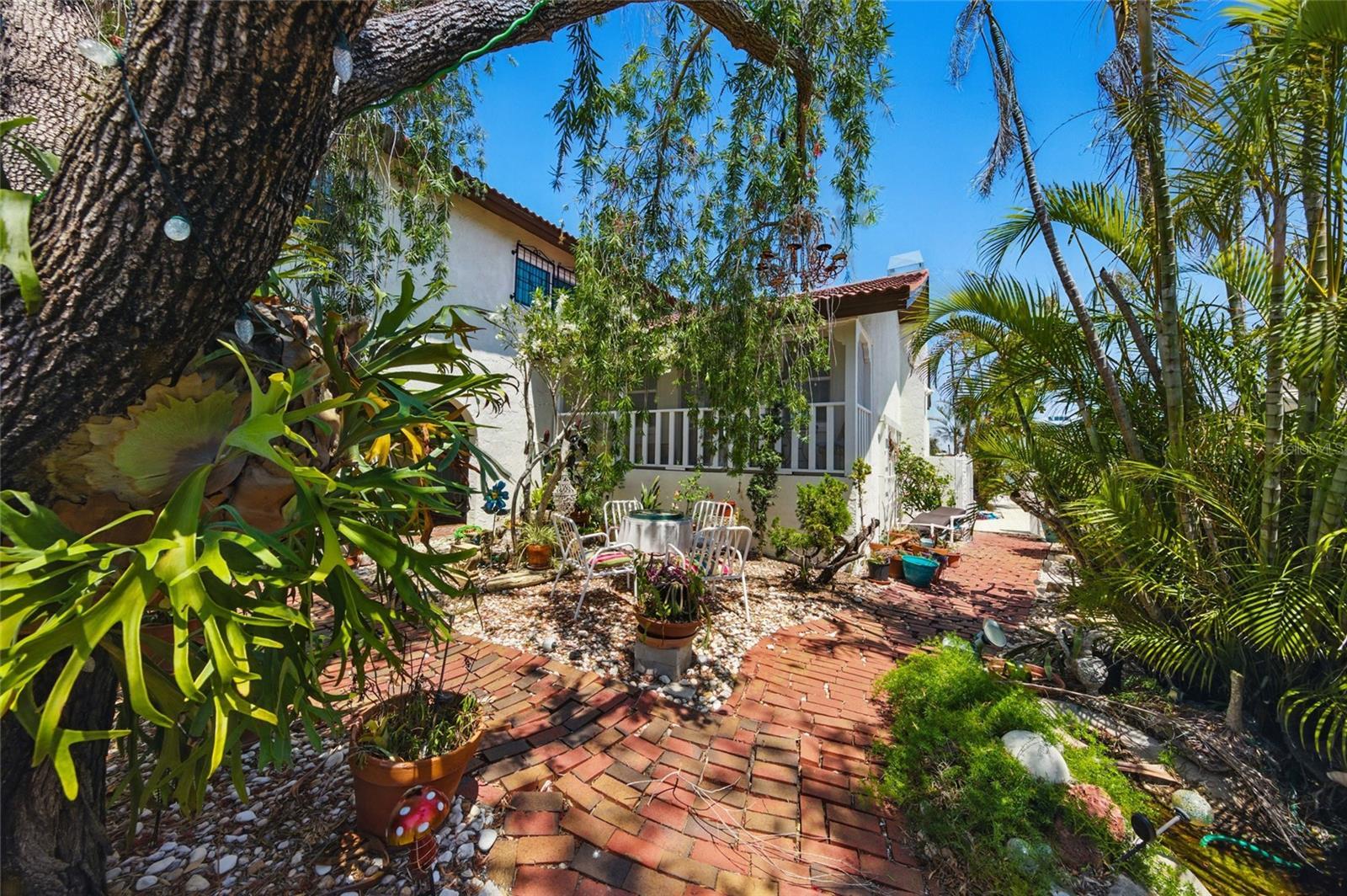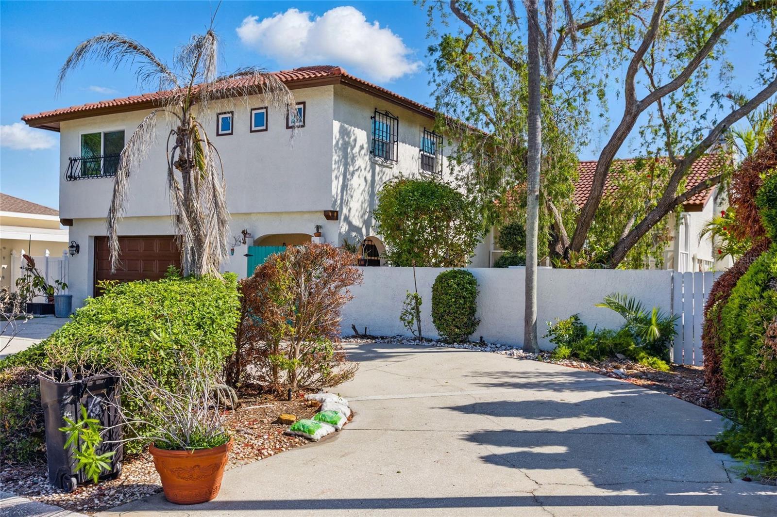 Waterfront living at its finest in Treasure Island's desirable Isle of Palms neighborhood! This spacious 4-bedroom, 3-bathroom home offers 2,670 square feet of living space across three levels, with stunning views of Boca Ciega Bay and 70 feet of waterfront, perfect for boating, paddleboarding, or relaxing in your own backyard oasis. The second floor features a generous living room and tile-floor kitchen, while the top floor includes a private primary suite with walk-in closet and en-suite bath. A charming brick-paved courtyard surrounded by lush tropical landscaping provides a tranquil outdoor retreat ideal for morning coffee or evening gatherings. Located on a large 8,400+ sq ft lot in RU-75 zoning. Enjoy coastal charm just minutes from Gulf beaches, shops, and dining. Please verify lease restrictions with the City of Treasure Island.
