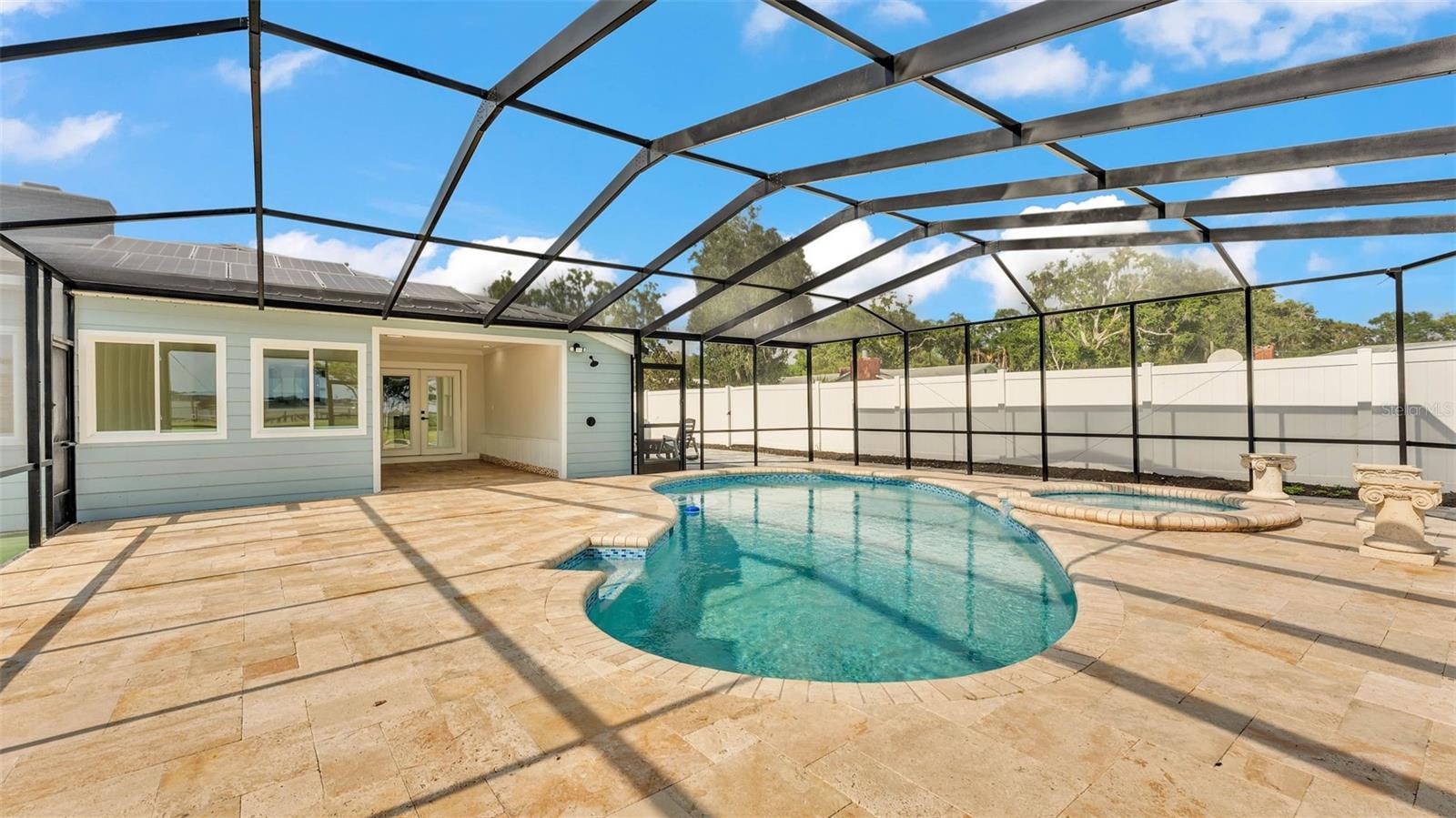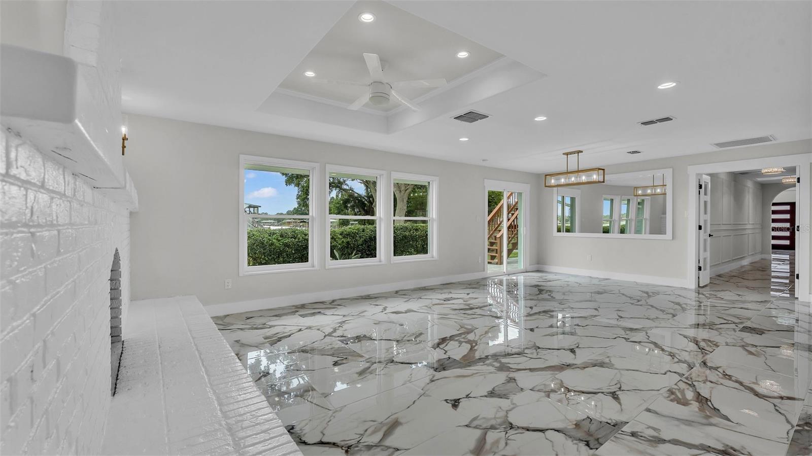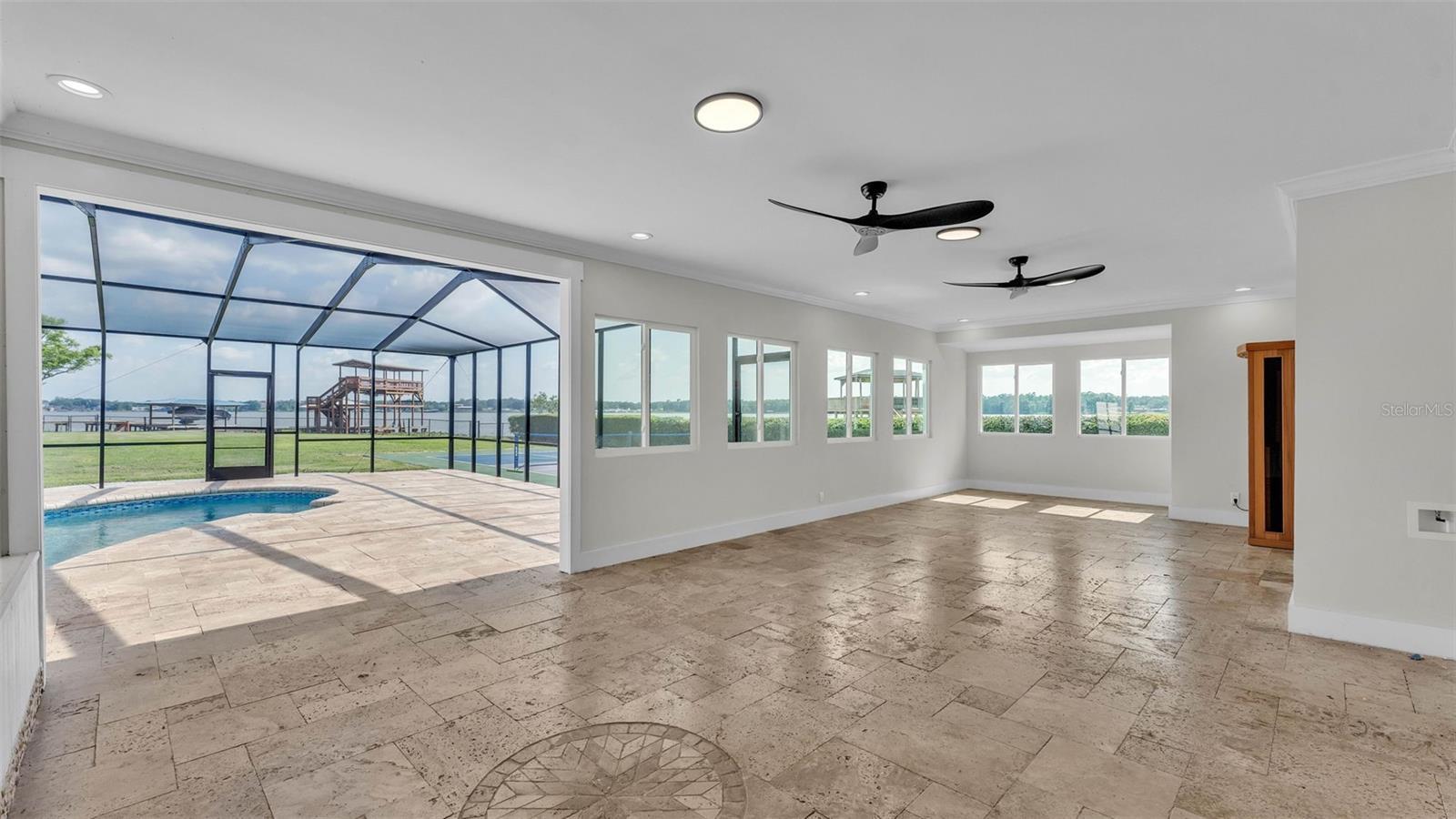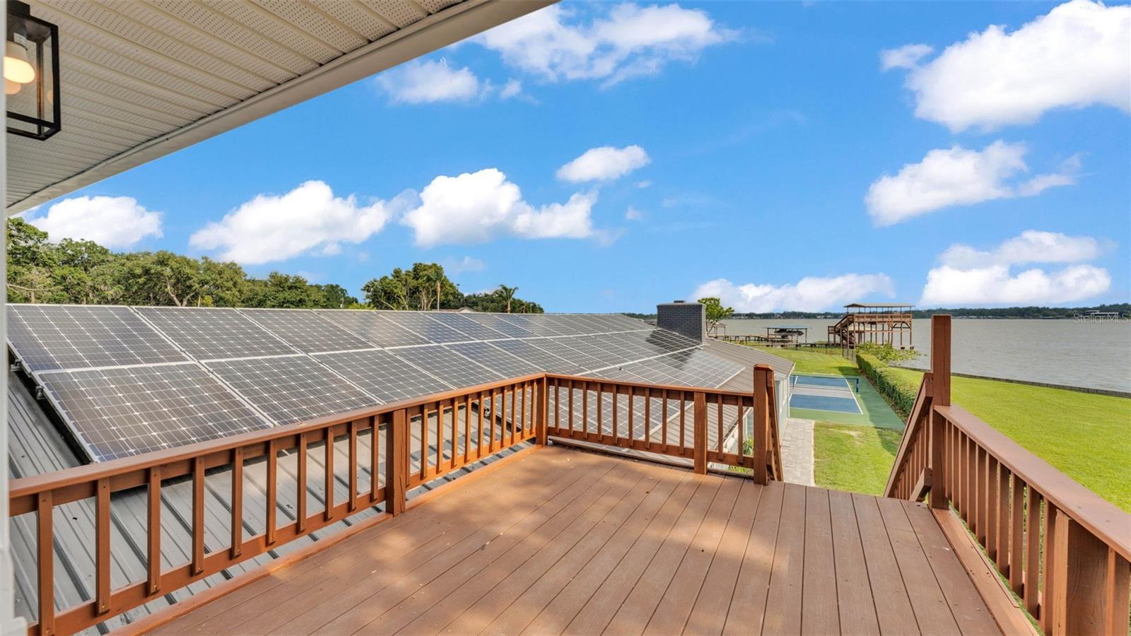 Welcome to 390 Windermere Drive, a stunning lakefront estate in the heart of Lakeland. Meticulously updated and designed with luxury in mind, this 5-bedroom, 6-bathroom residence offers over 3,500+- square feet of beautifully finished living space—perfect as a primary residence, vacation retreat, or investment property. It sits on just under 1 acre and is a private waterfront getaway. From the moment you arrive, this property makes a statement. A gated entrance opens to a custom brick driveway and landscaped island, framed by lush privacy hedges. A spacious two-car garage and separate golf cart garage provide ample storage for vehicles and recreational gear. Step inside to discover a bright, modern interior with high-end porcelain flooring, a dramatic custom staircase, and soaring ceilings. The open-concept kitchen and living area is an entertainer’s dream, featuring tray ceilings, elegant chandelier lighting, magazine-worthy finishes, and top-tier appliances. Adjacent is a formal dining area and additional dinette—ideal for prep or informal meals. The home offers three luxurious bedroom suites with private baths, a dedicated office, and a second-floor balcony with stunning lake views. Every detail has been thoughtfully curated, including recent updates to the roof, windows, doors, and systems throughout. The outdoor living space is nothing short of a private resort. Enjoy the screened-in heated pool, a dry sauna, and an outdoor bathroom—all under a covered lanai. Beyond the pool area, you'll find your own private sports complex with a pickleball court, fully fenced for added privacy. What truly sets this home apart is the two-level dock, complete with a boat lift, jet ski lift, and covered balcony overlooking beautiful Lake Gibson—perfect for sunset cocktails or early morning coffee. With 58 fully owned solar panels, this home offers energy efficiency you will appreciate. Located just minutes from I-4, top-rated schools, shopping, and dining, and an easy drive to both Tampa and Orlando, this home offers the best of lakefront living with modern convenience. Don’t miss the opportunity to own one of Lakeland most exceptional waterfront properties.