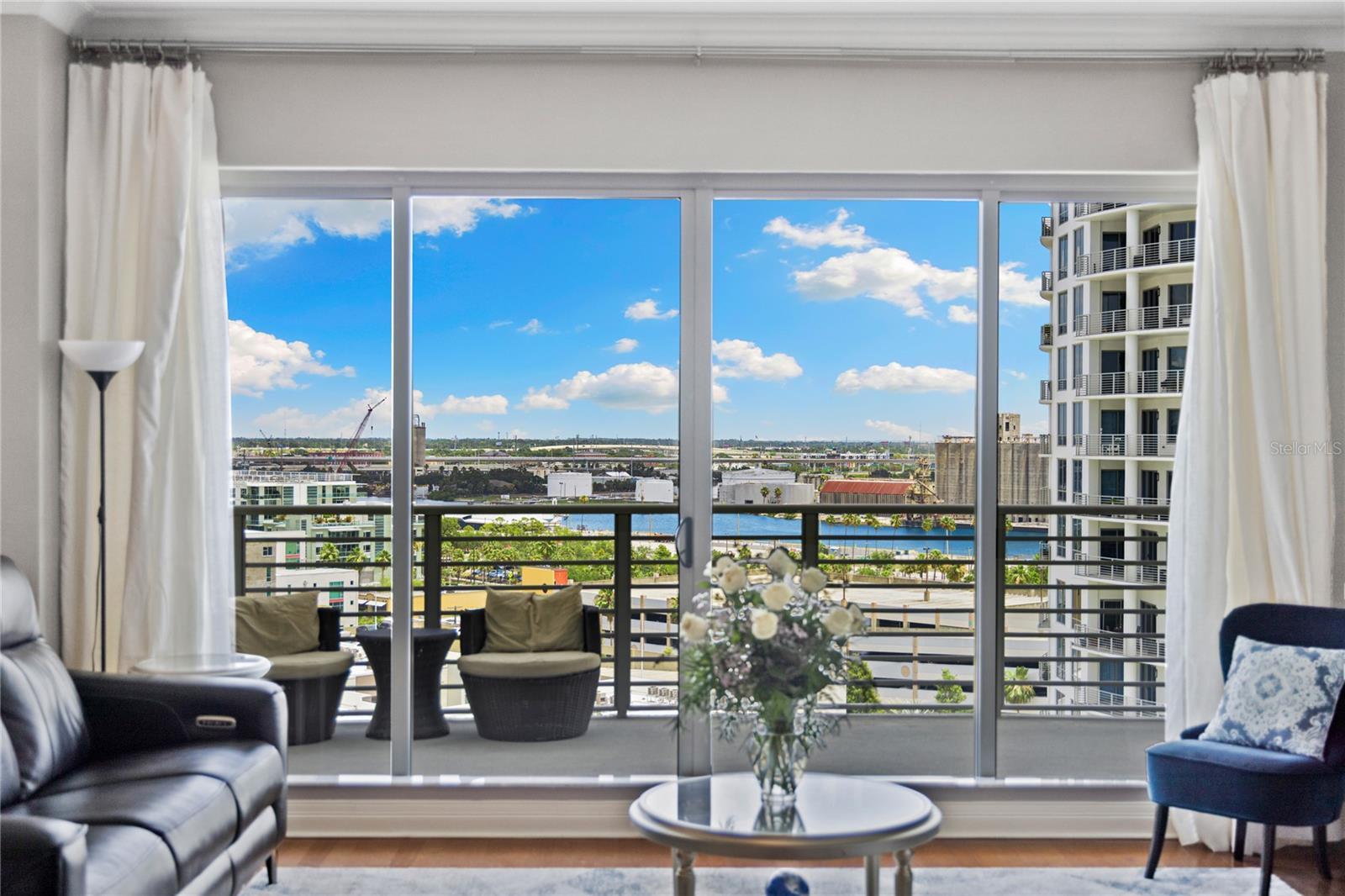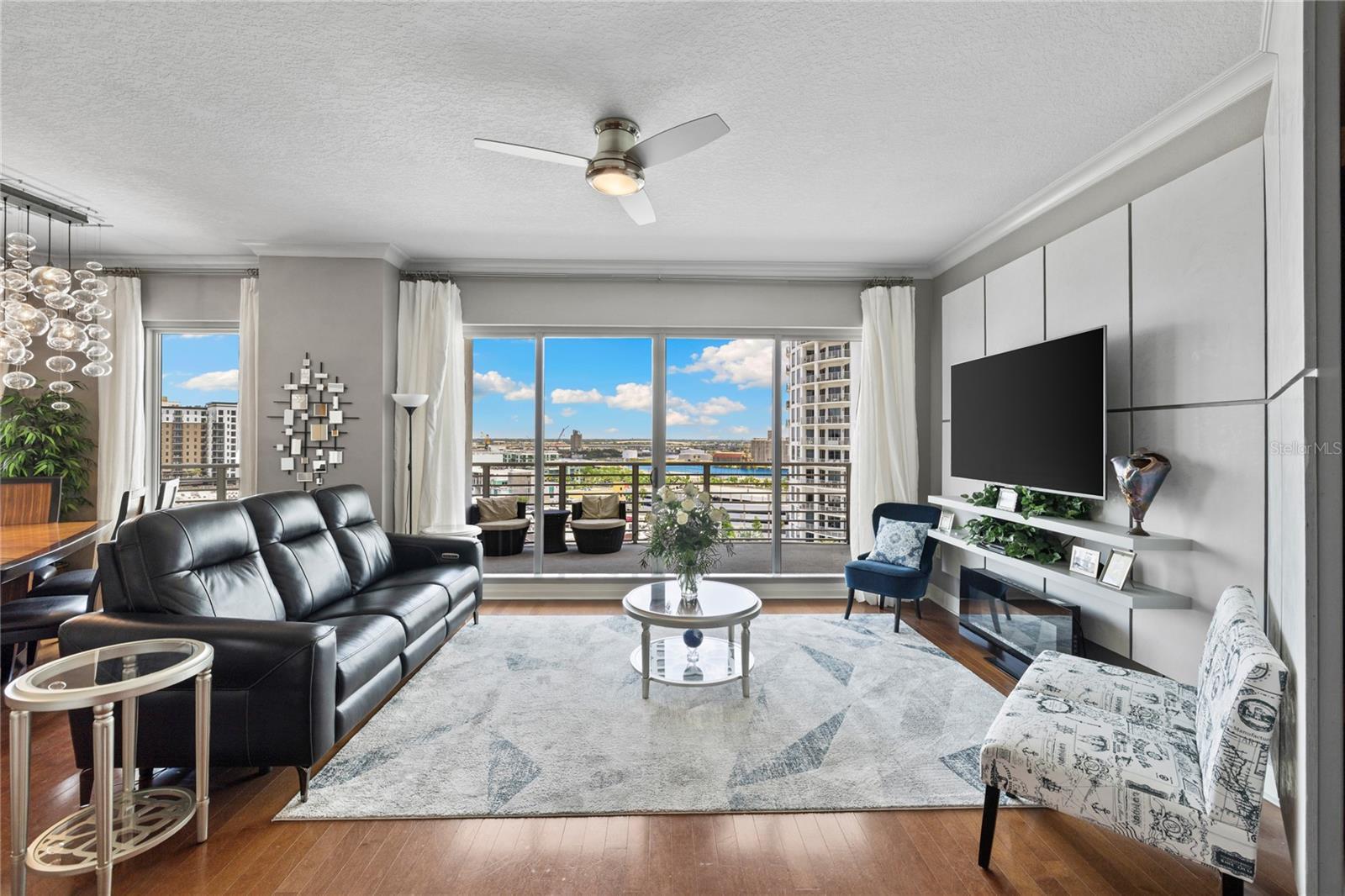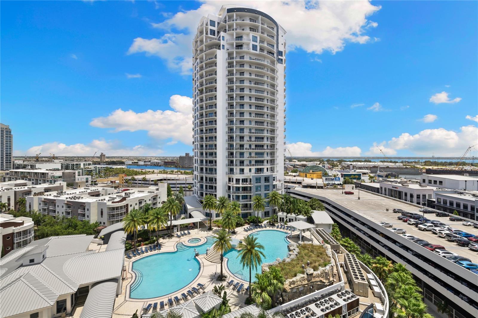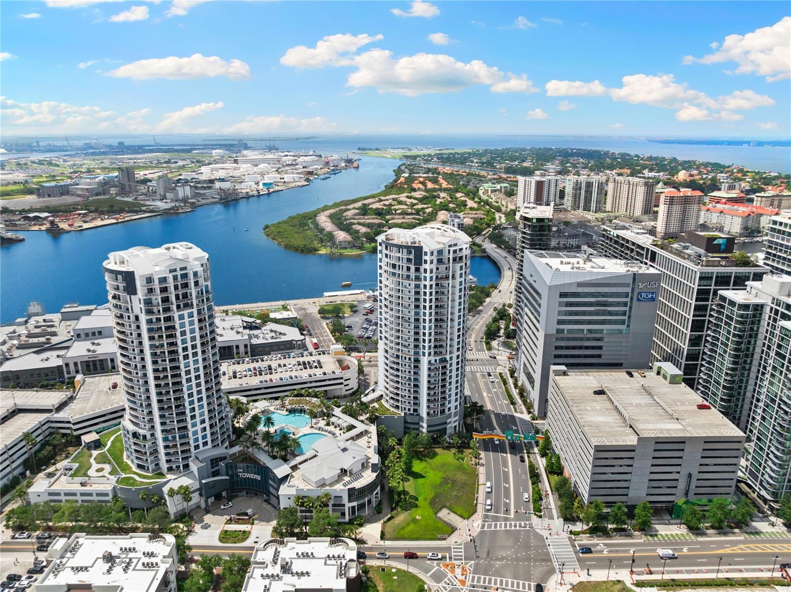Discover Elevated Living in this Rare and Luxurious Channelside Unit | Perched on the 12th floor of The Towers of Channelside, Tampa’s premier address, this 3-bedroom, 3-bathroom condominium offers views that define coastal elegance. Floor-to-ceiling windows frame panoramas of Downtown Tampa’s skyline, Sparkman Wharf, the serenity of the community pool, cruise ships at the port, and Tampa Bay’s waters. Each room captures a perspective, ensuring moments are steeped in natural beauty, from sunrise to city lights at dusk. The highlight of this residence is its 900-square-foot balcony, an outdoor sanctuary with unobstructed vistas that capture waterfront luxury. This terrace is ideal for morning coffee, evening gatherings, or enjoying the coastal breeze—an al fresco experience unmatched in Tampa’s urban landscape. Inside, hardwood floors shine under light fixtures, each a work of art. These fixtures cast a warm light that enhances the home’s elegance. The kitchen features granite countertops, stainless steel appliances, and ample cabinetry, blending style and function. The open-concept living and dining areas flow smoothly, creating a space for gatherings and entertaining, with views and lighting as backdrops. Safety is ensured with 24-hour security, offering peace of mind. For pet owners, the 5th-floor dog walk provides a convenient space for pets, adding to the building’s appeal. The master suite offers walk-in closets and an ensuite bathroom with dual vanities, a soaking tub, and a glass-enclosed shower, lit by elegant fixtures. The two additional bedrooms, each with a view, provide versatility for family, guests, or an office, complemented by bathrooms that uphold the residence’s standard. Located in Tampa’s waterfront district, this condo is steps from dining, Amalie Arena, the Riverwalk, and the Florida Aquarium. Channelside and Sparkman Wharf offer entertainment, while the Crosstown Expressway provides easy access for professionals. With its views, craftsmanship, light fixtures, safety features, pet amenities, and a balcony that redefines outdoor living, this residence is an opportunity to own a piece of Tampa’s skyline. The combination of interiors, scenery, and location makes this condo a gem. Schedule a private tour to experience waterfront living and envision your life in this home.