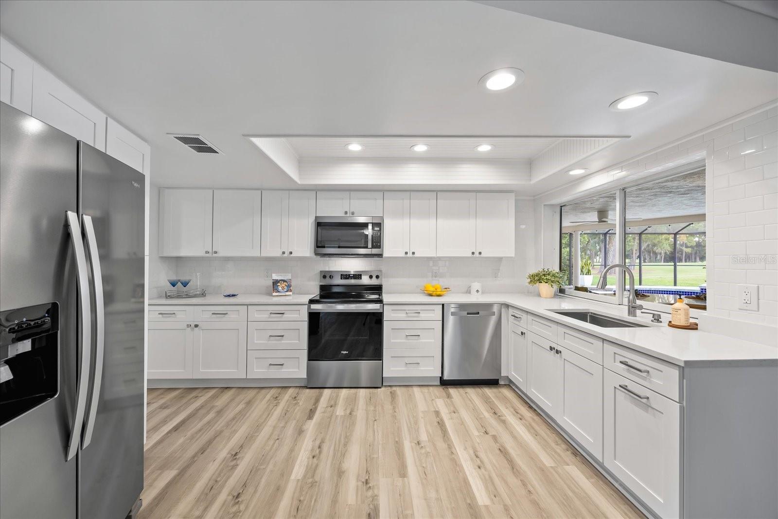 Golf Course Lifestyle in Feather Sound! This beautifully updated residence in the highly sought after Feather Sound community is perfectly positioned on the fairways of the Feather Sound Country Club's golf course and offers the ideal blend of being centrally located and a friendly community lifestyle. A thoughtfully designed split floor plan, offering privacy and functionality for families and guests alike. Primary suite and bedrooms feature one or more of the following: serene golf course views, spacious walk-in closets, and beautifully remodeled en-suite or adjacent bathrooms. The remodeled kitchen is complete with quartz countertops, classic white shaker cabinets, subway tile backsplash, and a walk-in pantry for additional space. Adjacent to the kitchen, the spacious laundry room offers the opportunity to create a custom mud room or additional pantry space. The home's living spaces are thoughtfully designed for both comfort and connection, featuring a welcoming family room, an expansive dining area, and an open-concept layout ideal for relaxed, family-style living. A charming wood-burning fireplace serves as a warm focal point. Brand new HVAC installed in 2025!! Step outside to your private covered lanai and screened-in pool with spillover spa, set on a paver deck with serene views of the golf course. An outdoor wet bar adds the perfect touch for entertaining, grilling or relaxation. The oversized three-car garage has a new epoxy-coated floor, attic space and bonus tool room. Professional lighting and landscaping create a striking curb appeal in this desirable community. Seller is open to offers and flexible on closing timeframe.