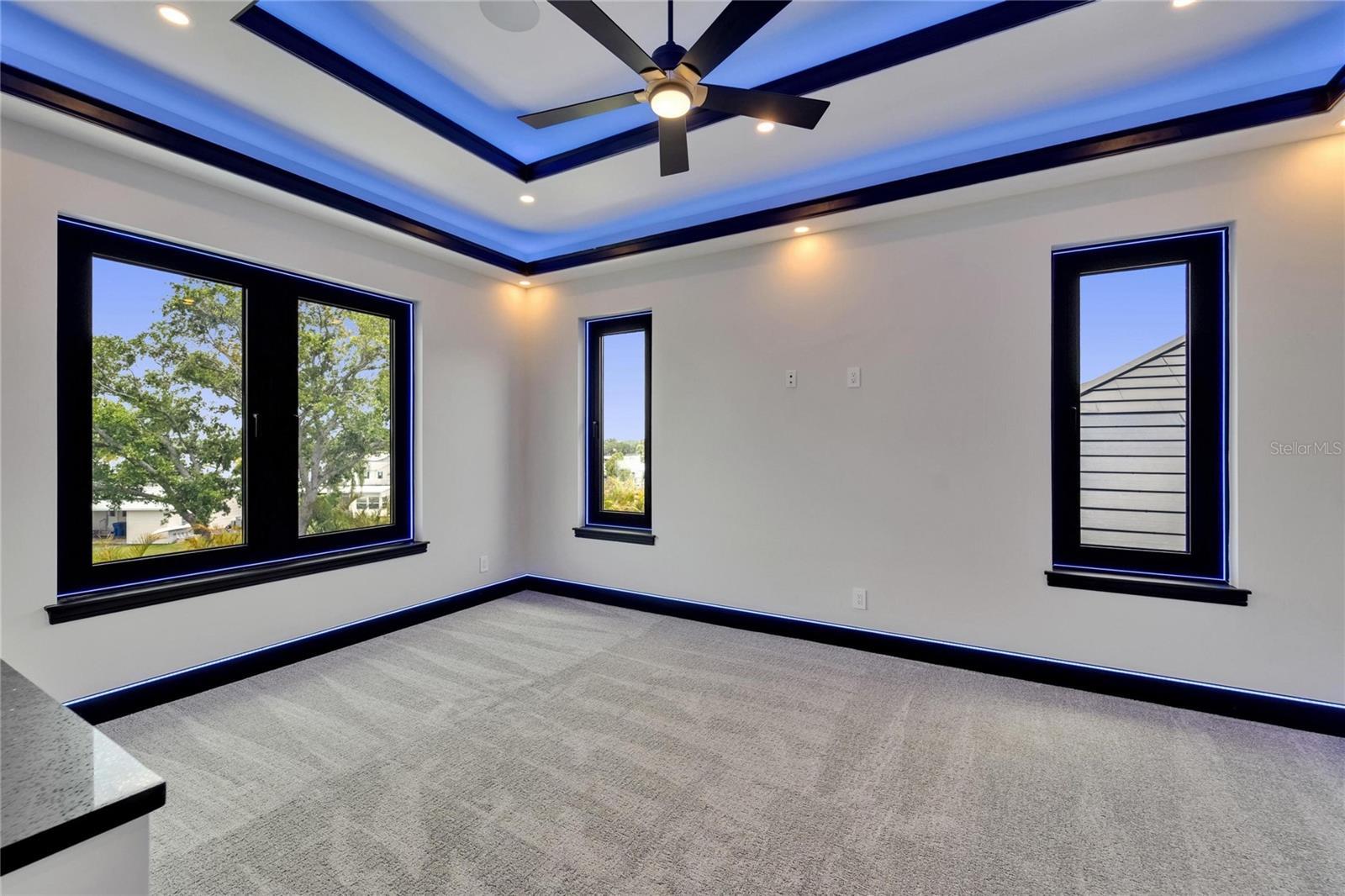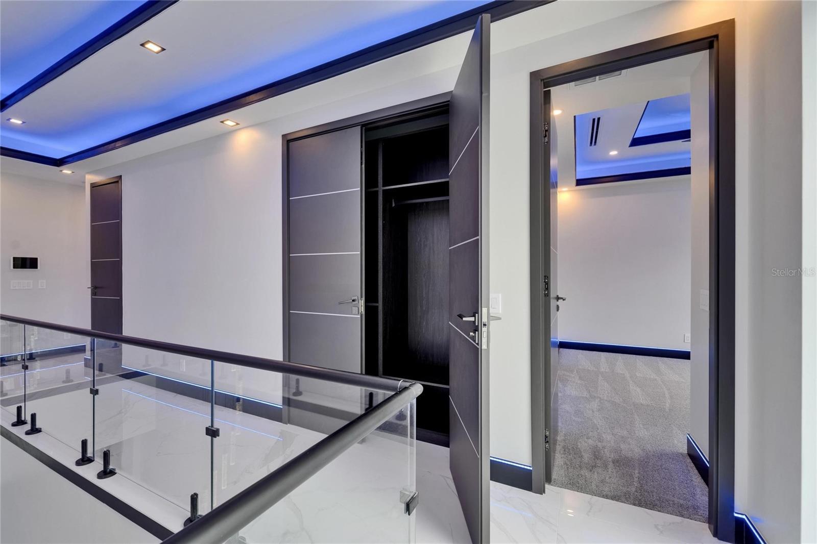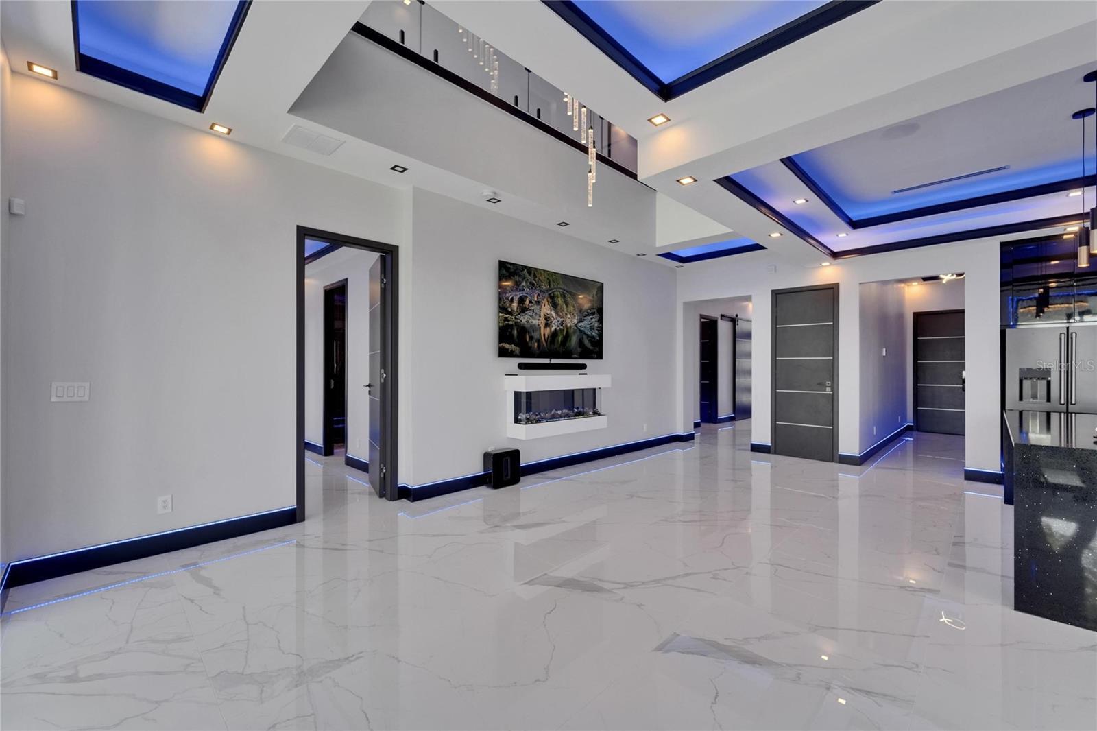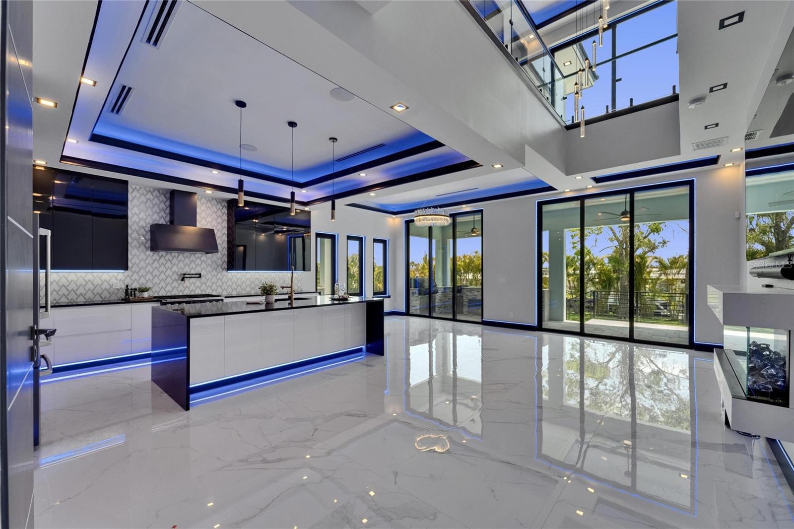 6530 Simone Shores Circle | Custom Bistro Builders Design 7 Beds | 5 Baths | 3,967 Living Sq. Ft. | 12 ft Elevation Welcome to 6530 Simone Shores Circle, a newly completed 2024 custom waterfront home by Bistro Builders in Apollo Beach. This two-story, block-constructed home offers 7 bedrooms, 5 full bathrooms, Butlers Pantry, a dedicated movie theater room, and nearly 4,000 sq. ft. of living space. Built on a 12-foot elevation with a stem wall foundation and cement flooring between stories, the home is engineered for strength, safety, and long-term efficiency. It features solid block construction on both floors, hurricane-rated impact windows, seamless fire-resistant doors, spray foam insulation, and hurricane-rated insulated garage doors. The garage includes a dedicated AC system and multi-layer epoxy flooring for durability and comfort. Designed with smart home technology throughout, the home allows full control of the solar system, lighting, security, climate, garage, and pool from your phone or the mounted iPads. Entry is secured with fingerprint and facial recognition. Programmable soffit, baseboard, and window lighting is installed inside and out, with built-in surround sound throughout the home, lanai, and garage. Inside, the main living area features 24-ft soaring ceilings, smooth finish walls, triple sliding Hurricane Rated Impact glass doors, and a large open great room with an electric fireplace and custom lighting. The kitchen includes quartz countertops, a waterfall island, a gas stove with pot filler, wine cooler, walk-in pantry, and European-style custom cabinetry with pull-down and organizational shelving. A separate butler’s prep kitchen offers extra space for entertaining, prep work, and storage. The primary suite and a second bedroom are located on the first floor. The primary suite features canal and pool views, direct lanai access, a walk-in closet with a European organization system, and a spacious bathroom with dual sinks, a jetted soaking tub, and a floor-to-ceiling tiled shower with multiple heads that allow color and pressure customization. Upstairs includes five additional bedrooms with custom closets and access to a relaxing balcony. A second laundry room with cabinetry and a folding station is also upstairs. The outdoor living space includes a covered lanai with a custom outdoor kitchen and grill, a heated saltwater pool and spa, and a new seawall with a private dock and 10,000 lb lift offering direct Tampa Bay access. The home includes a paver driveway and lawn maintenance is covered by the low monthly HOA. Located in Hemingway Estates, a high-elevation community that remained dry during recent major storms, this home combines space, technology, security, and premium waterfront access for modern Florida living.