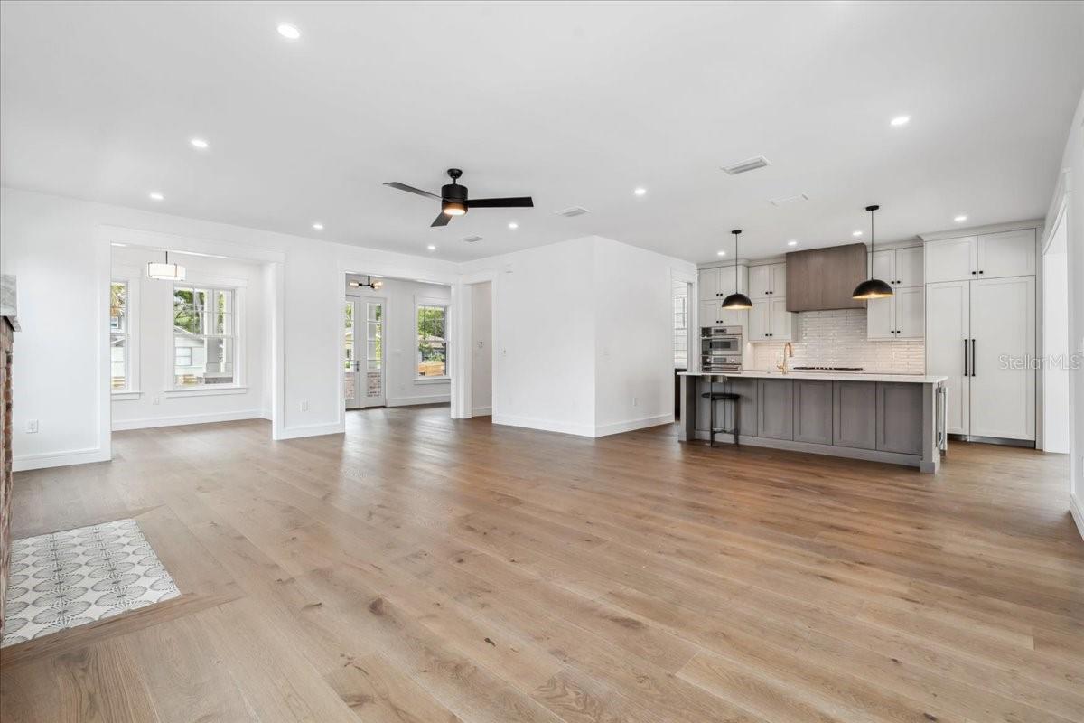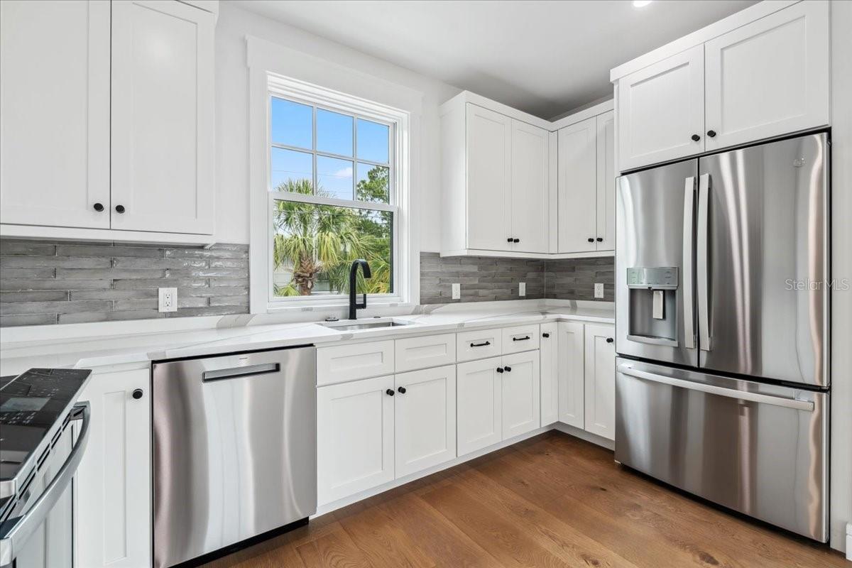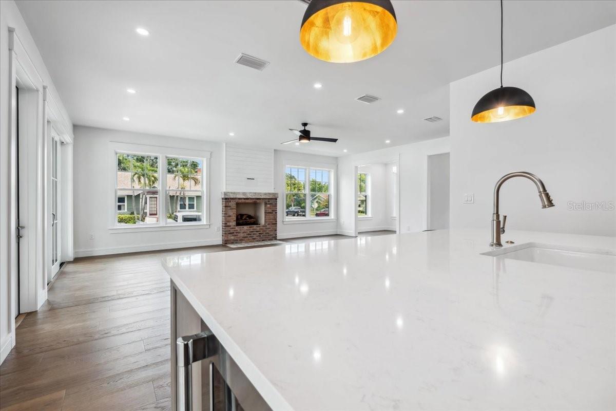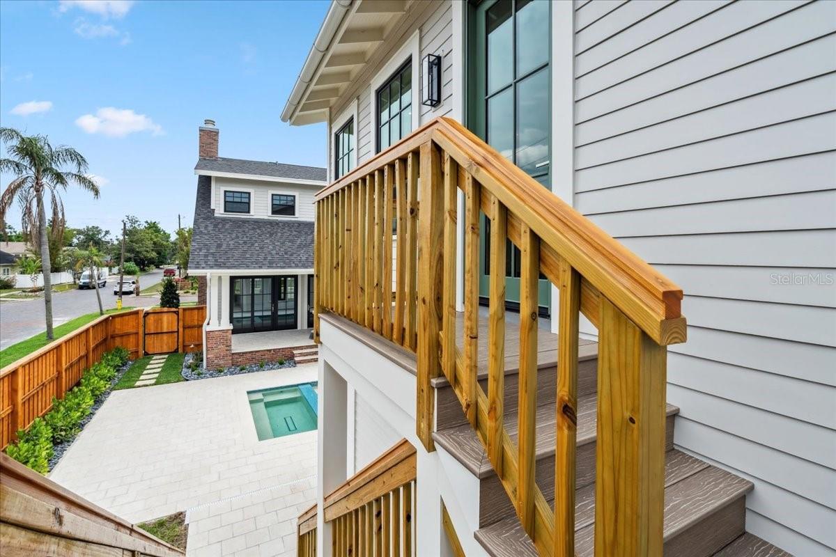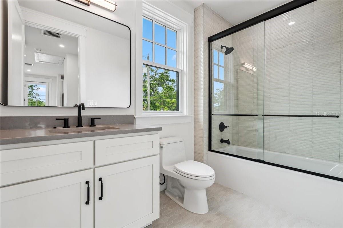 Experience timeless craftsmanship and modern luxury at 2101 3rd Ave N, a brand-new home by JWM Residential in St. Petersburg’s coveted Historic Kenwood. This stunning corner-lot property features a beautifully designed 3-bedroom, 2.5-bath main residence and a fully equipped 1-bedroom, 1-bath carriage house above a detached garage—perfect for guests, rental income, or a private studio. Inside the main home, you’ll find top-of-the-line finishes throughout: engineered hardwood floors, custom cabinetry, Sierra Pacific wood-clad windows and doors, and artisan-installed trimwork. The chef’s kitchen is anchored by paneled Thermador appliances, quartz countertops, a walk-in pantry with full cabinetry, and a large island ideal for entertaining. The open-concept living area features a gas fireplace with a Taj Mahal stone mantle and flows seamlessly into a bright dining area overlooking the pool. Upstairs, the primary suite boasts a spacious walk-in closet and a luxurious bathroom with a dual shower setup and brass fixtures. Two additional bedrooms share a beautifully tiled hallway bath. A laundry room with terrazzo tile and LG appliances adds both function and flair. Step outside to enjoy the heated saltwater pool and spa, finished in PebbleSheen and surrounded by Shellock pavers. A water feature wall and full automation elevate the backyard oasis. The home also includes a Rainbird irrigation system, Volt landscape lighting, tankless gas water heater, and Mitsubishi ducted mini-split HVAC systems for zoned efficiency. The detached garage and carriage house are separately metered and offer a full kitchen, laundry, and mini-split system—ideal for multi-generational living or long-term guests. The exterior is a blend of custom brickwork, WindsorONE trim, tongue-and-groove porch ceilings, rain chains, and historic half-round gutters, blending classic charm with new construction quality. Located just 1.5 miles from downtown St. Pete, minutes to Central Avenue’s shops and restaurants, and about 15 minutes to St. Pete Beach, this home offers unbeatable access to everything the area has to offer—plus quick access to Tampa via I-275.