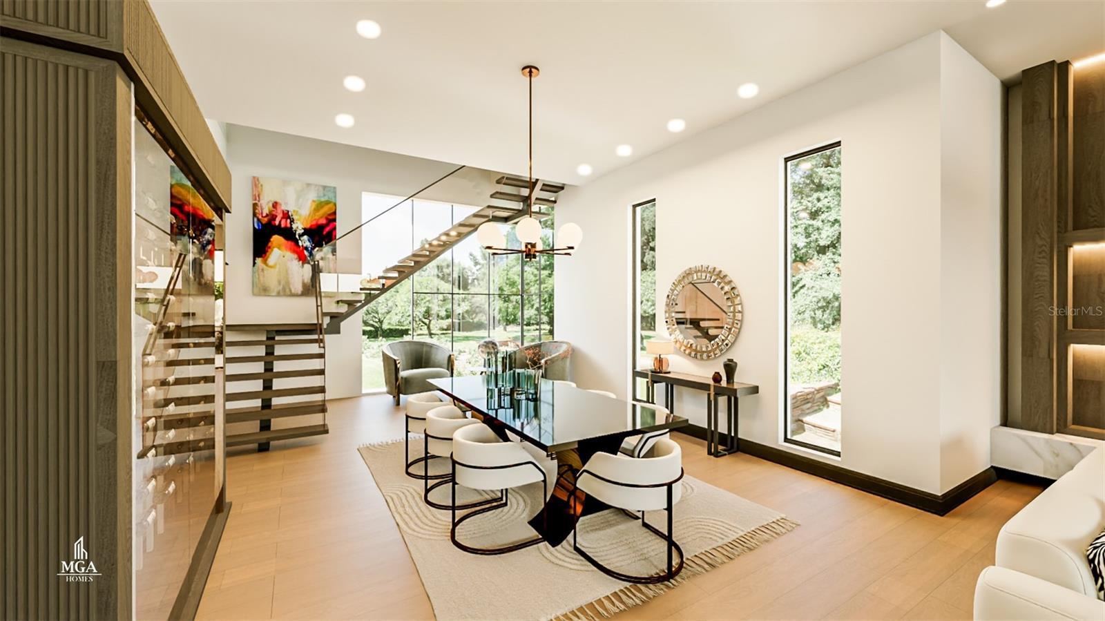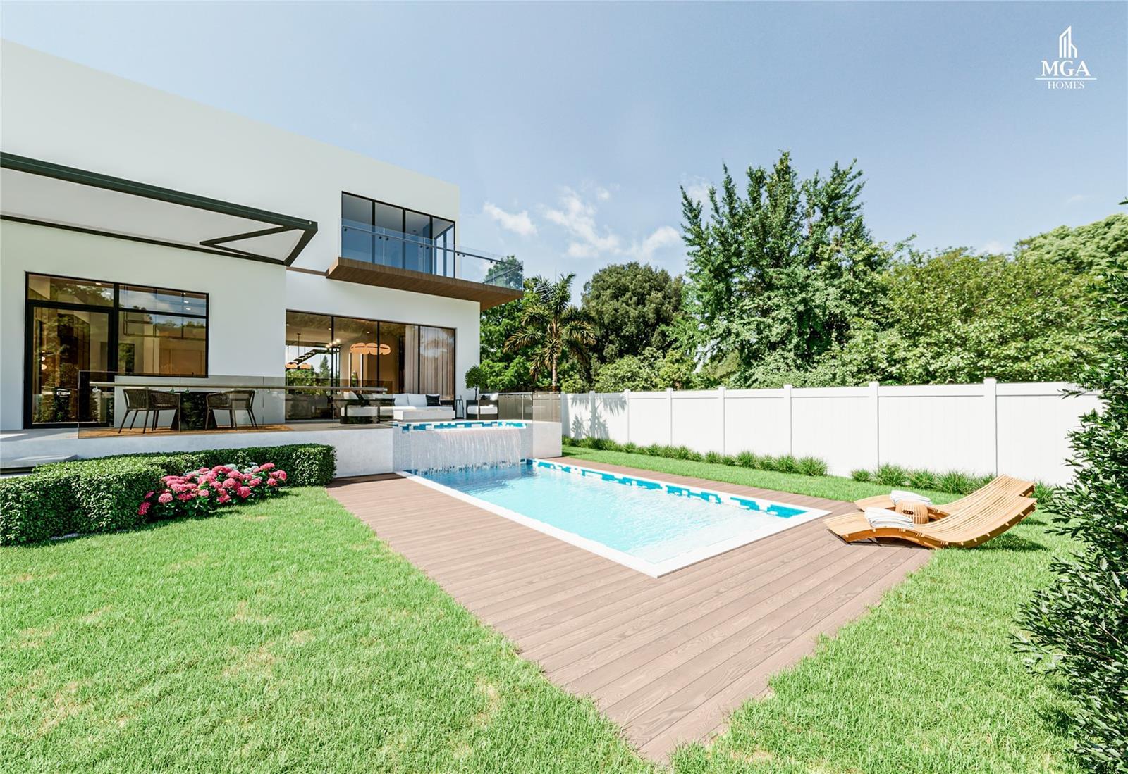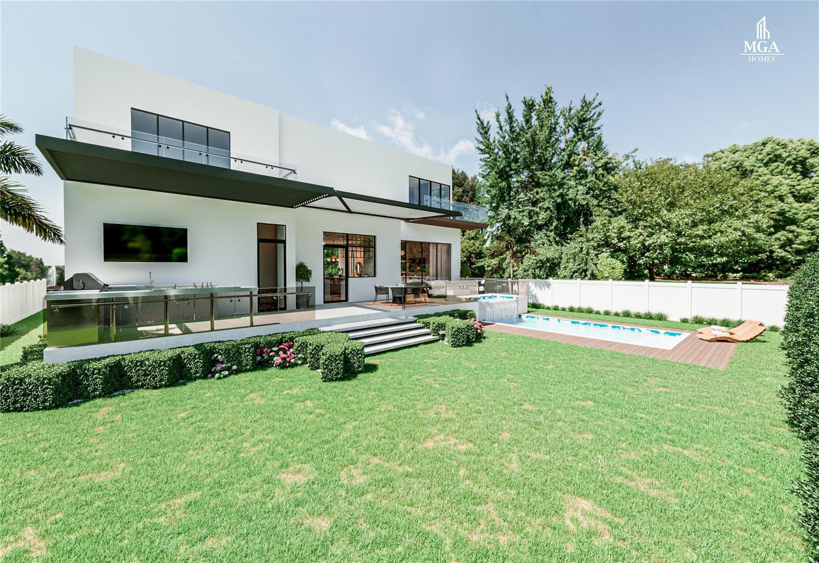 Pre-Construction. To be built. The latest MGA home to hit the market is the pinnacle of living, where modern flair seamlessly blends with timeless elegance. This architectural gem showcases premium finishes throughout. Upon entering, you will be captured by a breathtaking floating staircase flanked by double-story windows that appears to defy gravity as it gracefully ascends to the second level. The heart of the home features an expansive family room with a stunning accent wall, complemented by a gourmet kitchen inspired by a recent trip to Athens, Greece. It showcases a magnificent Venetian plaster hood and a distinctive fluted oval-shaped island with dramatic waterfall edges. Brass kick plates with integrated lighting add warm illumination, while the coffee bar with custom display shelving completes this culinary masterpiece. The thoughtfully designed walk-in pantry ensures both functionality and luxury. A well-appointed junior master bedroom on the first floor offers the perfect retreat for guests or multi-generational living, featuring its own en-suite bathroom and ample closet space for ultimate comfort and privacy. Wine connoisseurs will appreciate the temperature-controlled wine cellar, perfect for showcasing prized collections. Crown this exceptional residence with a fully appointed outdoor entertainment area, complete with a convenient ice trough to keep beverages perfectly chilled while grilling. The elevated garage doors add a distinctive modern touch to the home's striking facade, with space perfectly designed for your own car lift. The master bathroom serves as a private sanctuary, featuring dual skylights that bathe the space in natural light, complemented by custom cabinetry and wall-to-wall mirrors that create a sense of limitless luxury. The centerpiece encased bathtub provides the perfect retreat for unwinding after long days. This is more than a home; it's an architectural statement where luxury meets innovation and every thoughtfully designed element exceeds expectations. Experience the extraordinary and make this unparalleled estate yours—with MGA Homes, expect the unexpected! Realtor is the owner of the Lot.