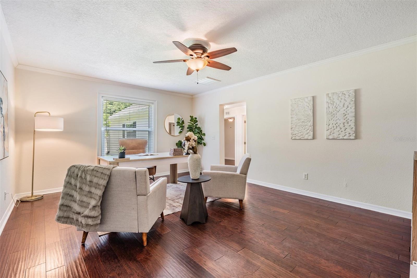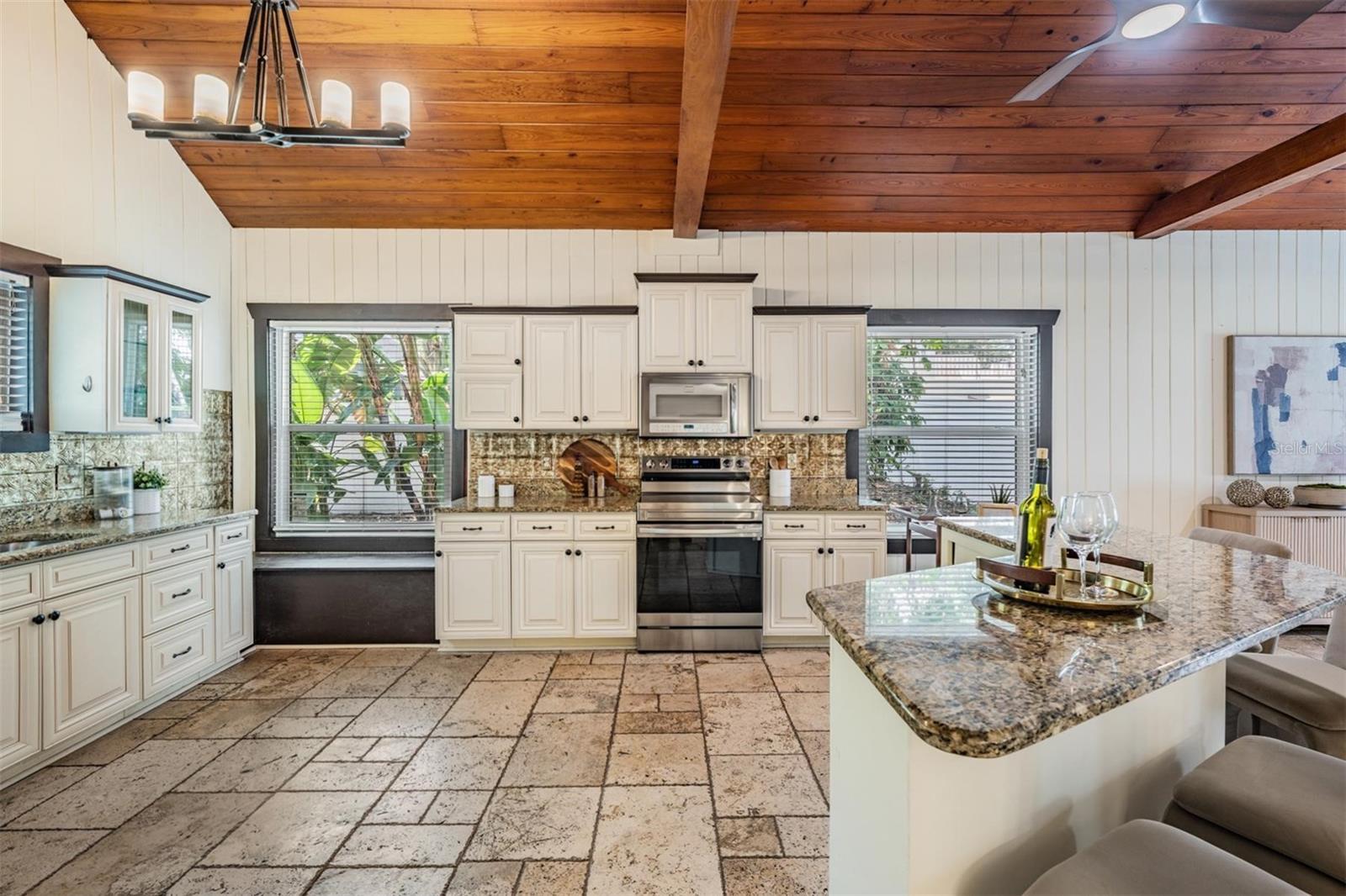 - Ceiling Fans(s), Crown Molding, High Ceilings, Kitchen/Family Room Combo, Split Bedroom, Stone Counters, Thermostat, Walk-In Closet(s)