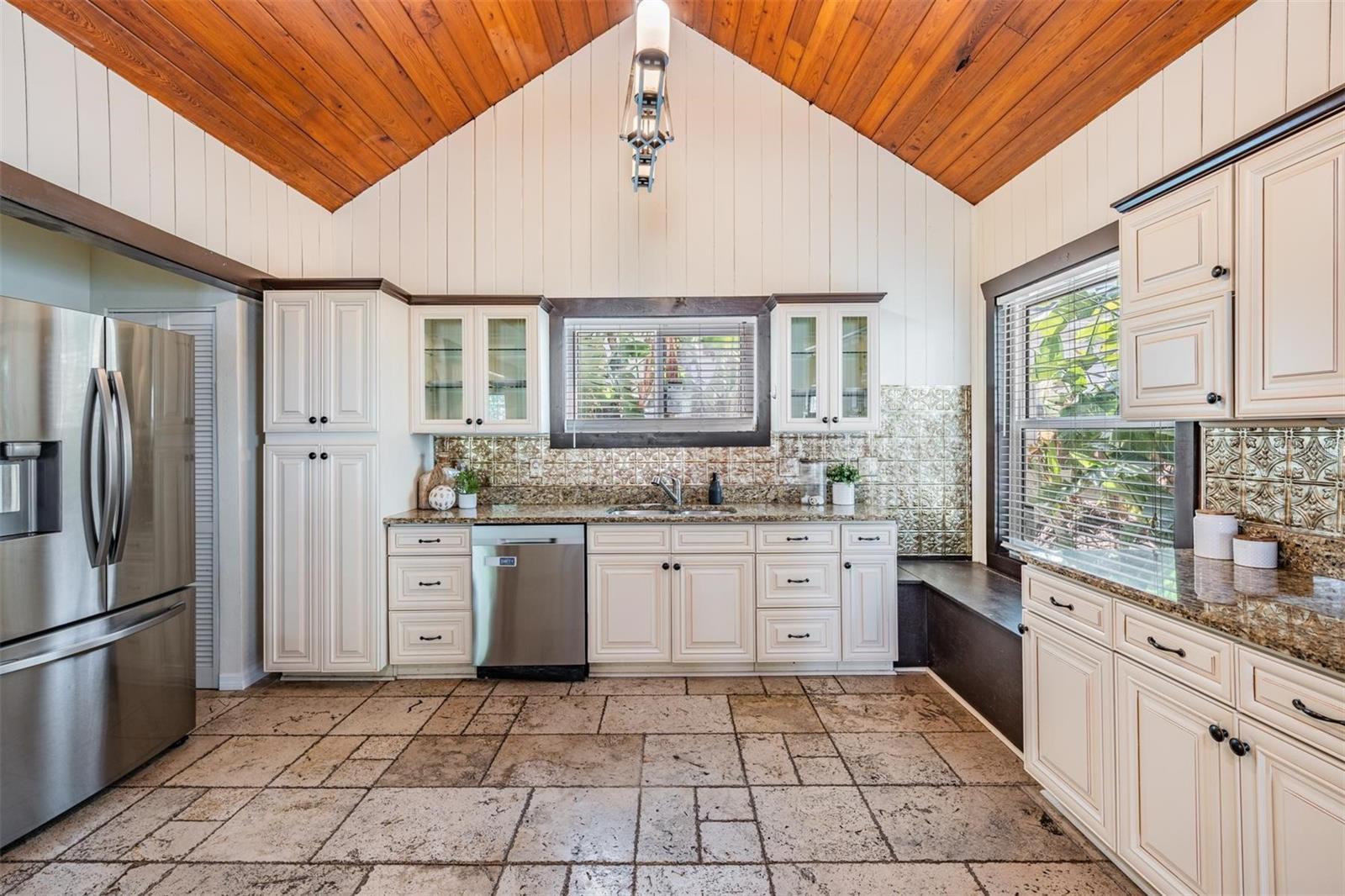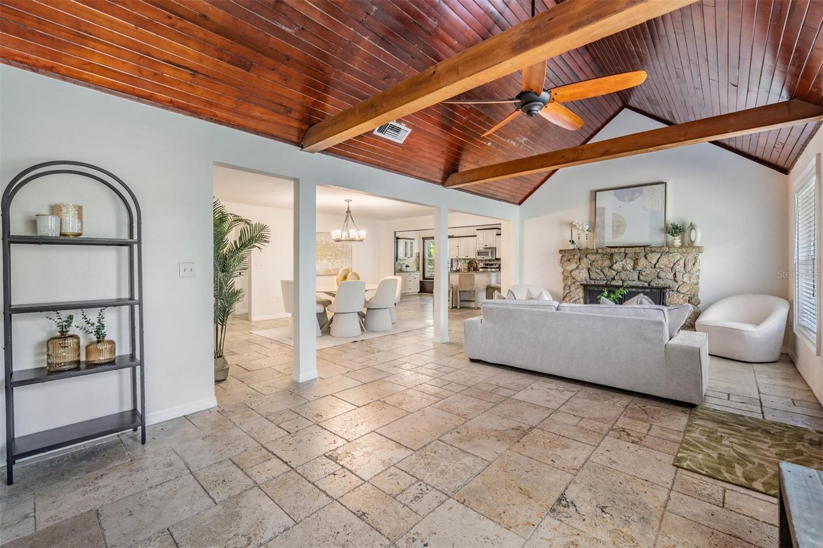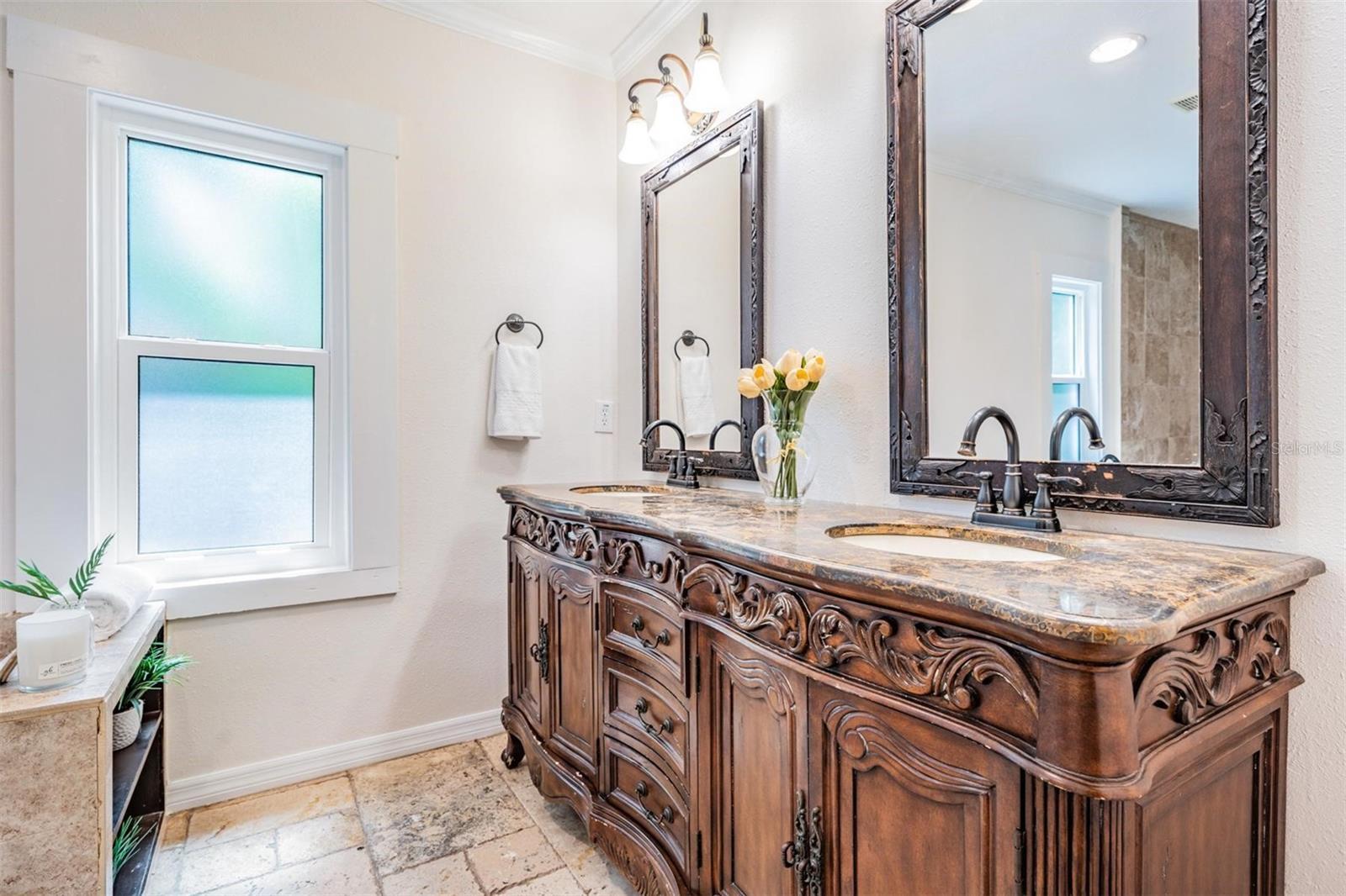 Located in South Tampa in the highly sought-after Plant High School District, this charming 3-bedroom, 2.5-bathroom home with a bonus room includes a large, fenced-in front yard that features a pergola-covered patio, surrounded by elegant landscaping — ideal for outdoor entertaining or relaxing. Step inside and you’ll be greeted with beautiful travertine tile flooring, high vaulted wood ceilings, and a wood-burning fireplace, as well as plenty of natural light, making for a very warm, inviting space when you first walk in. Off to the right, you’ll find the expansive kitchen, boasting granite countertops, stainless steel appliances, and a large center island, all situated between the living and dining areas, making it perfect for hosting. The primary suite boasts gorgeous crown molding, dual walk-in closets, and a luxurious bathroom with dual granite countertop vanities, a soaking tub, and a walk-in shower. The bonus room makes for a perfect office or a flex room of your choice, while the guest wing offers two additional bedrooms as well as a full bathroom, and is situated away from the primary suite for added privacy. Additional highlights include a dedicated laundry room with a half-bathroom, a 1-car garage with an extended driveway for ample parking, an outdoor sprinkler system, and a newer roof, replaced just in October 2022 for added peace of mind. Conveniently located near I-275, Tampa International Airport, Raymond James Stadium, Tampa International Mall, Downtown Tampa, and South Tampa’s best shopping and dining. This home blends charm, functionality, and location — don’t miss your opportunity to see it. Schedule your private showing today!