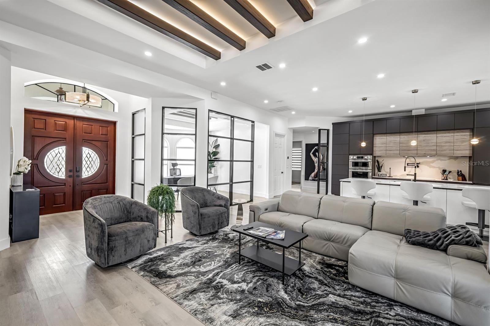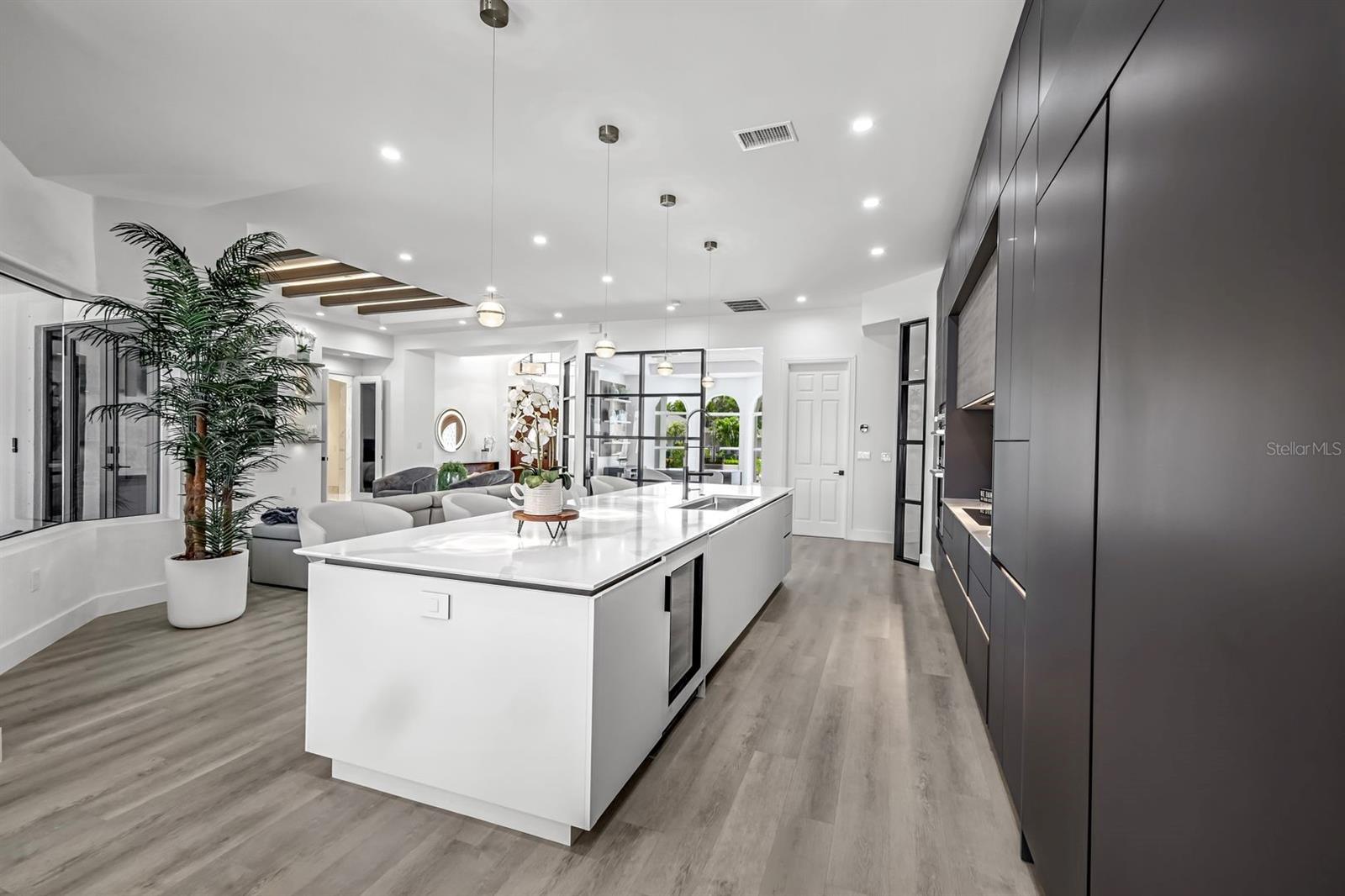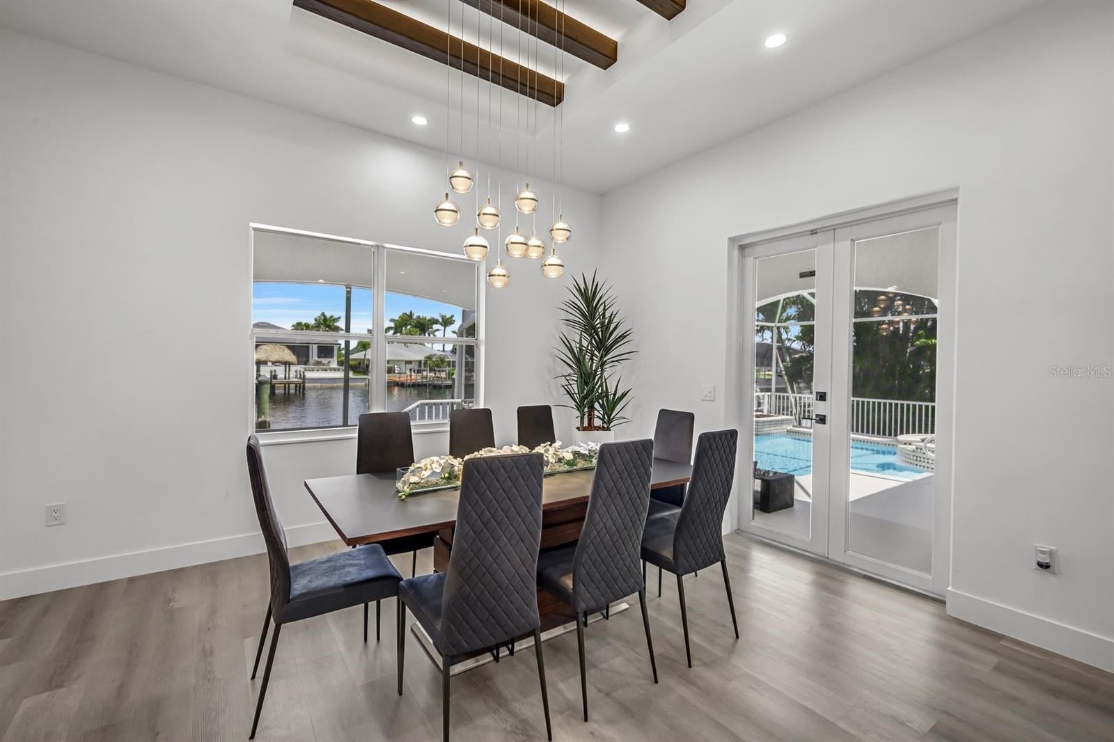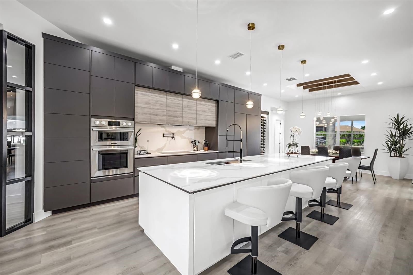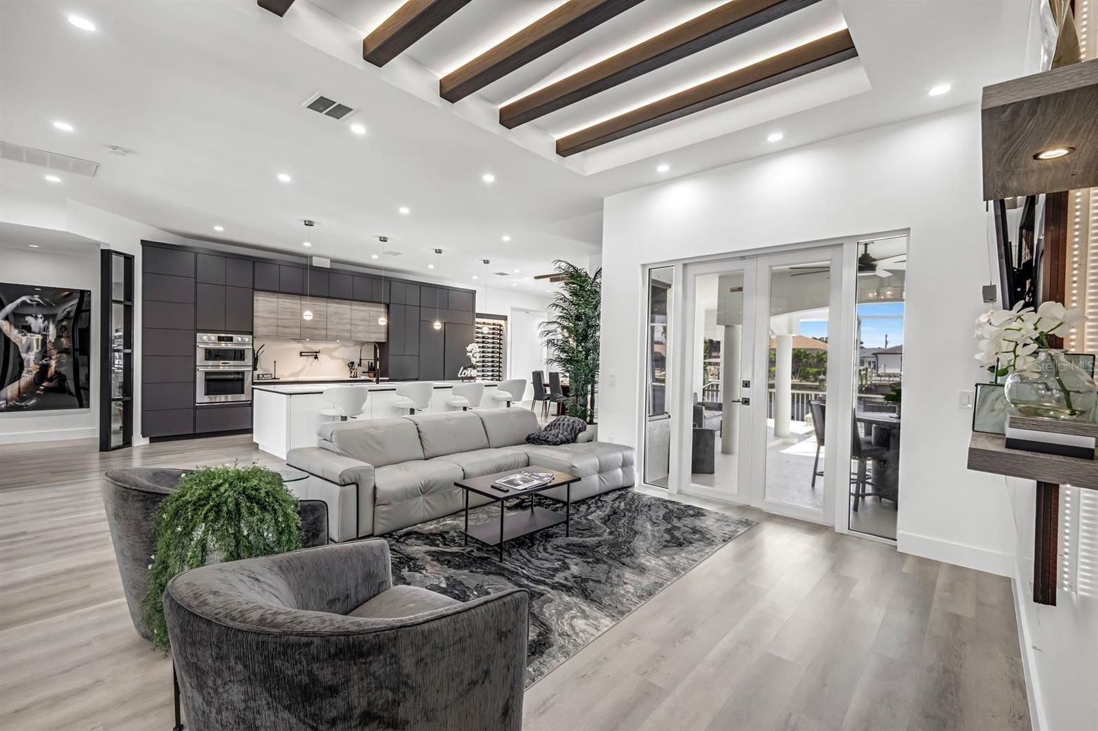 Welcome to your waterfront masterpiece in Cape Coral’s Savona boating community. This extraordinary residence offers deep water sailboat access on an oversized canal—ideal for large vessels. Just minutes from the Caloosahatchee River with no bridges, it’s a dream location for yachting enthusiasts and anyone seeking luxury waterfront living in sunny Southwest Florida. Boasting $600,000 in premium upgrades, this home has been reimagined with both elegance and functionality in mind. Highlights include 10-foot ceilings, custom lighting, upgraded insulation, newer HVAC, and a freshly painted interior and exterior. The modern open-concept layout seamlessly blends indoor and outdoor living. At the heart of the home is a chef’s kitchen, complete with: an oversized island with under-mount lighting and deep sink with disposal, Subzero 48” refrigerator/freezer, Signature 2023 appliances including a steam oven, microwave, dishwasher, wine fridge, and a custom pullout coffee bar and pot filler for added convenience. The elegant dining area seats eight and opens via French doors to a resort-style patio with tranquil water views of the Sonata Canal. The Primary bedroom suite boasts French doors to the lanai, a stunning porcelain feature wall and mirror, and a designer walk-in closet with ambient lighting. The luxurious primary ensuite boasts a floating toilet, rain showerhead, body sprays, stylish vanities, modern plumbing fixtures, and designer lighting throughout. Two additional European-inspired bathrooms offer designer finishes and floor-to-ceiling porcelain tile with LED-lit mirrors. Outdoor living is equally impressive, with a newly painted pool lanai, new lighting and ceiling fan, and upgraded pool lighting to enhance nighttime ambiance. Boaters will love the 70-foot dock and captain’s walk, complete with lighting, electrical, and water—perfect for accommodating up to a 65-foot yacht. Best of all, this home is elevated above the floodplain and has never experienced water intrusion, offering true peace of mind during storm season. Don’t miss your chance to own this exclusive waterfront oasis—schedule your private tour today!