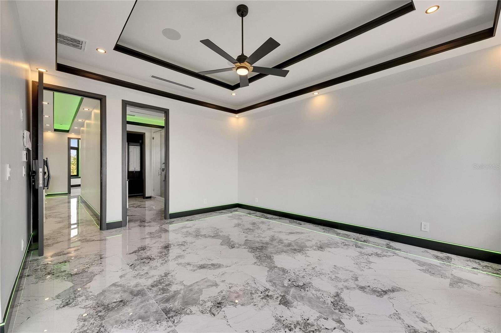 Welcome to 6526 Simone Shores Dr, Apollo Beach, FL – Brand-New Custom Waterfront Pool Home with Contemporary Design! Step into modern luxury with this stunning 2024 custom-built waterfront home. Thoughtfully designed for efficiency, technology, and comfort, this exceptional Meridian Floor Plan by Bistro Builders features cutting-edge solar roof tiles, delivering instant energy savings while providing the latest in contemporary living. The Grand Bahama Room welcomes you with soaring 24-ft ceilings, custom LED lighting, a fireplace, and a wireless built-in sound system that extends through every room, including the outdoor spaces and garage. Expansive wall-to-wall cascading sliding glass doors seamlessly blend indoor and outdoor living, leading to the lanai, pool, outdoor kitchen, and waterfront views. The chef’s kitchen is a statement in both design and functionality, featuring top-of-the-line gas appliances, a spacious pantry with a full prep area, a secondary wine refrigerator, and a generous island with built-in under-cabinet storage. Sleek European-style custom cabinetry with drawer inserts enhances the modern aesthetic, while impact-resistant, high-strength windows flood the space with natural light. This home offers incredible versatility, with a flexible layout that accommodates a first-floor primary suite, in-law suite, or game room/bedroom combo. The front-facing office with elegant bay windows provides a perfect workspace, complete with dedicated ethernet and customizable lighting. A full bathroom on the main level adds to the home’s functionality. Each bathroom is finished with floor-to-ceiling custom tile work, rain-making multi-shower heads with integrated music, heated bidet toilets, and custom lighted mirrors. Upstairs, a mini-bar area offers easy access to the balcony, ideal for enjoying waterfront evenings. The second level features four well-appointed bedrooms, including two full primary suites, plus a laundry room for added convenience. The primary suite offers private balcony access, a luxurious bath with dual sinks, a large walk-in shower, a soaking tub, and custom-built European-style closets. Bedroom 4 features charming bay windows and shares a Jack-and-Jill bath with Bedroom 3, which also has a private balcony. Bedroom 2 enjoys its own en-suite bath and direct access to the rear balcony, providing yet another space to take in the breathtaking views. Every inch of this 3,100+ sq ft home is designed for functionality, technology, and style. The home is move-in ready, complete with a heated saltwater pool and hot tub. The seawall has been recently replaced, and a brand-new 10K boat lift and dock are currently being installed. This fully integrated smart home allows you to control lights, music, appliances, pool, lawn irrigation, AC, and garage doors from any of the strategically placed iPads throughout the home. Built to exceptional structural standards, this home features solid block construction on all exterior walls, stem wall construction below the slab, a high elevation, and storm-rated impact windows and doors. For ultimate security, the state-of-the-art system includes fingerprint and facial recognition access doors. Additional features like fire-resistant doors, energy-efficient sprayed-in insulation further enhance safety, durability, and comfort. No shortcuts were taken in the construction of this exceptional waterfront home. Schedule your private showing today!