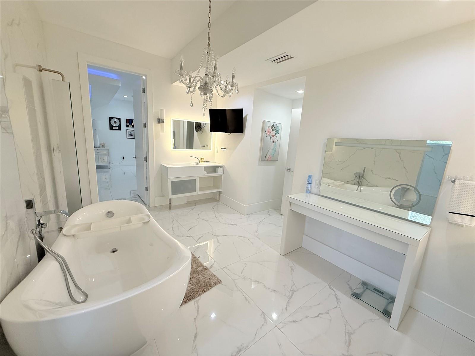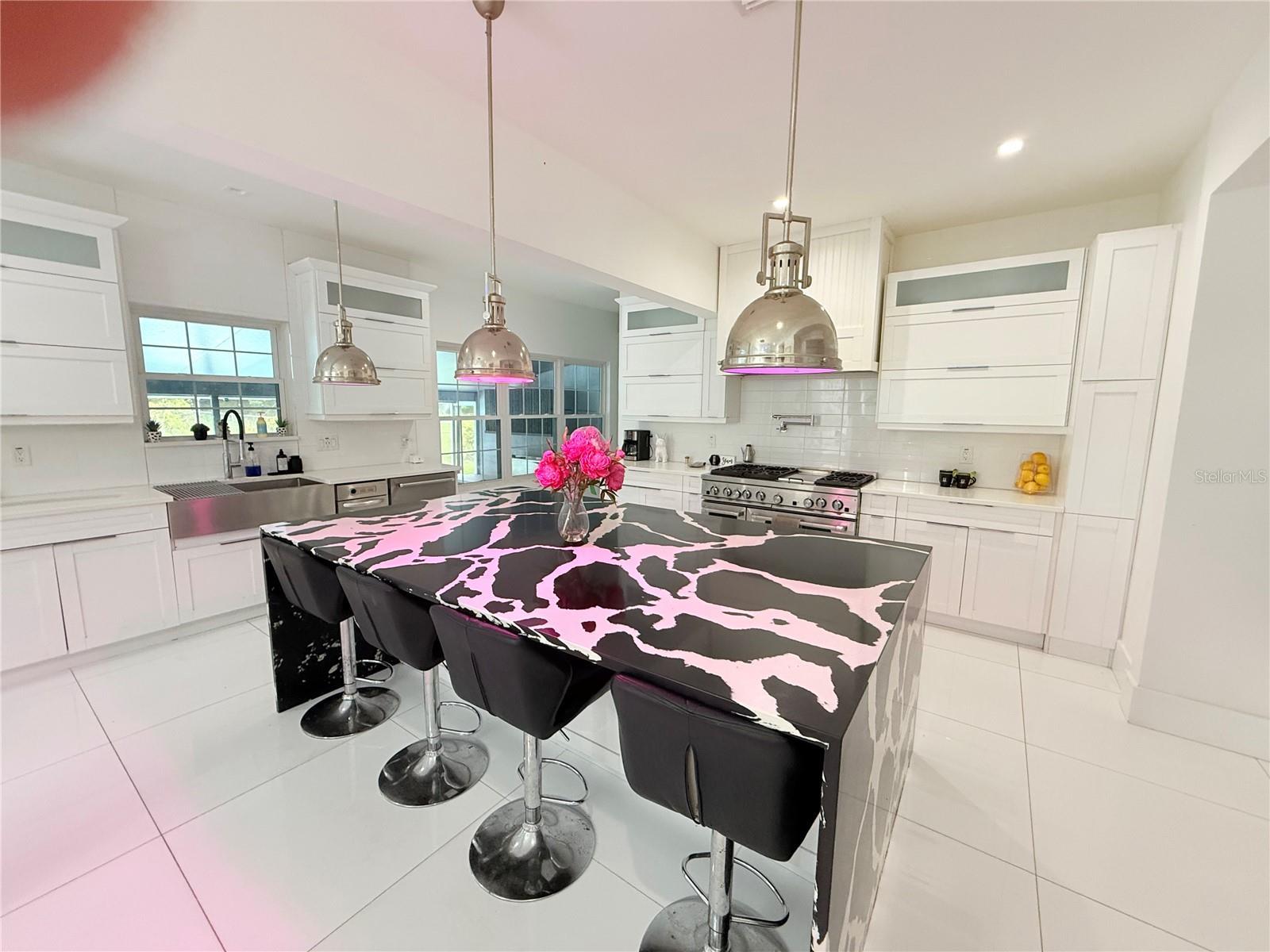 Designer’s Dream Home ,Nestled on over an acre of lush mature landscaping, secured by a private gate, this designer's dream estate offers an unparalleled level of luxury. Upon entering the foyer, the grand vault-style front door sets the tone for an extraordinary modern sanctuary. Meticulously designed with an open floor plan and top-of-the-line upgrades, this home features microcrystal porcelain tile, level five smooth walls, and open cell foam insulation. Four custom-designed bathrooms boast high-end Porcelanosa tile and marble, while the surreal Master suite offers over 1200sf of design and comfort. Additional features include a gourmet chef's kitchen, huge separate great room, double laundry pool, covered patio, outdoor shower, and modern outdoor kitchen. Recent upgrades include a new roof, pool pump, and three AC units. Property is currently bringing over $8000 a month on Airbnb Located within walking distance to Downtown Dade City, this estate offers easy access to Disney parks, Tampa Bay beaches, and Tampa International Airport.