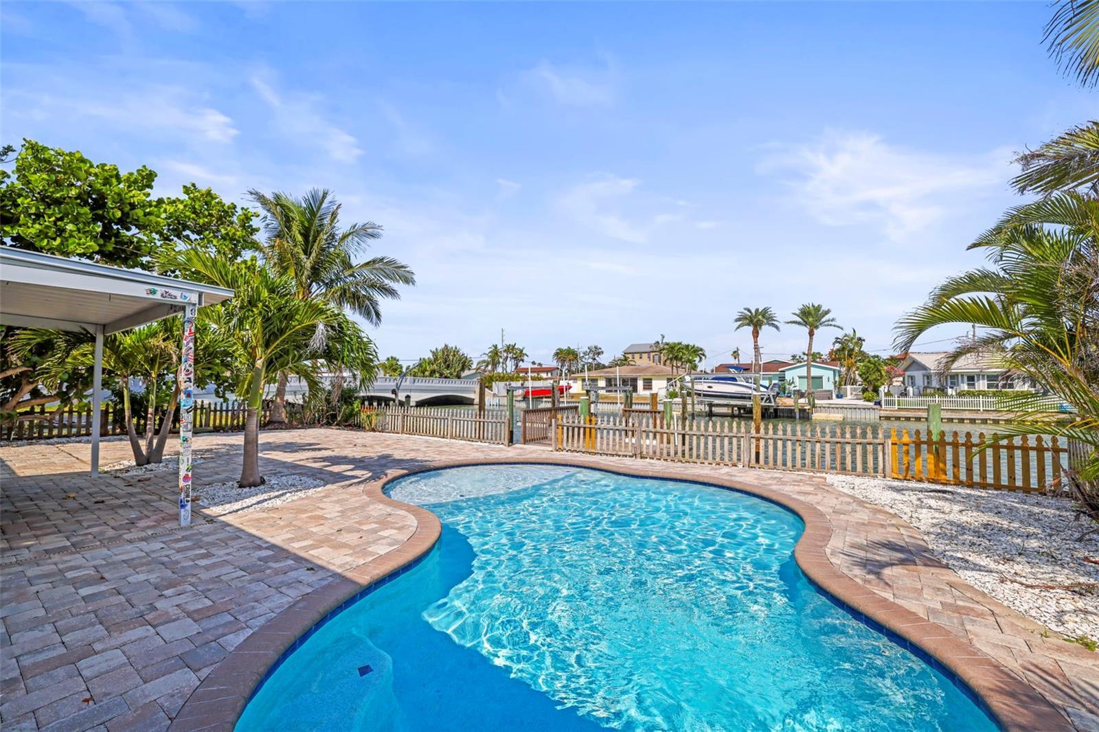 One or more photo(s) has been virtually staged. Short Sale. Live the Island Life in Style - Just Steps from the Sand! Ready for immediate occupancy, this beautifully remodeled waterfront retreat is your gateway to the ultimate coastal lifestyle. Meticulously renovated from ceiling to baseboard, no detail has been overlooked in creating a home of unmatched quality and comfort. The property boasts new walls with added insulation, new ceilings throughout, including ship lap detailing in the main living area, and an additional coating over the new roof, all designed to enhance the home's energy efficiency and long-term value. Perfectly positioned just a 5-minute walk to the beach, a 15-minute stroll to the vibrant shops and restaurants of John's Pass, and only a 10-minute boat ride to the open Gulf, this home also offers a 5-minute cruise to some of the area's most popular sandbars - perfect for weekend adventures. Inside, you'll discover a spacious, light-filled open-concept layout with three generous bedrooms and two fully updated bathrooms. The coastal-inspired design showcases wood-look tile flooring, a cozy fireplace for cooler nights, and a chef’s kitchen featuring sleek quartz countertops, abundant cabinetry, and a layout that keeps you connected while entertaining. Seller will give an allowance for an appliance package with an acceptable offer. Recent updates include a new roof in 2023, adding peace of mind and long-term value. Step outside to your own private oasis: a large pavered patio, covered outdoor bar, and a sparkling waterfront pool ideal for sun-soaked days or evening gatherings. For boating enthusiasts, the home features a deep water dock with a 12,000 lb boat lift, providing fast access to the Intracoastal Waterway, the Gulf of Mexico, and beyond. The fully fenced yard adds an extra layer of privacy and security - ideal for both pets and people. Whether you’re searching for a full-time waterfront residence or a dreamy vacation escape, this island-style home checks all the boxes. Schedule your private showing today—and start living the coastal dream!