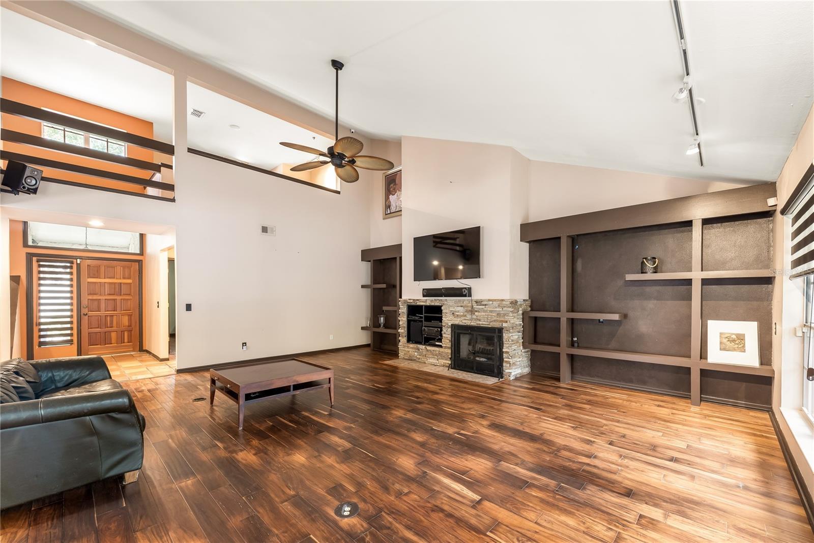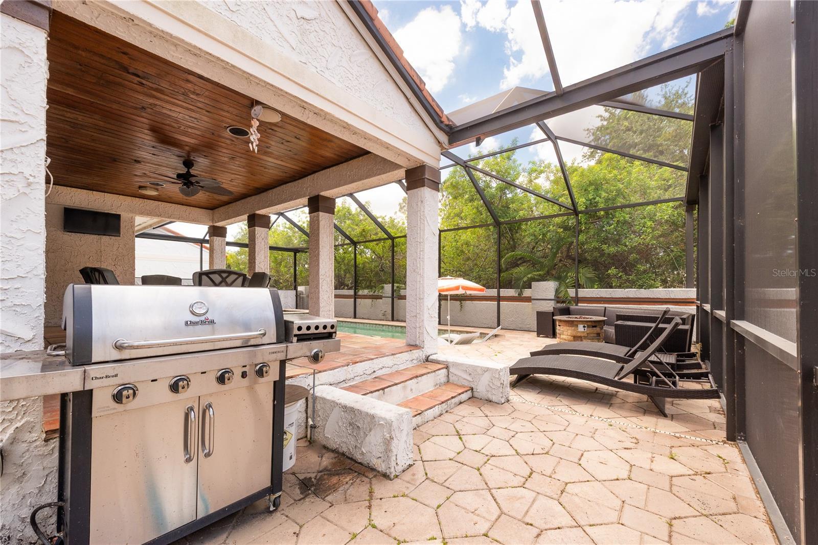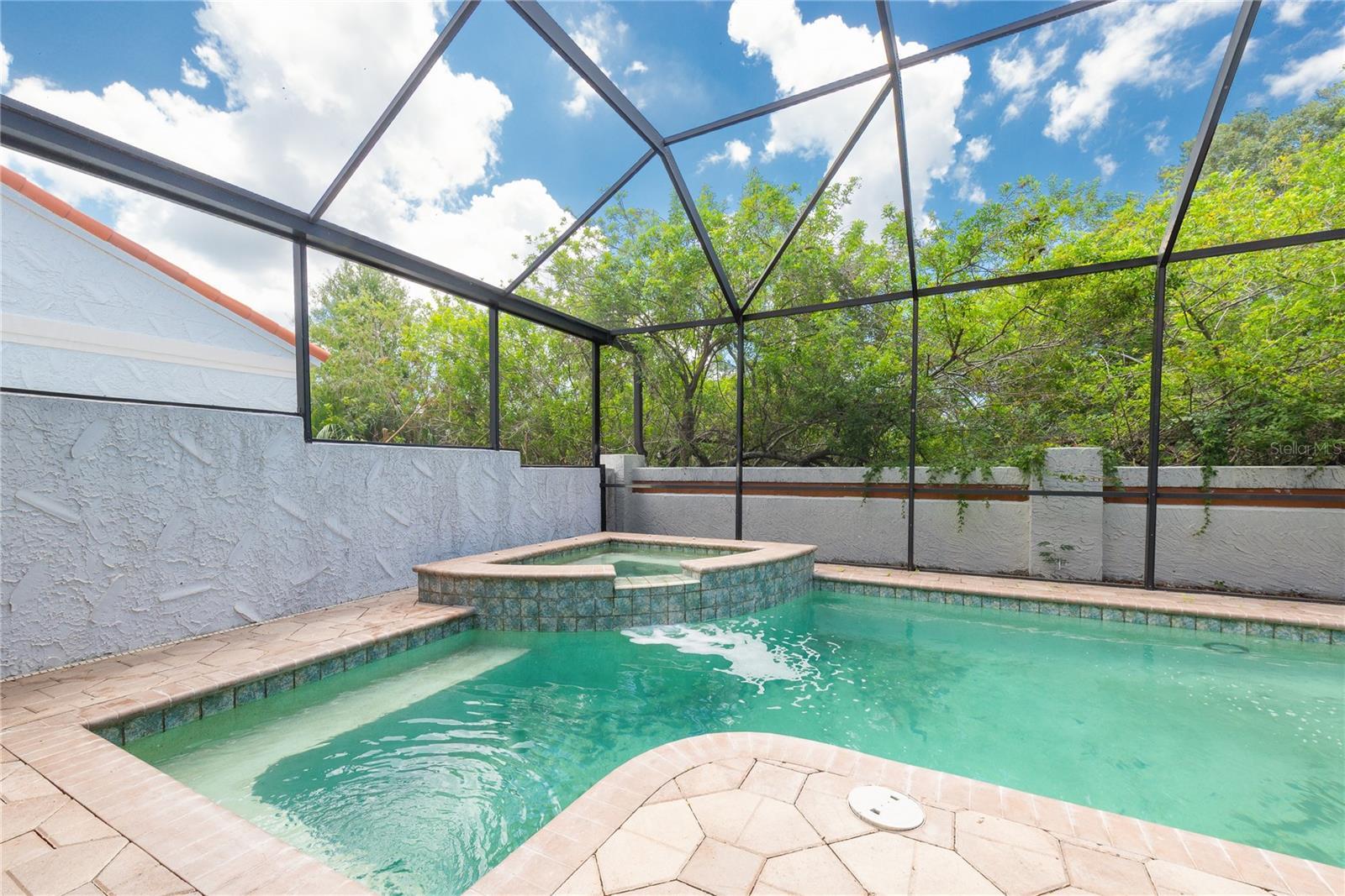 THIS MEDITERRANEAN POOL HOME HAS IT ALL – LOCATION, LUXURY & LIFESTYLE! Nestled in the highly sought-after Vizcaya community of Feather Sound, this beautiful 2-story Mediterranean-style salt water pool home offers elegance, space, and comfort with 3 bedrooms, 2 bathrooms, a den, 2 car garage and 2,383 sq. ft. of living space (3,236 sq. ft. total), this home sits on a 7,018 sq. ft. lot on a quiet cul-de-sac with no rear neighbors. Designed by Arthur Rutenberg who was ahead of this time, this home feels modern, from the first moment you step inside. Be wowed by 20-foot ceilings, large windows allowing lots of light, durable ceramic plank tile floors in the living area and custom shades on all windows. The Mexican Saltillo tile adds warmth and character to a spacious kitchen, that was remodeled with level 5 granite countertops, stainless steel appliances and travertine backsplash. Enjoy a large center island with bar seating and extra storage—perfect for entertaining! The open-concept living and dining areas offer seamless access to the covered lanai and backyard oasis with luxury outdoor furniture that convey. Enjoy family meals with pool views, or host fun gatherings with the fully-equipped outdoor kitchen with propane grill and of course cozy evening with wood-burning fireplace. The screened-in pool area includes a large salt water pool, jacuzzi, waterfall, and sun shelf, ideal for lodging or safe play for your family. Downstairs you'll find a guest bedroom and full bath, while upstairs, the primary suite boasts 9-foot ceilings, double doors, hardwood floors, a spa-like bathroom with river stone vessel sinks, granite countertops, a jacuzzi tub with travertine walls, walk-in shower, and a massive walk-in closet. A second upstairs bedroom currently serves as a home theater, complete with a projector, screen, and surround sound—all equipment conveys. The spacious den could easily be converted into a 4th bedroom or used as a home office. Additional highlights includes red clay tile roof 2016, both A/C unit are 2016 but well maintained and serviced, brand new pool pump and plumbing (2025), private fenced yard, updated sprinkler system. The Association fees are $220/month. The location is just perfect - minutes from I-275, Tampa International Airport, short drive to Downtown St. Pete, and the Beaches, in walking distance to Feather Sound Country Club, offering golf, tennis, swimming, and year-round events in one of the Bay Area’s most beautiful and walkable communities. This house is elevated. This is more than a home – it’s a lifestyle and your fortress. Seller is ready to sell.