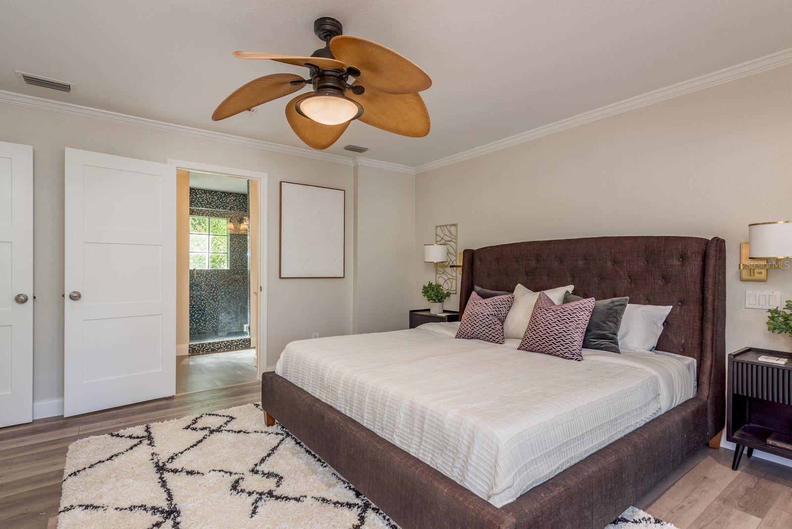 - Ceiling Fans(s), Crown Molding, Kitchen/Family Room Combo, Open Floorplan, Solid Wood Cabinets, Stone Counters, Walk-In Closet(s)