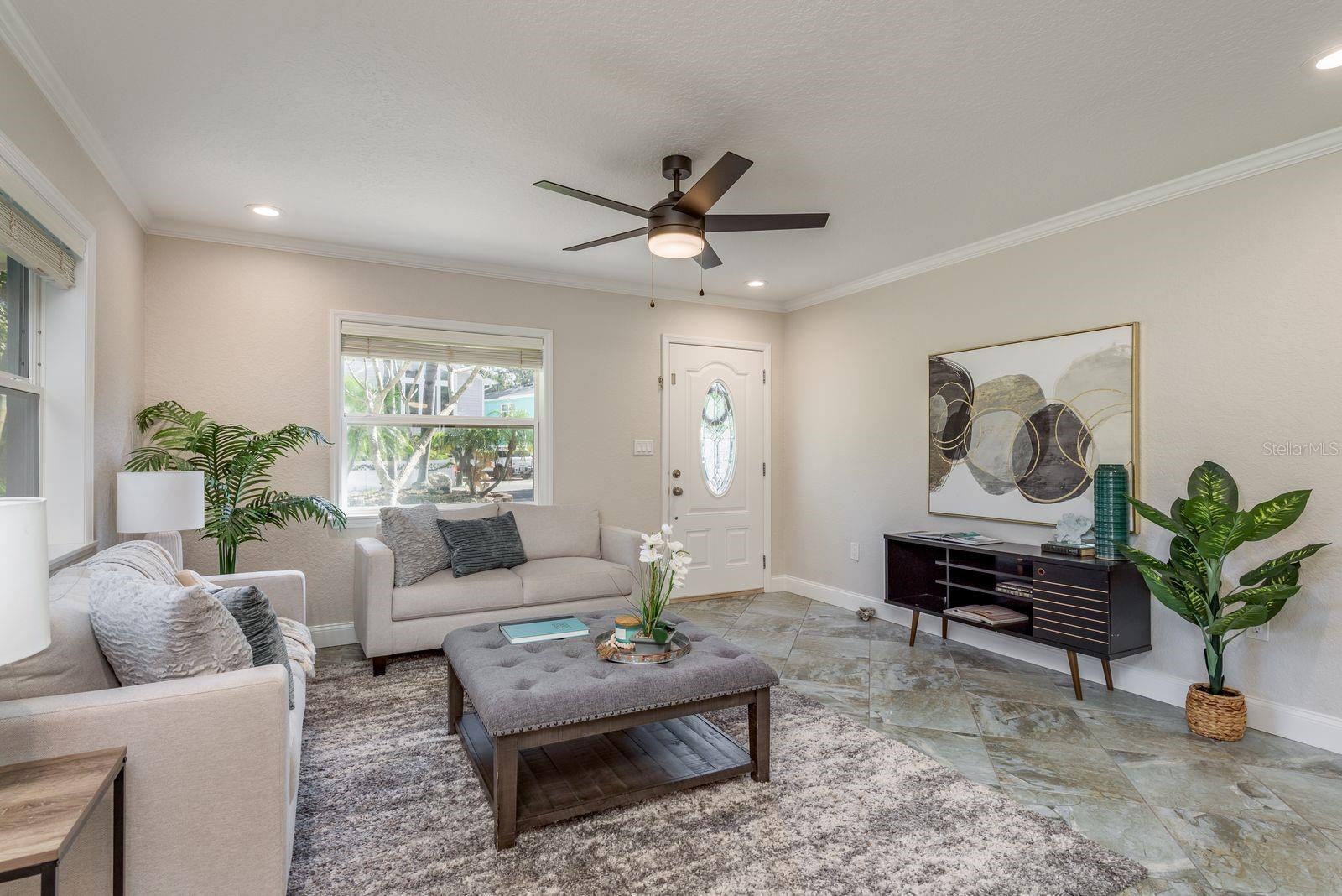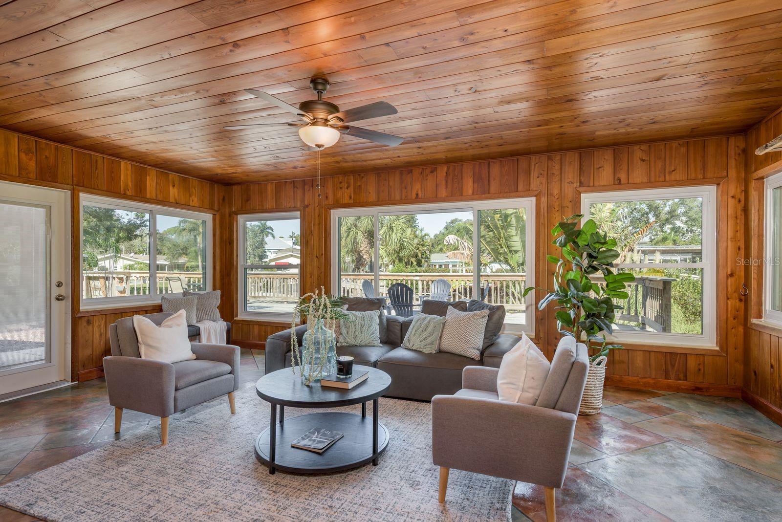 Serious price reduction! Motivated seller! Experience peak Florida living in this tropical, canal-front waterfront home with direct Gulf access (recently dredged canal!!) and no bridge restrictions, located in the highly desirable, golf cart–friendly community of Ozona. This solar-powered 3-bedroom, 3-bath home blends modern upgrades with classic Old Florida charm. Step through elegant double leaded glass entry doors into an open-concept layout featuring high ceilings, crown molding, upgraded lighting, solid wood interior doors, and tile flooring throughout. The spacious living area flows seamlessly into a climate-controlled Florida room overlooking the tranquil water. The updated kitchen is a chef’s delight with custom cabinetry, granite countertops, and brand-new 2025 stainless steel appliances. A separate dining area with recessed lighting and a skylight fills the space with natural light. Two generous guest bedrooms and two full baths (one en suite) showcase beautifully restored vintage tile, with one guest bedroom offering water views and French door access. Privately situated at the rear of the home, the luxurious primary suite features French doors to a screened lanai with canal views, a renovated en-suite bath with dual vanities, an oversized tiled walk-in shower, private commode, and a custom walk-in closet with built-ins and extensive shoe storage. The oversized lot is a true tropical oasis with lush landscaping, privacy bamboo, lemon, lime, orange, avocado, and banana trees, plus fresh sod (2025). Enjoy entertaining on the expansive waterfront deck, relax by the canal, or watch dolphins and manatees from your private dock. Additional features include an electrified storage shed, kayak storage, and a deck pre-wired for a hot tub. Major updates include: Roof (2024), Solar System with transferable warranty (2022), Heat Pump Water Heater (2023), Washer & Dryer (2025), Kitchen Appliances (2025), Upgraded 225-amp Electrical Panel, Newer Windows & Doors, Exterior Paint, and New Front Sod (2025). Ozona is a vibrant waterfront community offering restaurants, breweries, marinas, festivals, and boutique shopping—all just minutes from award-winning beaches, the Pinellas Trail, top-rated schools, and international airports. No HOA or deed restrictions...the ultimate Florida waterfront lifestyle awaits!.