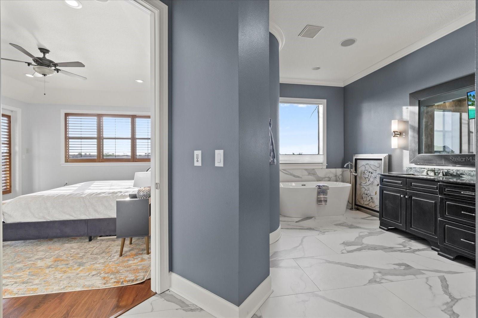 - Built-in Features, Ceiling Fans(s), High Ceilings, Smart Home, Stone Counters, Walk-In Closet(s), Wet Bar, Window Treatments