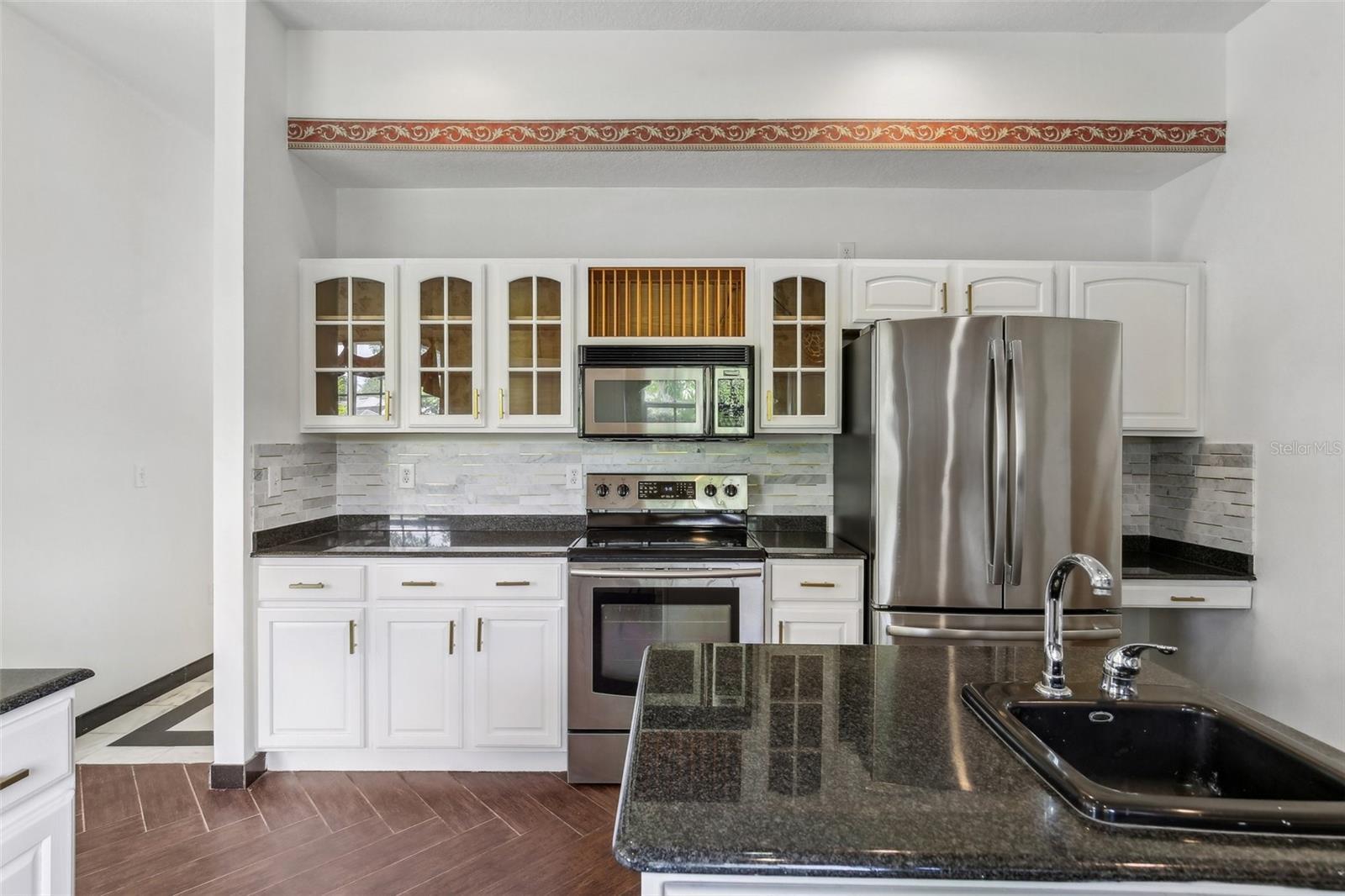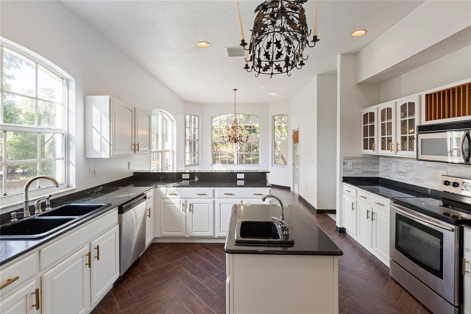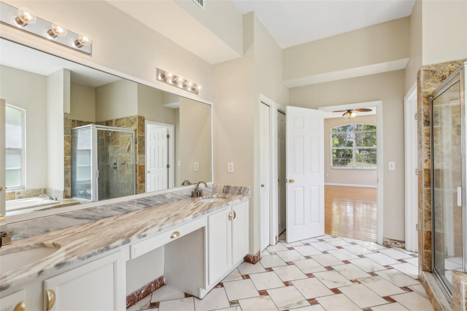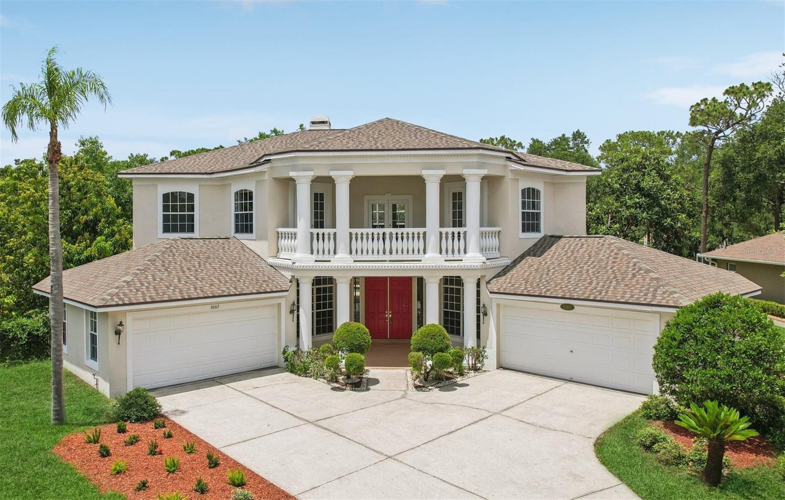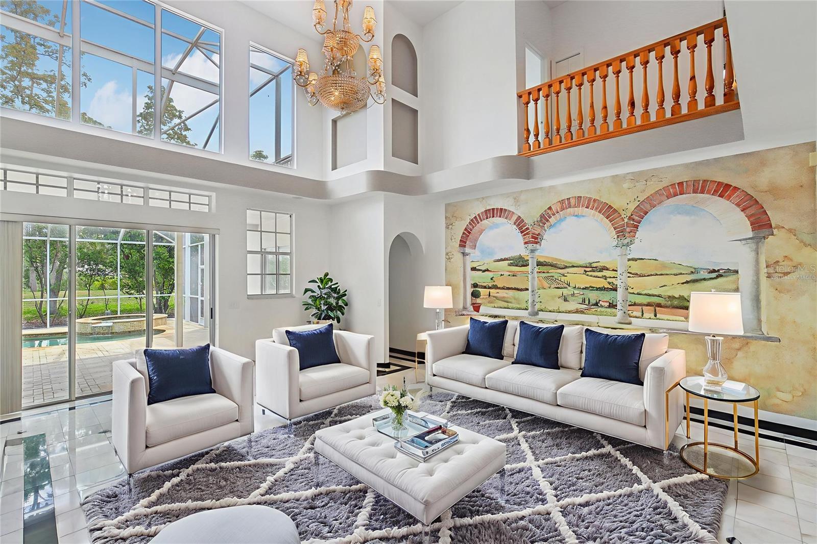 Step into timeless elegance in this stunning executive family home featuring five spacious bedrooms and four beautiful bathrooms and over 4500 sq ft of heated living space on .39 acre large corner lot with a gorgeous backyard! From the moment you enter, you’re greeted by a dramatic custom medallion entryway, soaring 22-foot ceilings, elegant columns, and handcrafted wood balusters framing a show stopping chandelier. This exceptional home was even featured in a Super Bowl commercial, a true testament to its grandeur. Designed with versatility and luxury in mind, this home is perfectly suited for large or multigenerational families. With multiple living areas, a large formal dining room, and an expansive breakfast nook that also serves as an additional dining space, the layout provides ample room for gatherings, entertaining, or quiet moments of retreat. Enjoy the rare convenience of three master suites—one located on the main floor for easy access, and two upstairs, offering ideal accommodations for parents, guests, or extended family members seeking privacy. The home showcases refined finishes throughout, including real wood flooring, custom marble flooring with intricate granite inlays, a wood burning fireplace framed by a French Louis XV marble mantle, along with a James Moder Princess chandelier, adding a luxurious touch to the main living area. The chef-inspired kitchen has granite countertops, stainless steel appliances, dual sinks, a large center island, and upgraded herringbone wood tile flooring. A sun-drenched eat-in area with expansive windows provides a picturesque view of the covered pool patio. Entertain effortlessly with a triple sliding glass doorthat opens to a covered lanai and sparkling pool—perfect for weekend barbecues or tranquil evening swims. Each bathroom is thoughtfully designed with luxury finishes like granite, marble, and travertine. The oversized downstairs master suite is a private retreat, filled with natural light and designed for relaxation. It features a spa-inspired bathroom with a jetted soaking tub, a spacious step-in shower, dual vanities, and an expansive double-sided walk-in closet. Additional features include: · A rare 4-car garage · Two spacious second-story walk-out balconies (one overlooking the front yard, the other the pool) · Mature fruit-bearing trees: avocado, mango, guava, Japanese plum, and more · New roof (2021) · Multiple A/C systems for optimized comfort and energy efficiency Situated on one of the most desirable custom estate streets in the area, this home is zoned for A-rated schools and just minutes from shopping, dining, and major roadways—perfectly located between Tampa, Orlando, and Florida’s beautiful beaches. Walden Lake is a gated community with miles of lakeside walking trails, parks & playgrounds, sports fields & dog park. The elementary school is also located inside the community and one of the best schools in the area. No CDD , low HOA for all that is offered in beautiful community. This residence offers the perfect blend of sophistication, comfort, and convenience—ideal for both everyday living and elevated entertaining.
