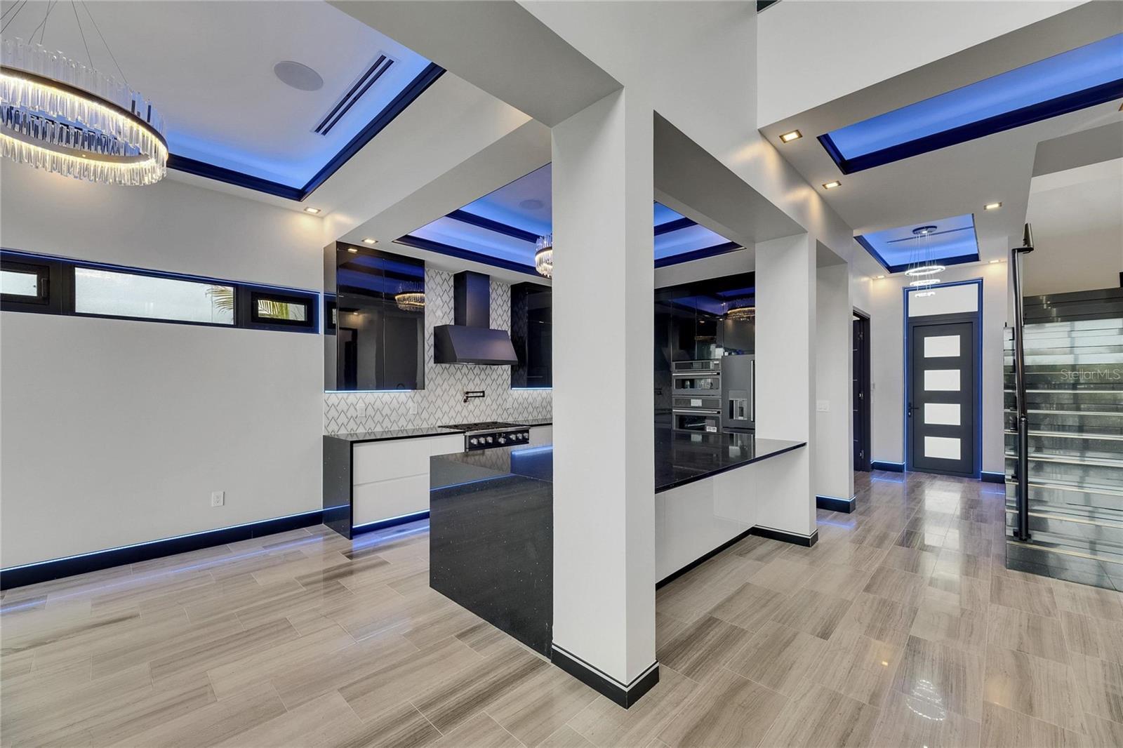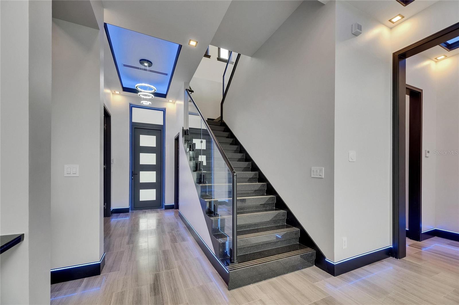 6528 Simone Shores Circle | The Halcyon Floorplan 5 Beds | 4 Baths | 2,654 Living Sq. Ft. | 12 ft Elevation Welcome to 6528 Simone Shores Circle, a newly built 2025 waterfront home by Bistro Builders, located in the elevated community of Simone Shores in Apollo Beach. The Halcyon floorplan offers 5 bedrooms, 4 bathrooms, and 2,654 square feet of living space, plus a private dock, new seawall, 10,000 lb boat lift, and heated saltwater pool with spa. Built for long-term durability and efficiency, this home features solid block construction on both floors, solar shingles, 12-foot elevation, stem wall foundation, cement floors between levels, and hurricane-rated impact windows. Additional upgrades include seamless fire-rated doors, spray foam insulation, insulated garage doors, and multi-layer epoxy garage flooring. Inside, you'll find 24-foot ceilings, smooth finish walls, triple tray ceilings with integrated lighting, and imported marble throughout the main living areas. The open great room includes an electric fireplace, surround sound, and triple sliders leading to the covered lanai with an outdoor kitchen and pool area. A fully integrated smart system manages the solar tiles, lighting, pool, security, and climate control via smartphone or mounted iPads. Security includes facial and fingerprint recognition, and programmable lighting is installed in the soffits, windows, and baseboards. The chef’s kitchen features quartz countertops, a waterfall island, gas stove with pot filler, wine cooler, walk-in pantry, and European-style cabinetry with custom pull-down shelves. The main-level primary suite has canal and pool views, private lanai access, a large walk-in closet with built-in organizers, and a bath with dual vanities, jetted tub, and a floor-to-ceiling tiled shower with customizable lighting and pressure. Upstairs, secondary bedrooms each have custom closets and access to an open-air balcony with water views. A full laundry room with sink and folding station and two additional bathrooms complete the upper level. A paver driveway and included lawncare through the low HOA make maintenance easy. Just minutes from shopping, dining, the Manatee Viewing Center, and major highways, this home combines quality construction, efficiency, and waterfront living in one of Apollo Beach’s most exciting new communities.