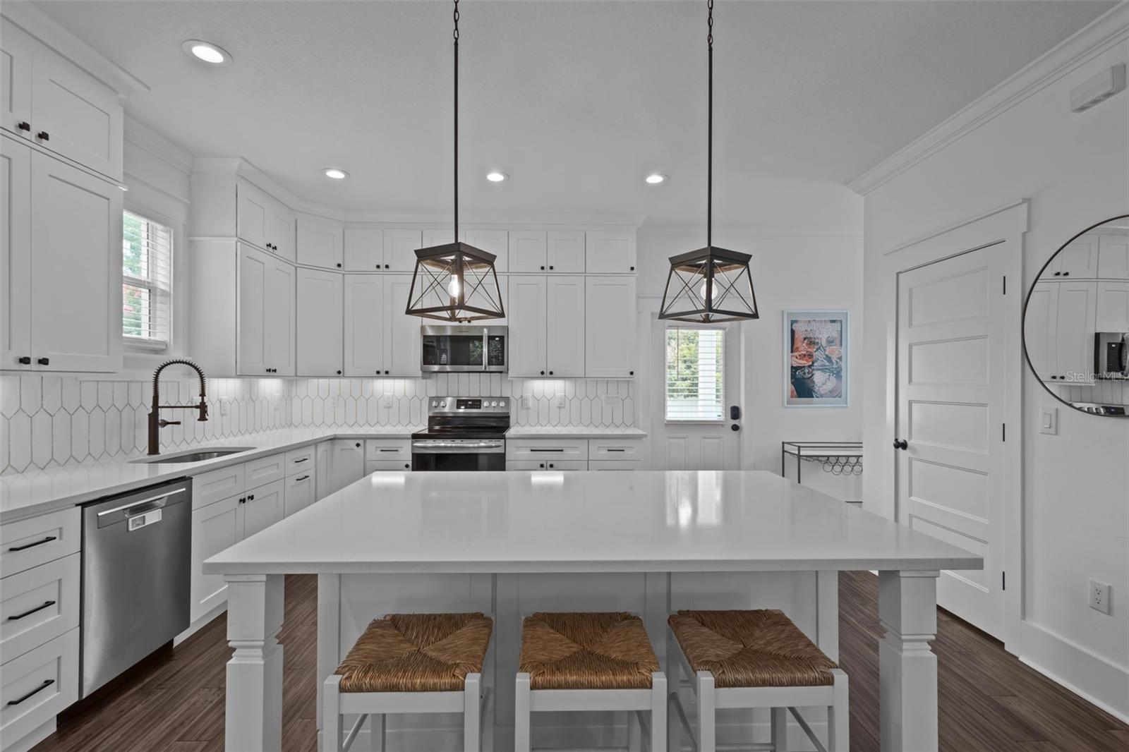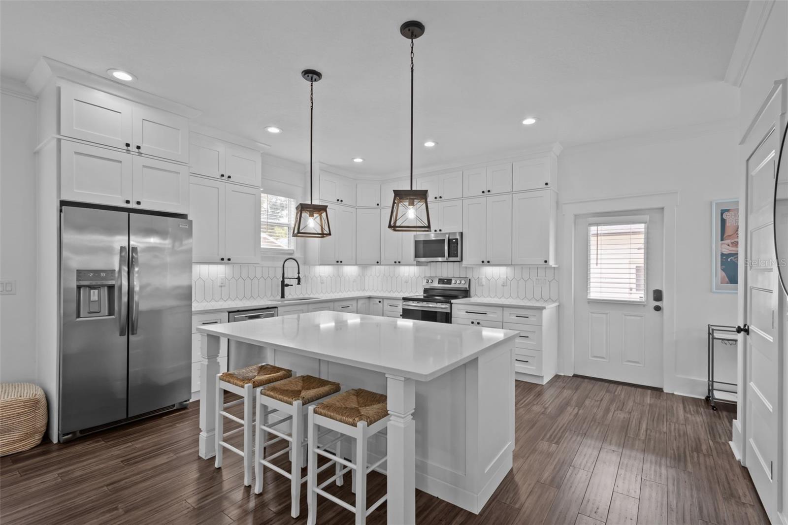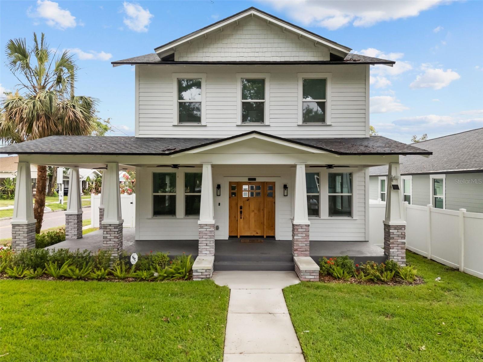 Welcome to 502 E Robles St, a stunning 3-bedroom, 2.5 bathroom home situated on a desirable corner lot in the heart of Historic Tampa Heights. Built in 2023 by Vikin Homes, a trusted builder known for their quality craftsmanship throughout Tampa Heights, this home seamlessly blends modern amenities with classic bungalow charm. The property’s curb appeal is undeniable, with a picturesque wrap-around front porch perfect for morning coffee, working from home, or evening relaxation. Step inside to find an open-concept first floor featuring wood flooring, oversized windows, and a bright, airy layout. At the center of it all is a show-stopping kitchen with an expansive island, solid wood cabinetry, tile backsplash, stainless steel appliances, pendant lighting, and bar seating—ideal for both everyday living and entertaining. Upstairs, the spacious primary suite offers a full en suite retreat with dual sinks, a large walk-in shower, and a private water closet. The two additional bedrooms share a well-appointed full bathroom, while a half bath on the main level adds convenience for guests. Modern upgrades include energy-efficient windows, upgraded plumbing and electrical systems, and a detached 2-car garage. The fully fenced backyard adds privacy and versatility, while the corner lot provides additional outdoor space and charm. The location is unbeatable—walk to the Tampa Riverwalk, Armature Works, and local waterfront parks and restaurants. Quick access to major highways makes it easy to explore Hyde Park, Downtown Tampa, or the beaches of St. Pete. Don't miss the opportunity to own a recently built home in one of Tampa’s most vibrant and historic neighborhoods. Schedule your private showing today! --